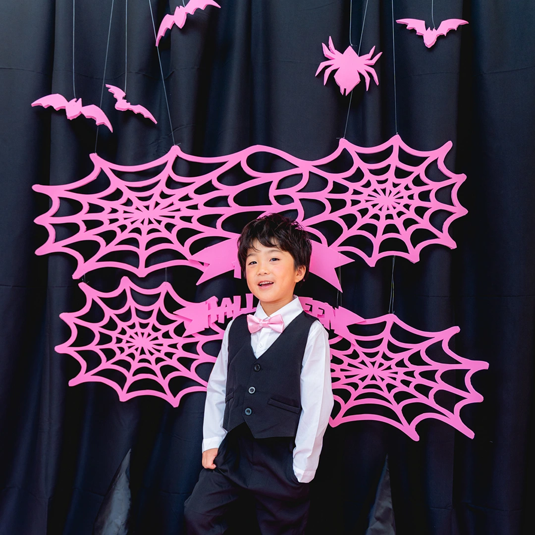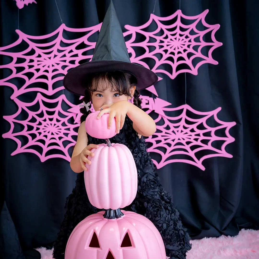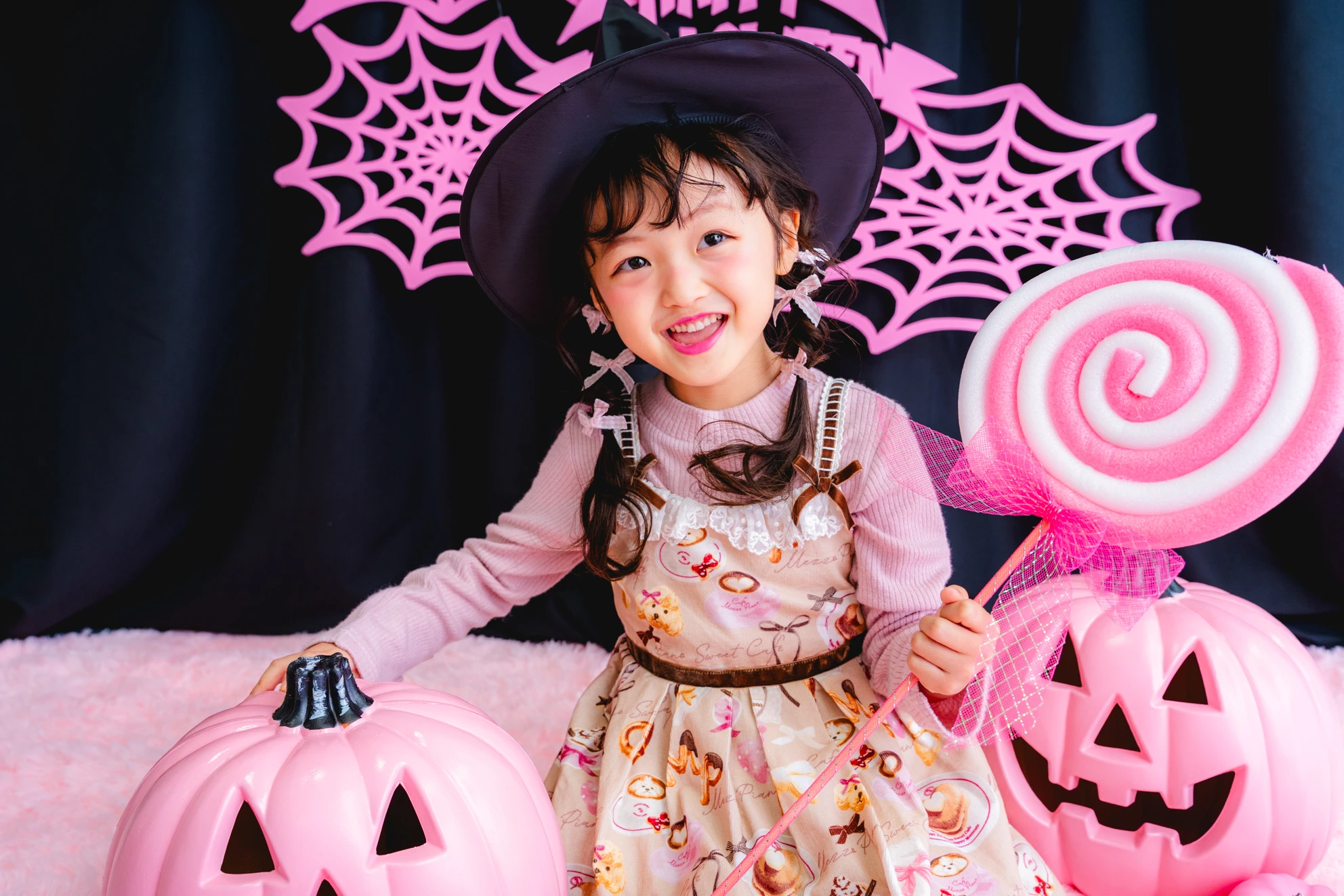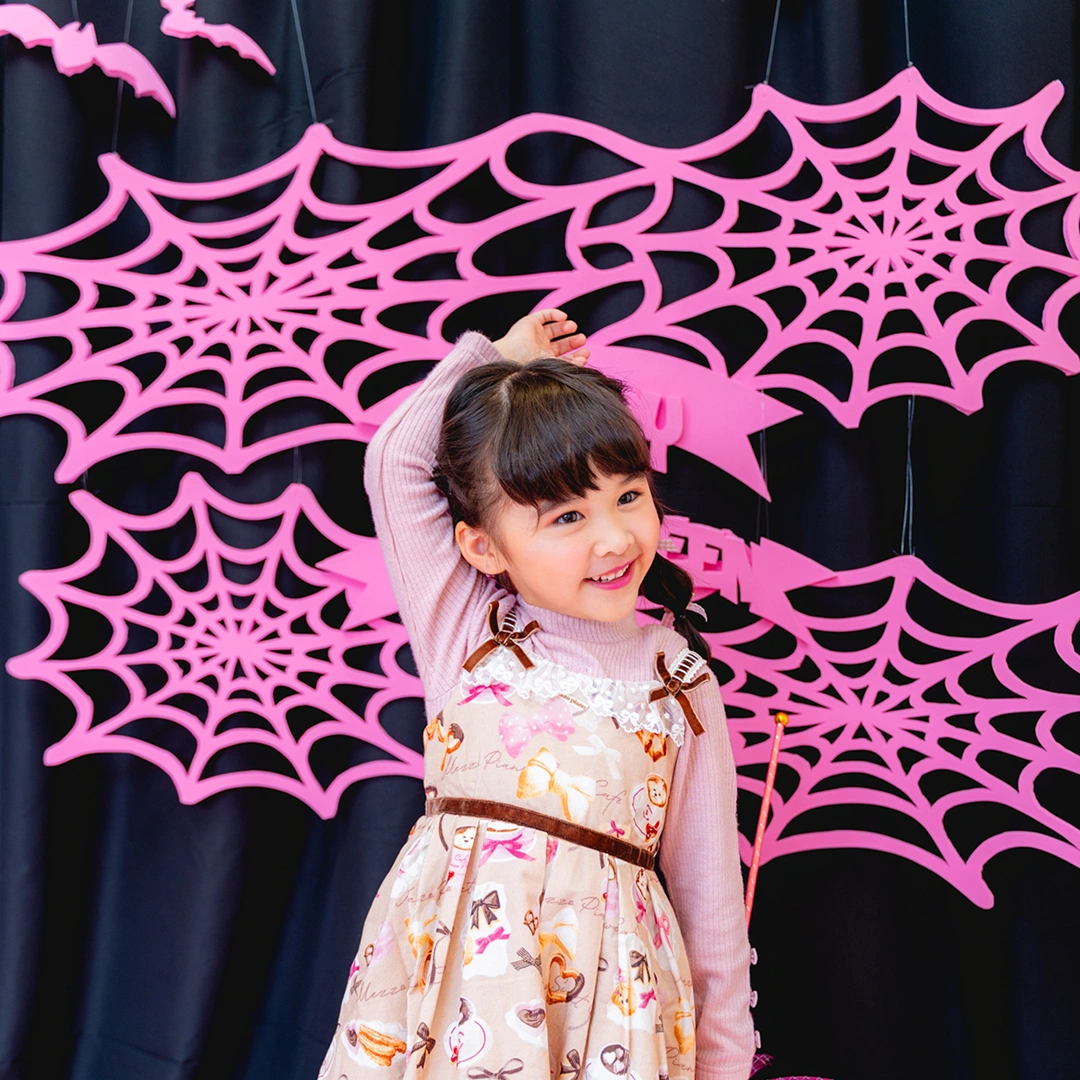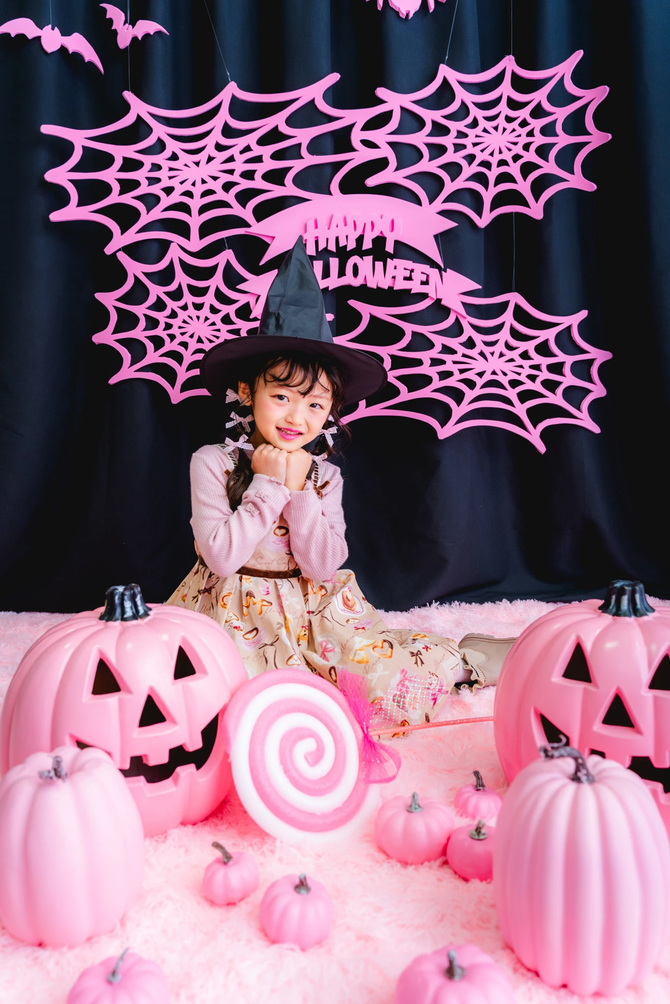 かぼちゃやこうもり、蜘蛛の巣まで、すべてピンクに彩られた空間は