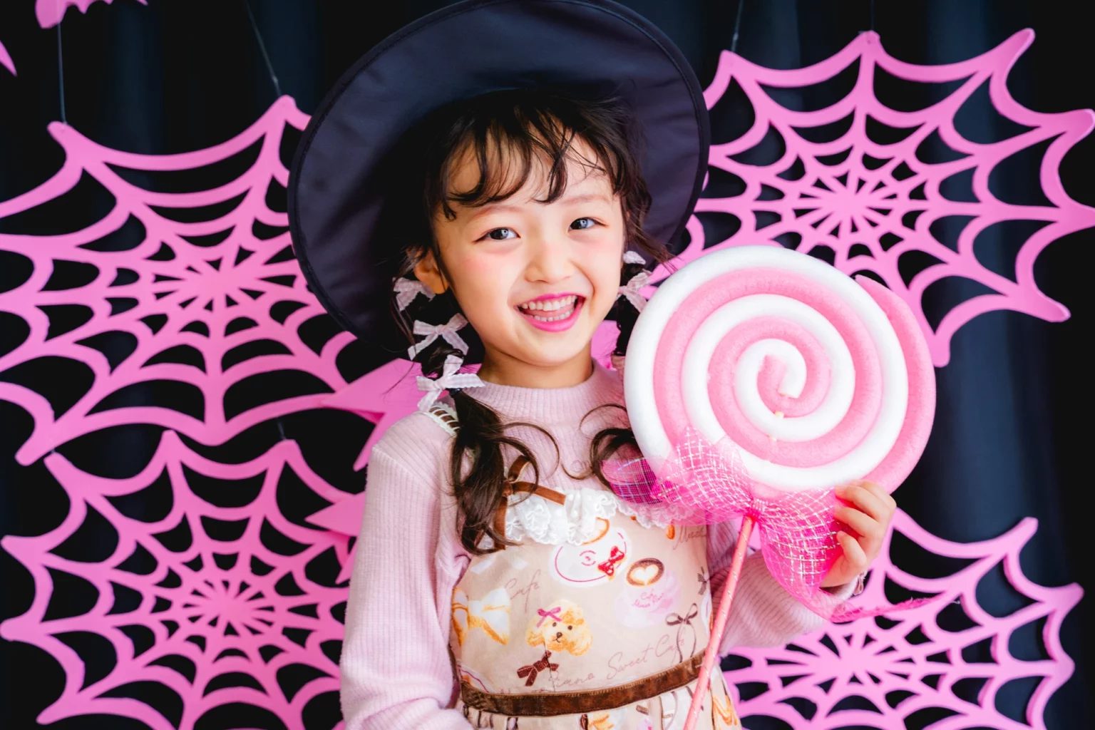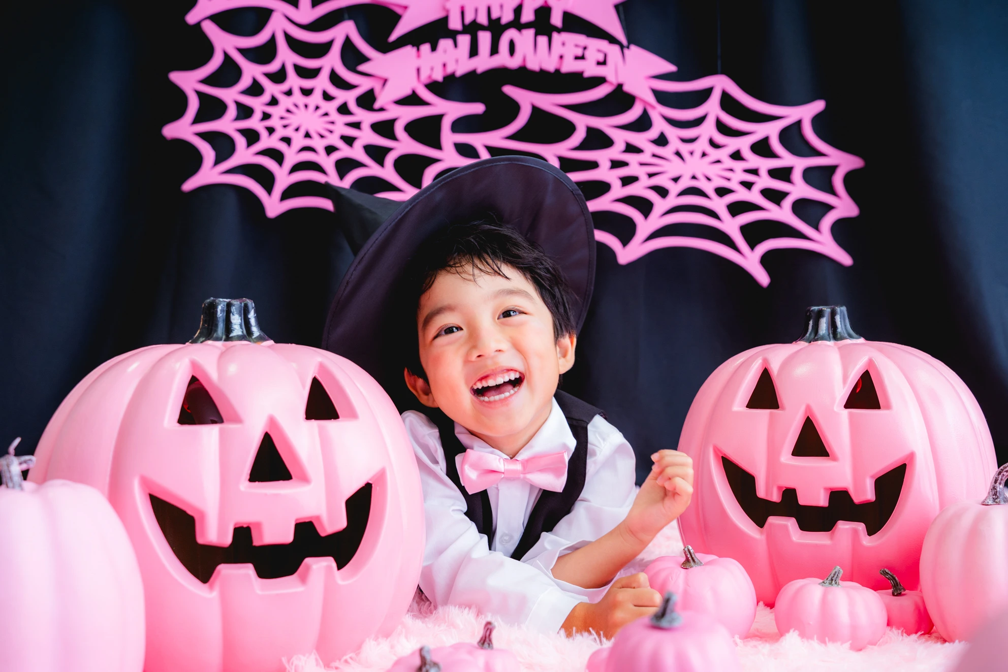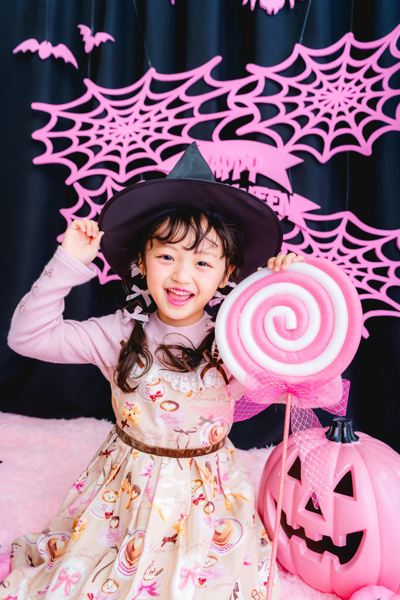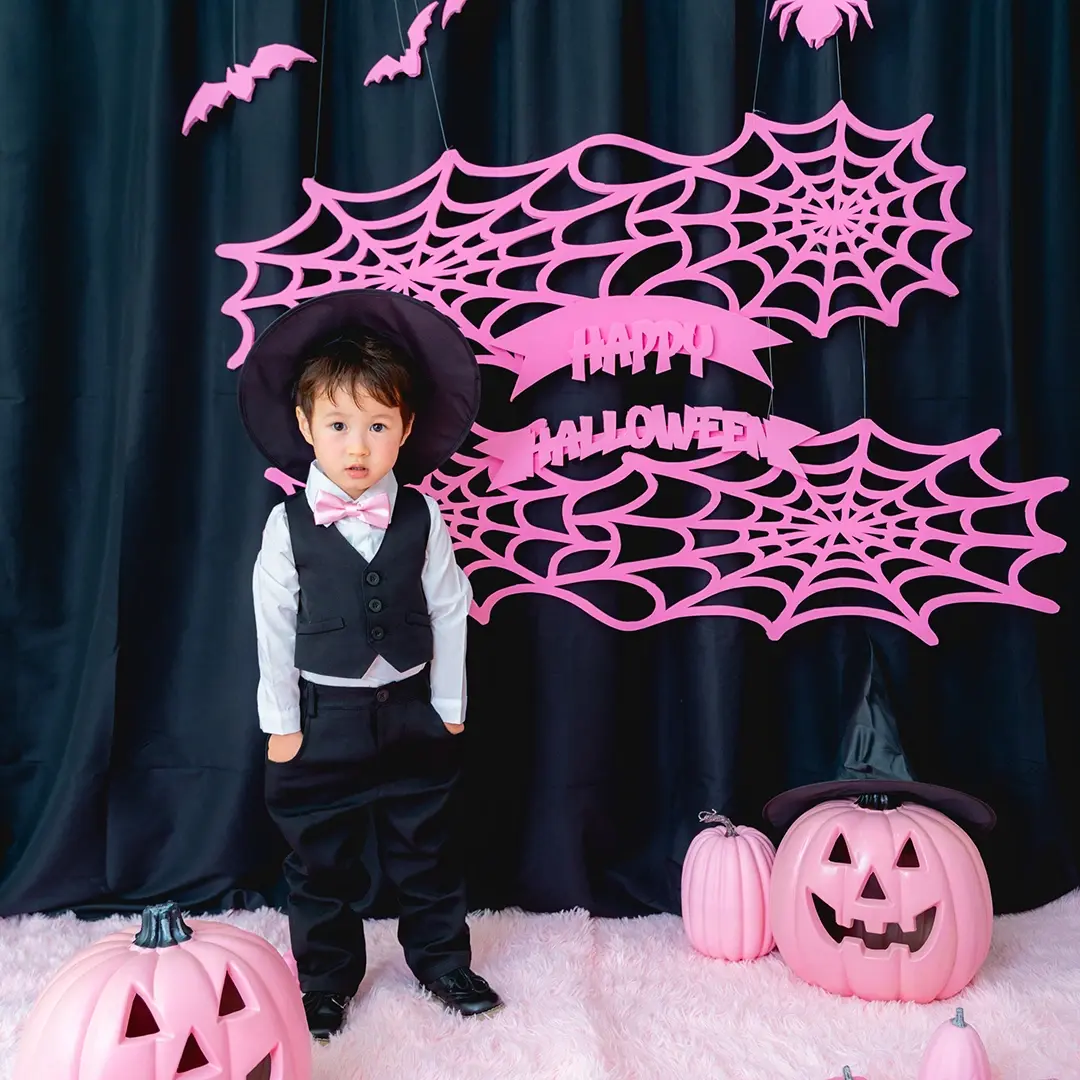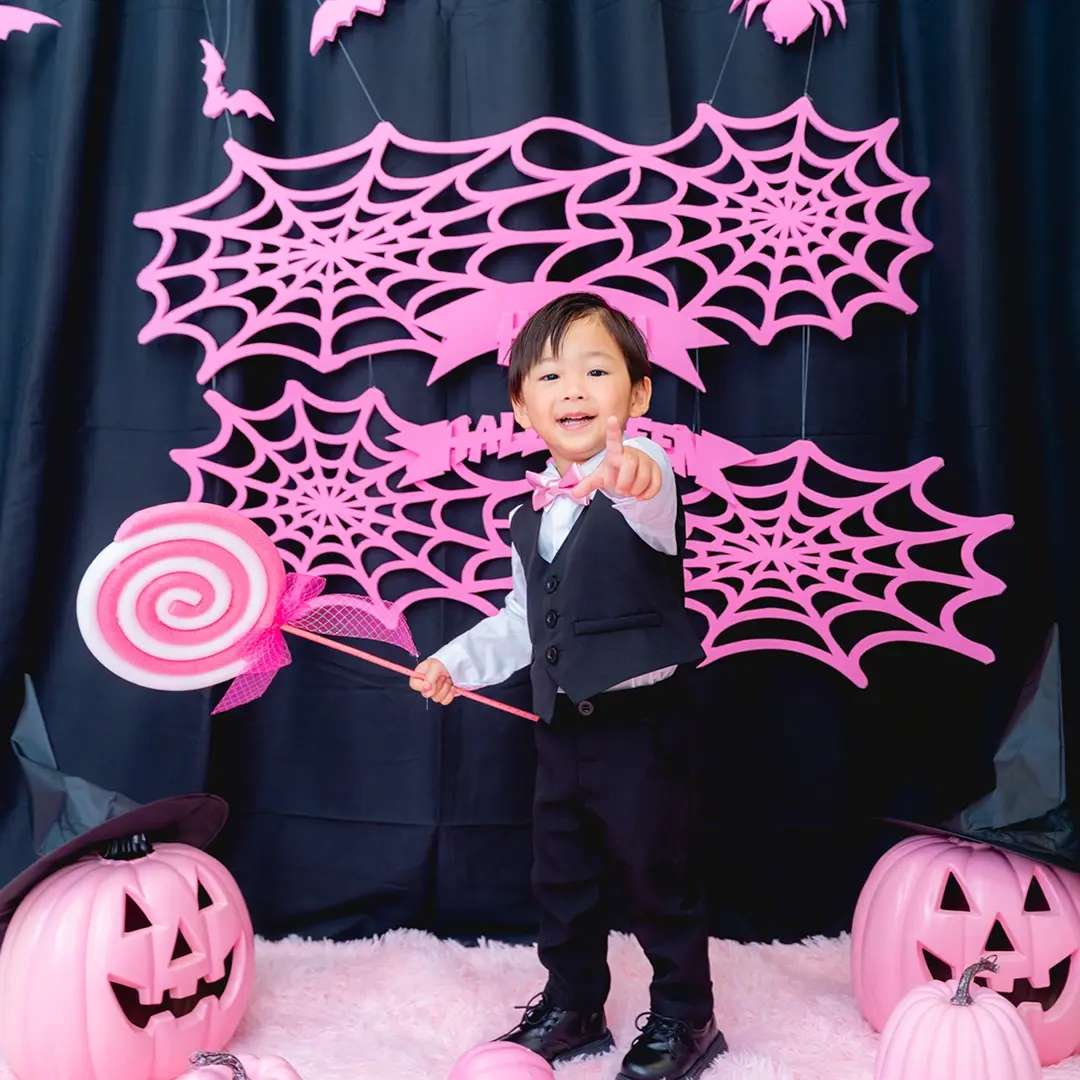 かぼちゃやこうもり、蜘蛛の巣まで、すべてピンクに彩られた空間は