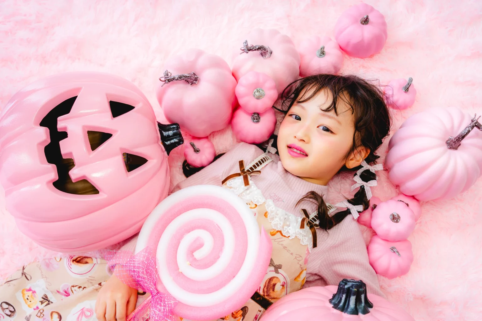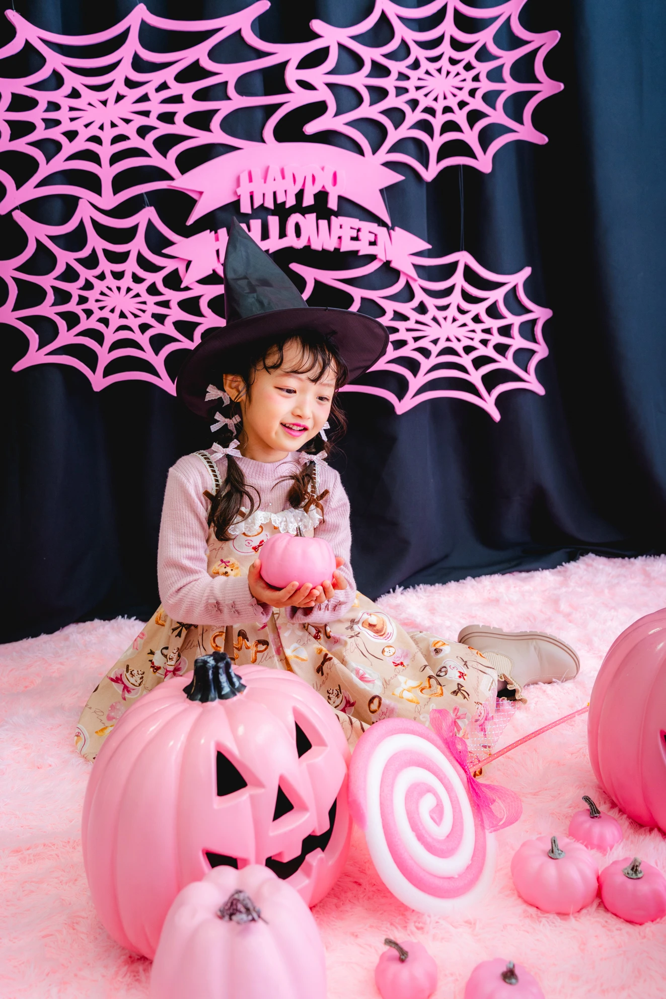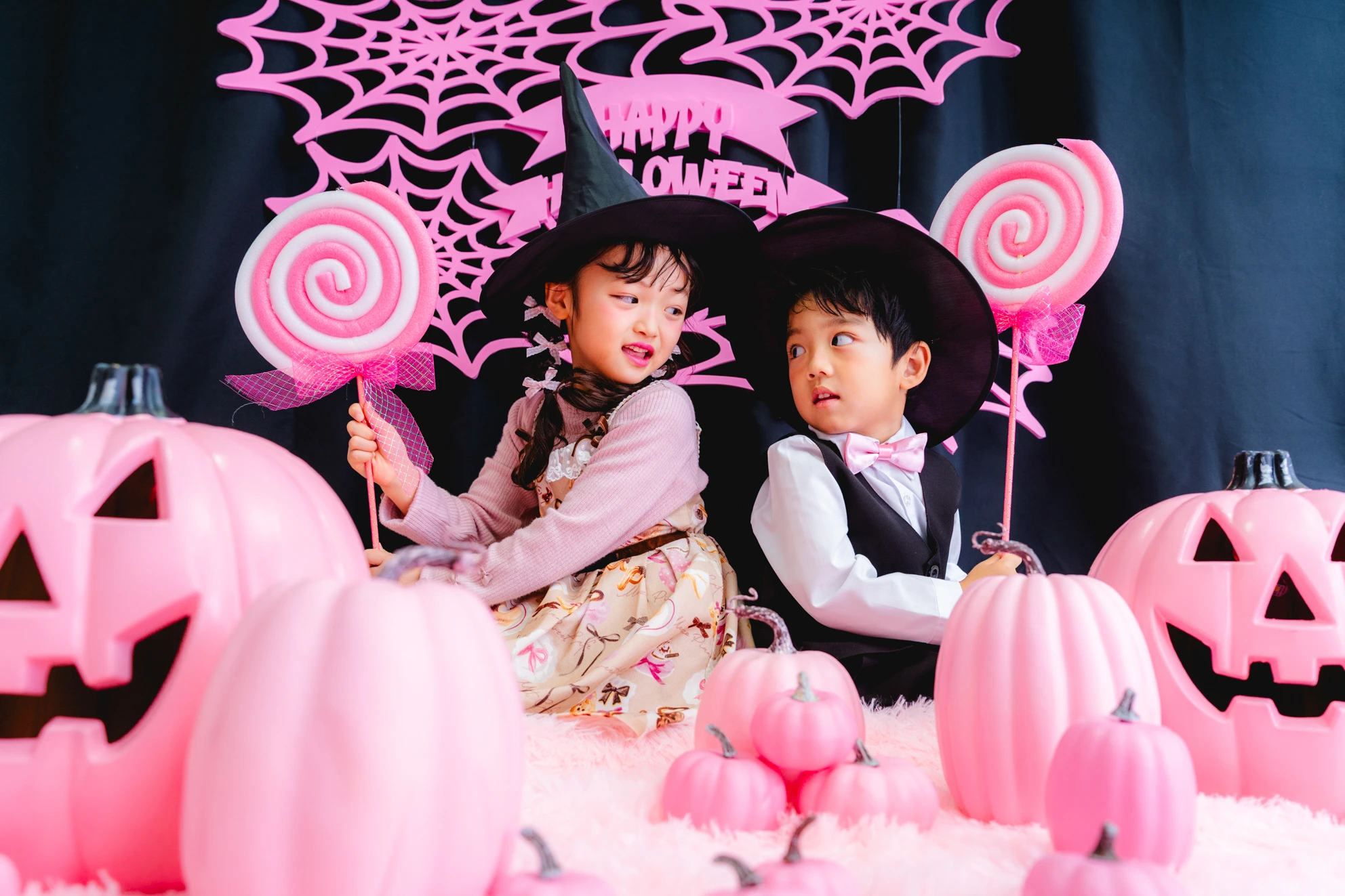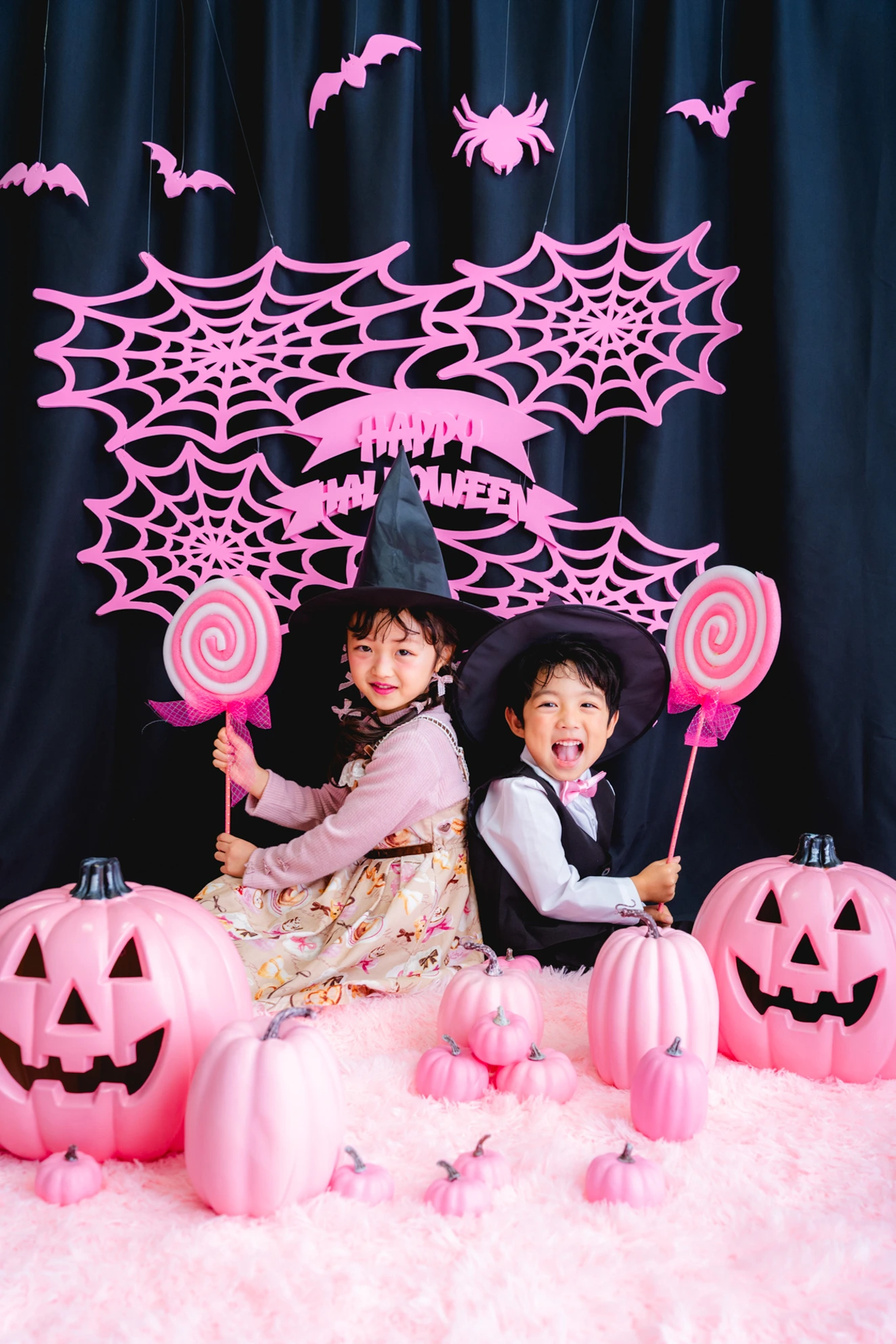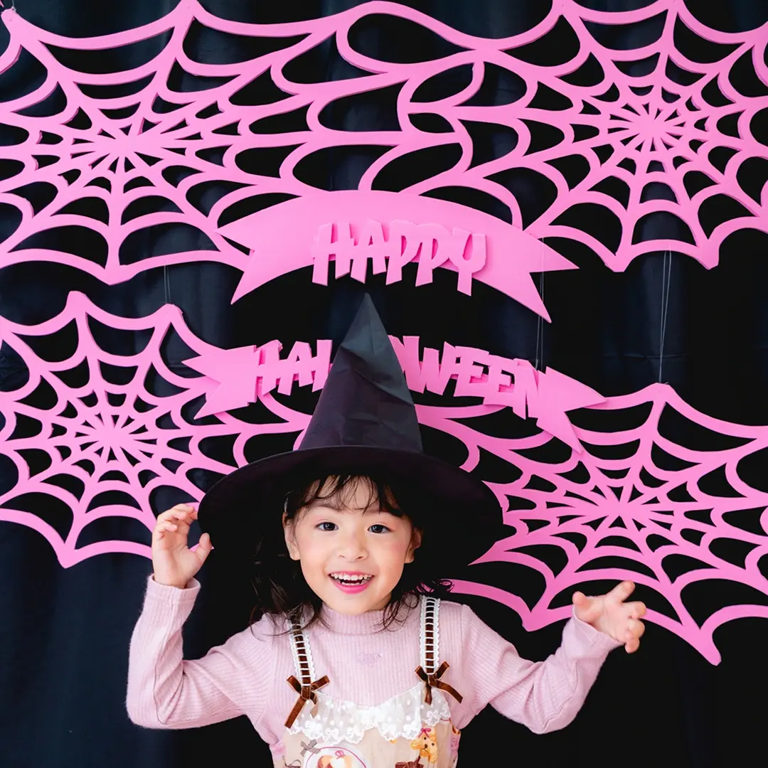 かぼちゃやこうもり、蜘蛛の巣まで、すべてピンクに彩られた空間は
