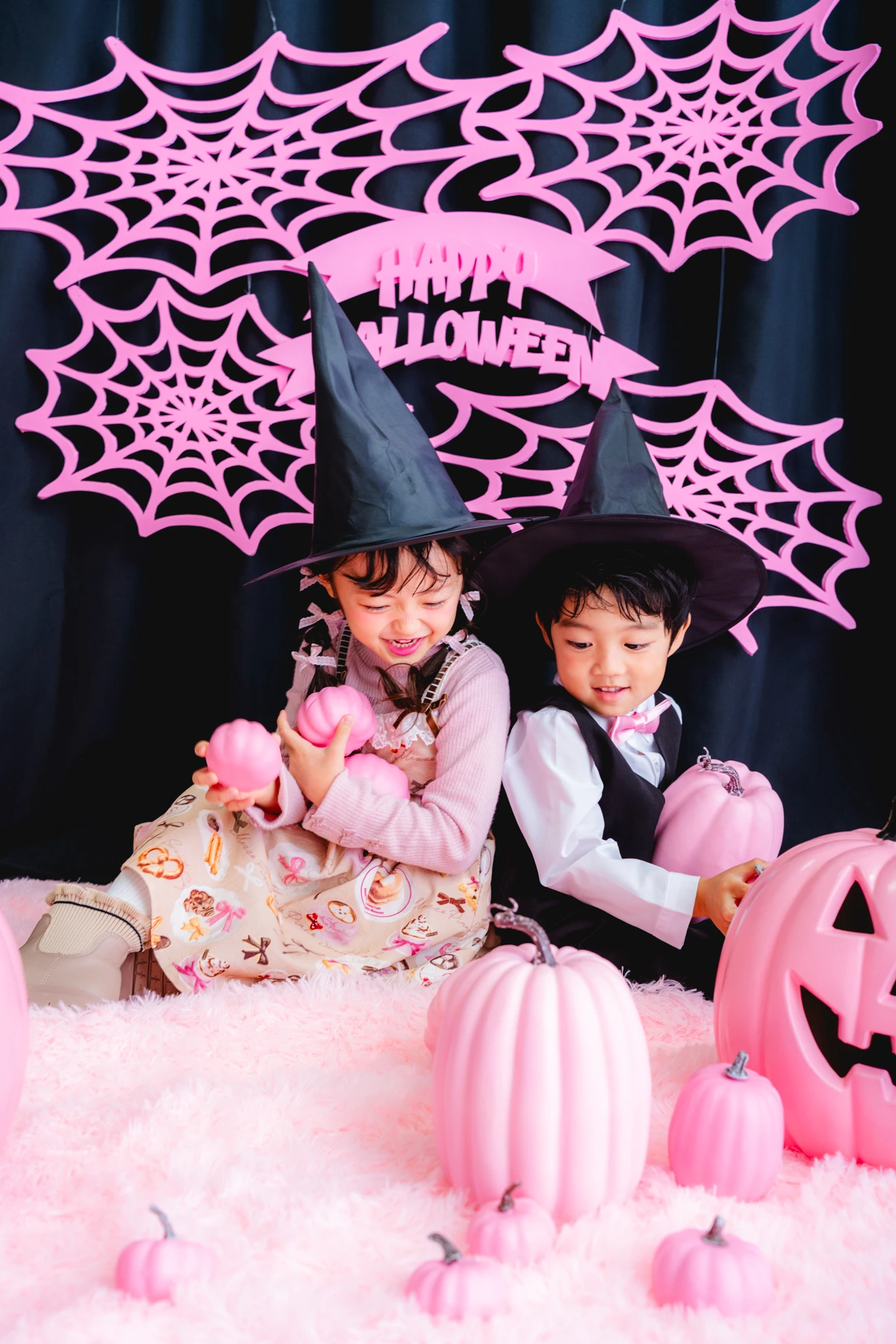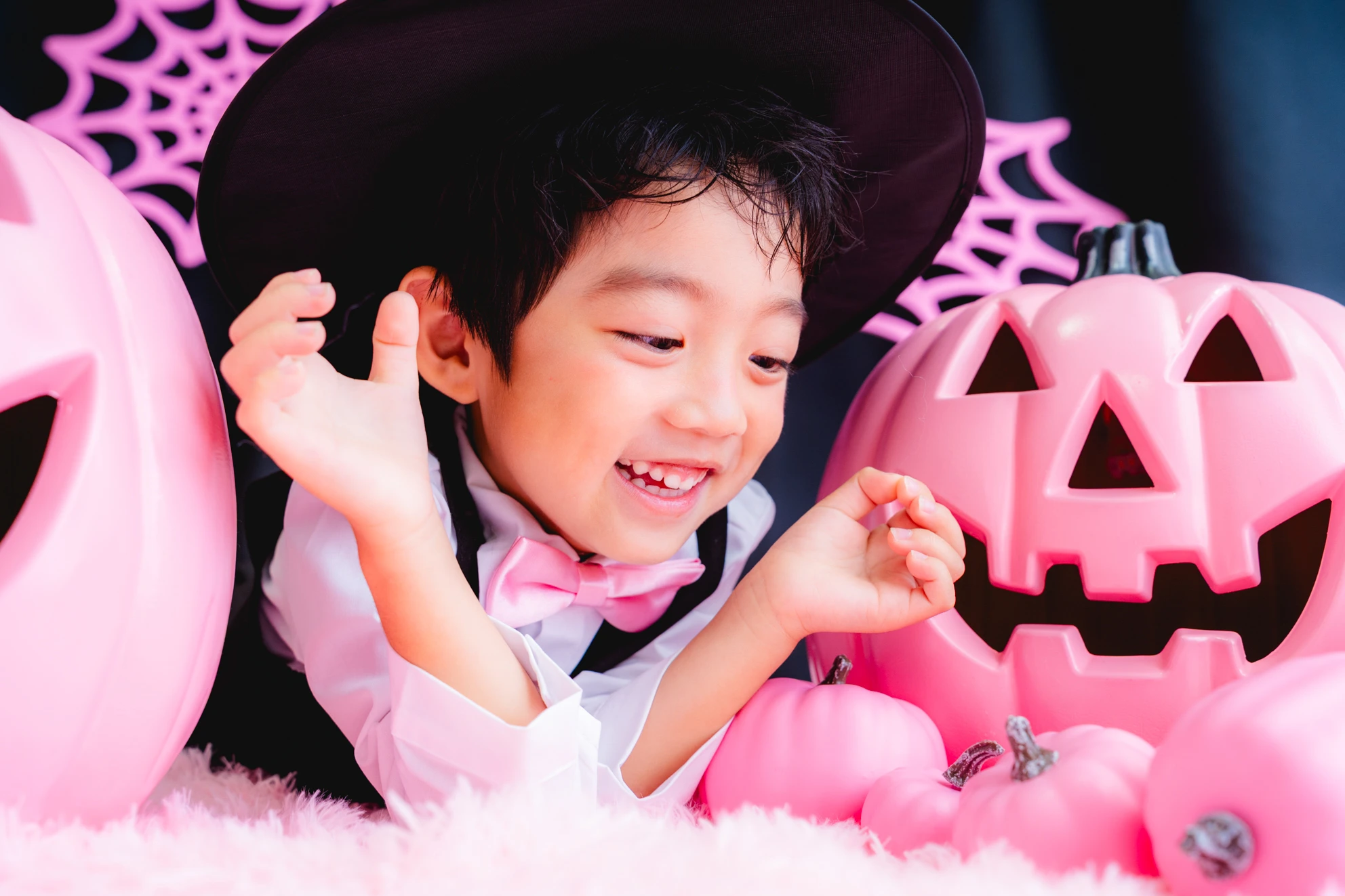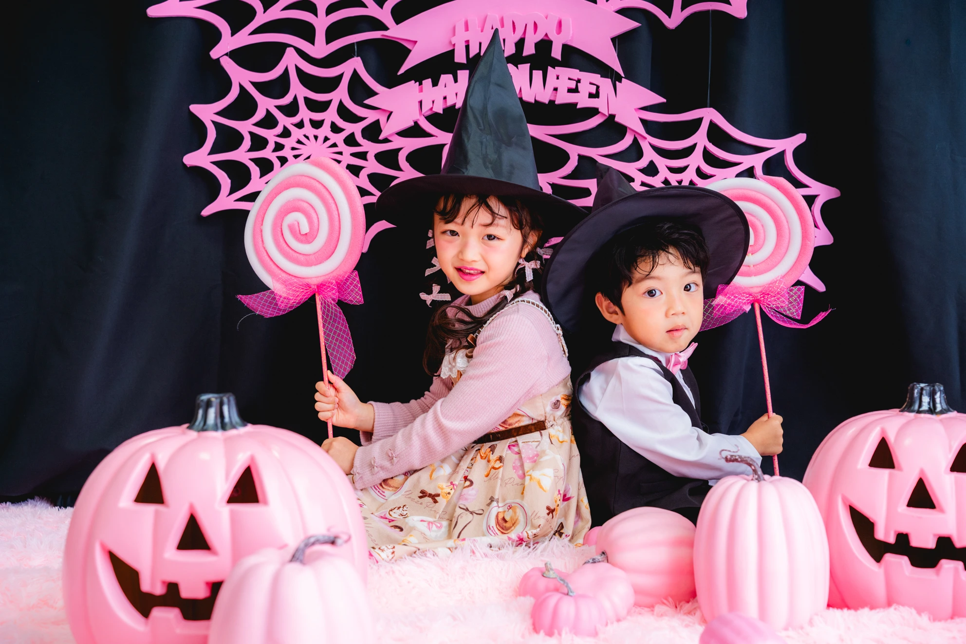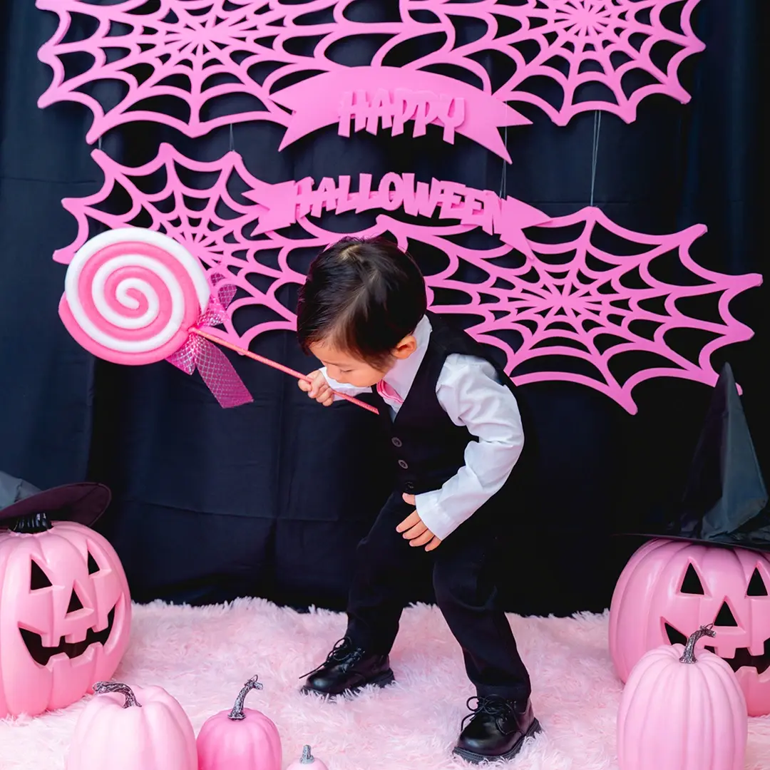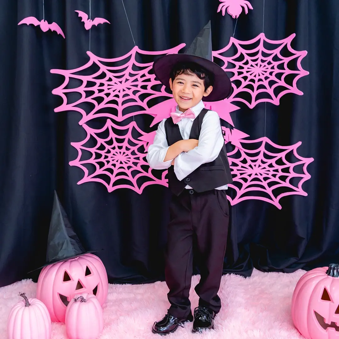 かぼちゃやこうもり、蜘蛛の巣まで、すべてピンクに彩られた空間は