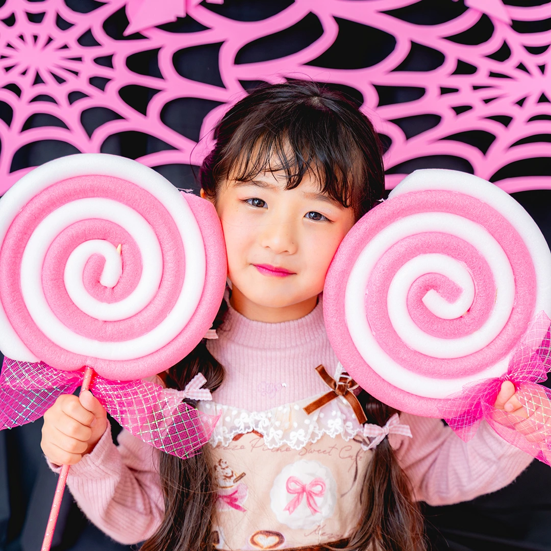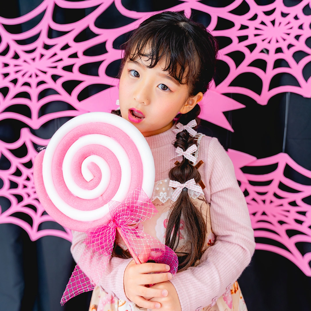 さらに、お顔が隠れちゃうほど大きなキャンディー小物も登場します!