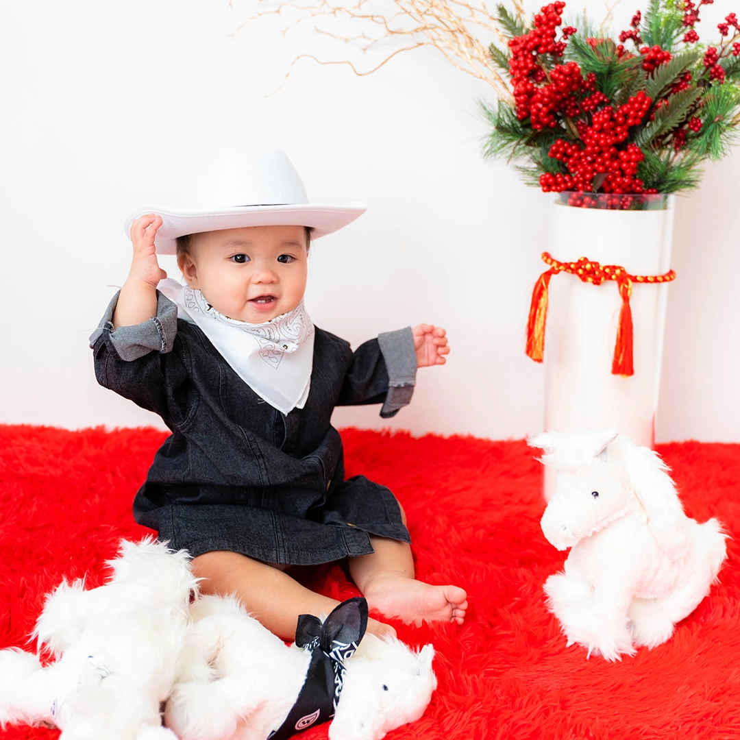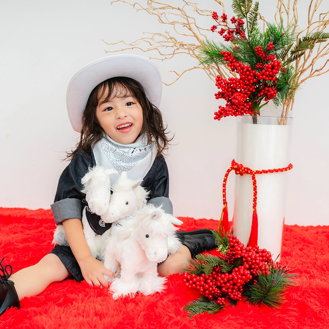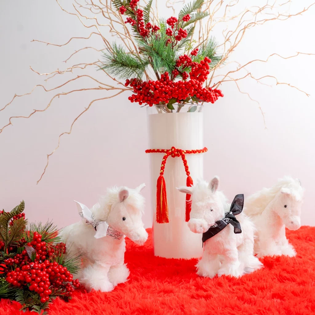幸運の象徴・白い馬とともに、“うま”くいく一年の願いを込めて――。