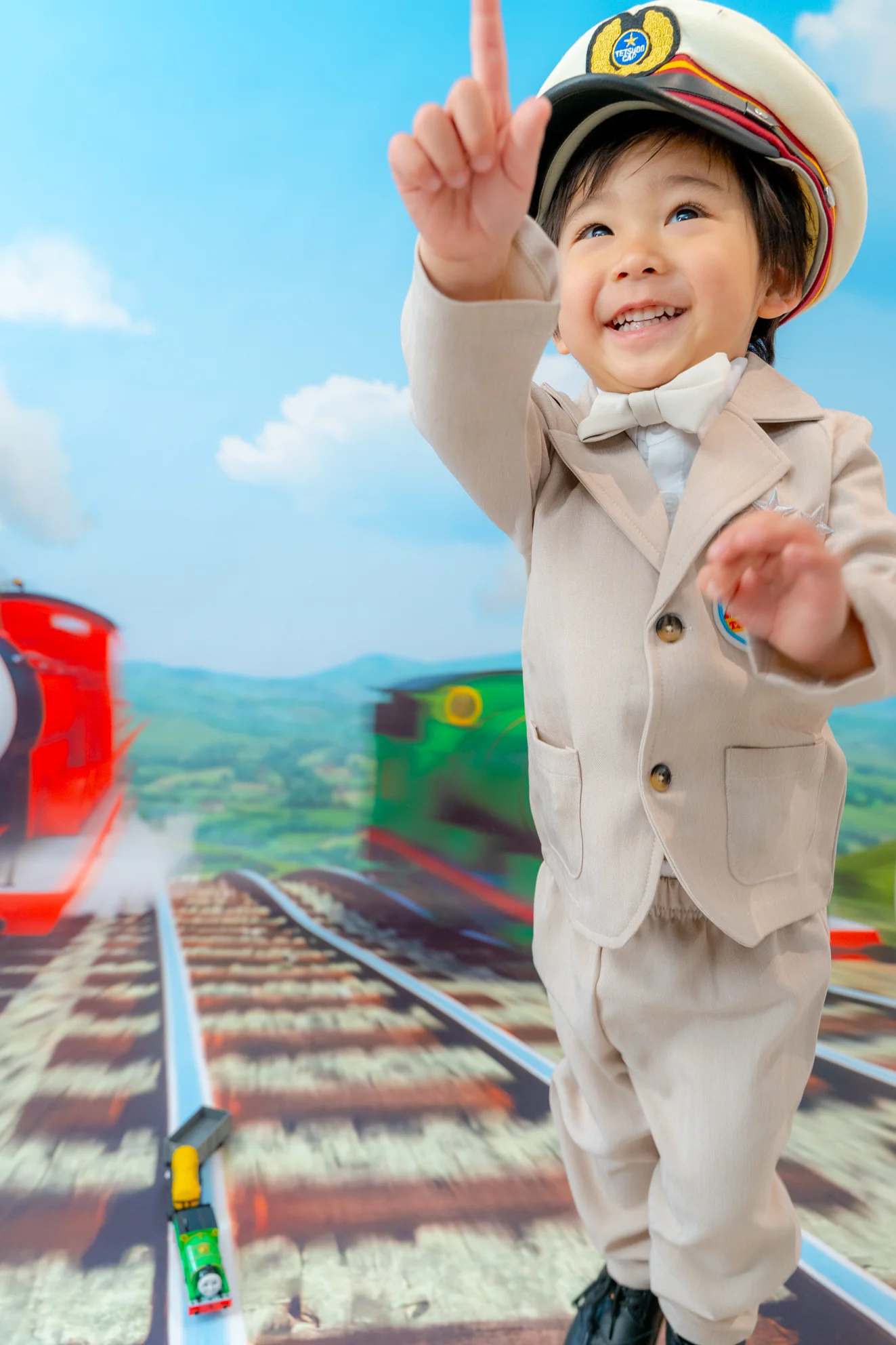 申し訳ございません。「七五三」や「バースデー」などのプラン内でのご案内はいたしかねます。きかんしゃトーマス撮影会のみのご案内です。ぜひこちらの撮影会をご利用ください。
