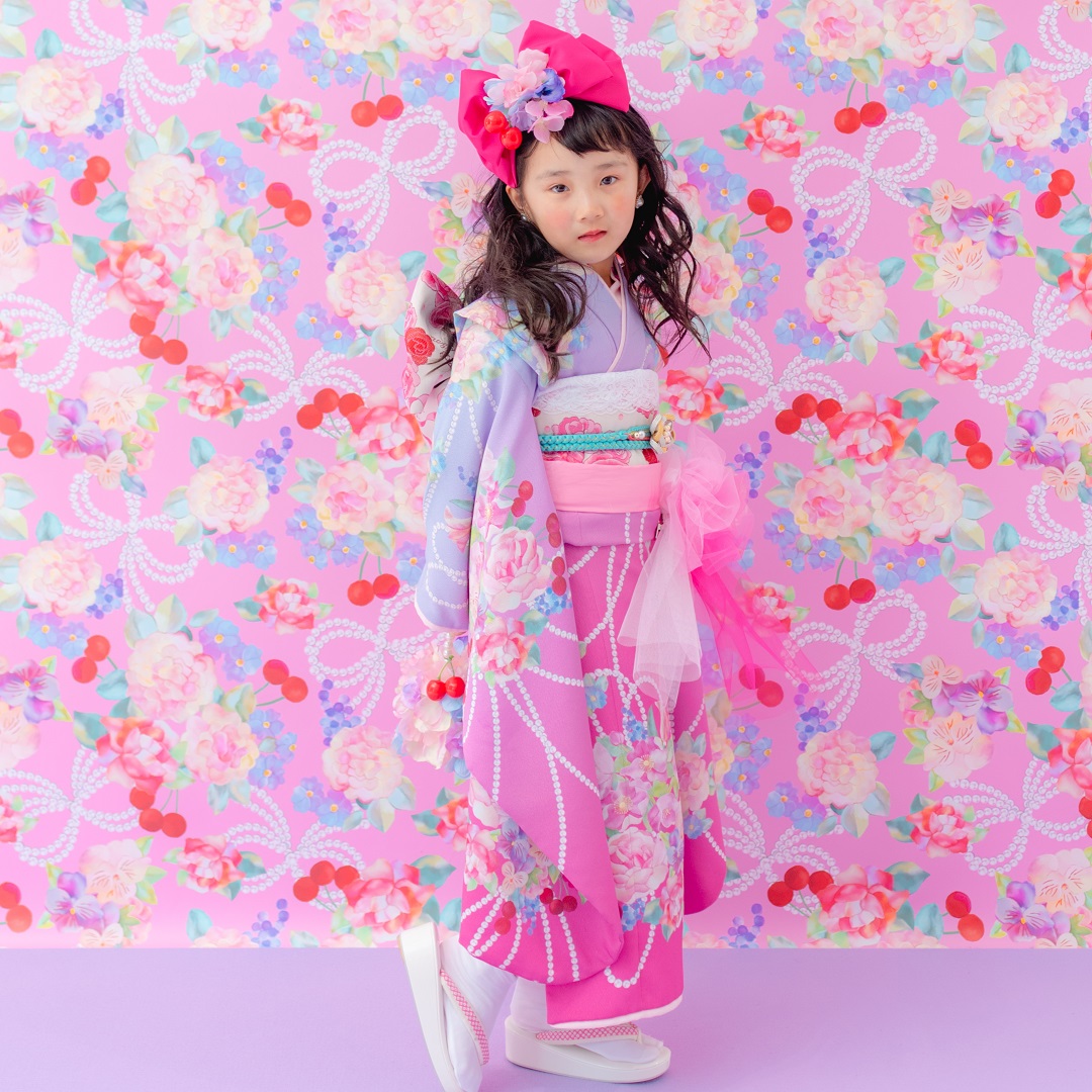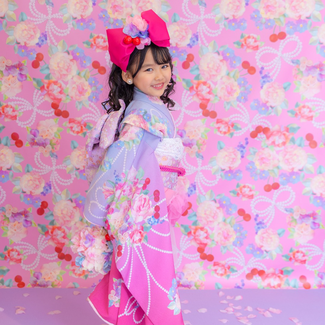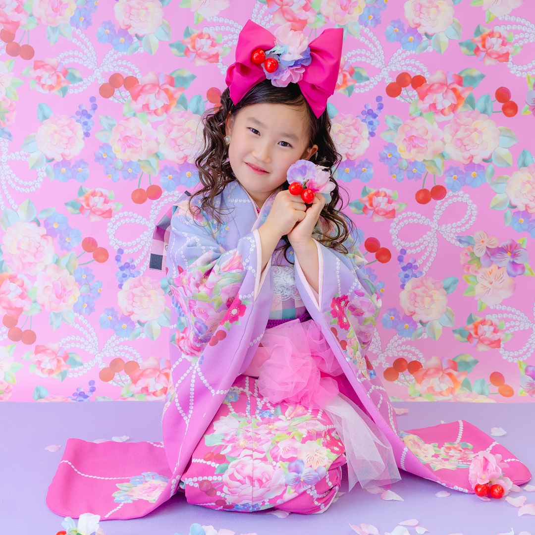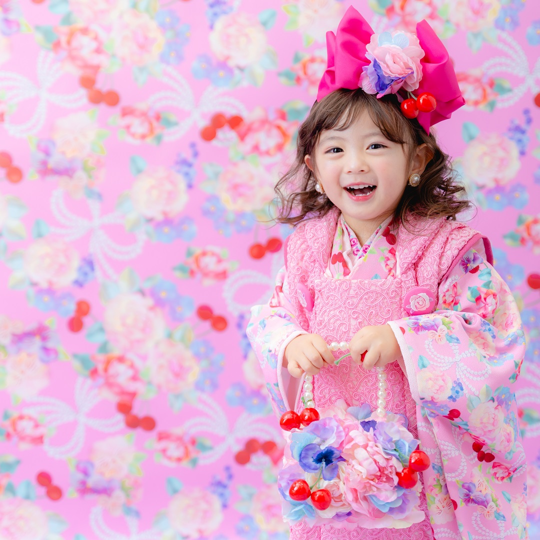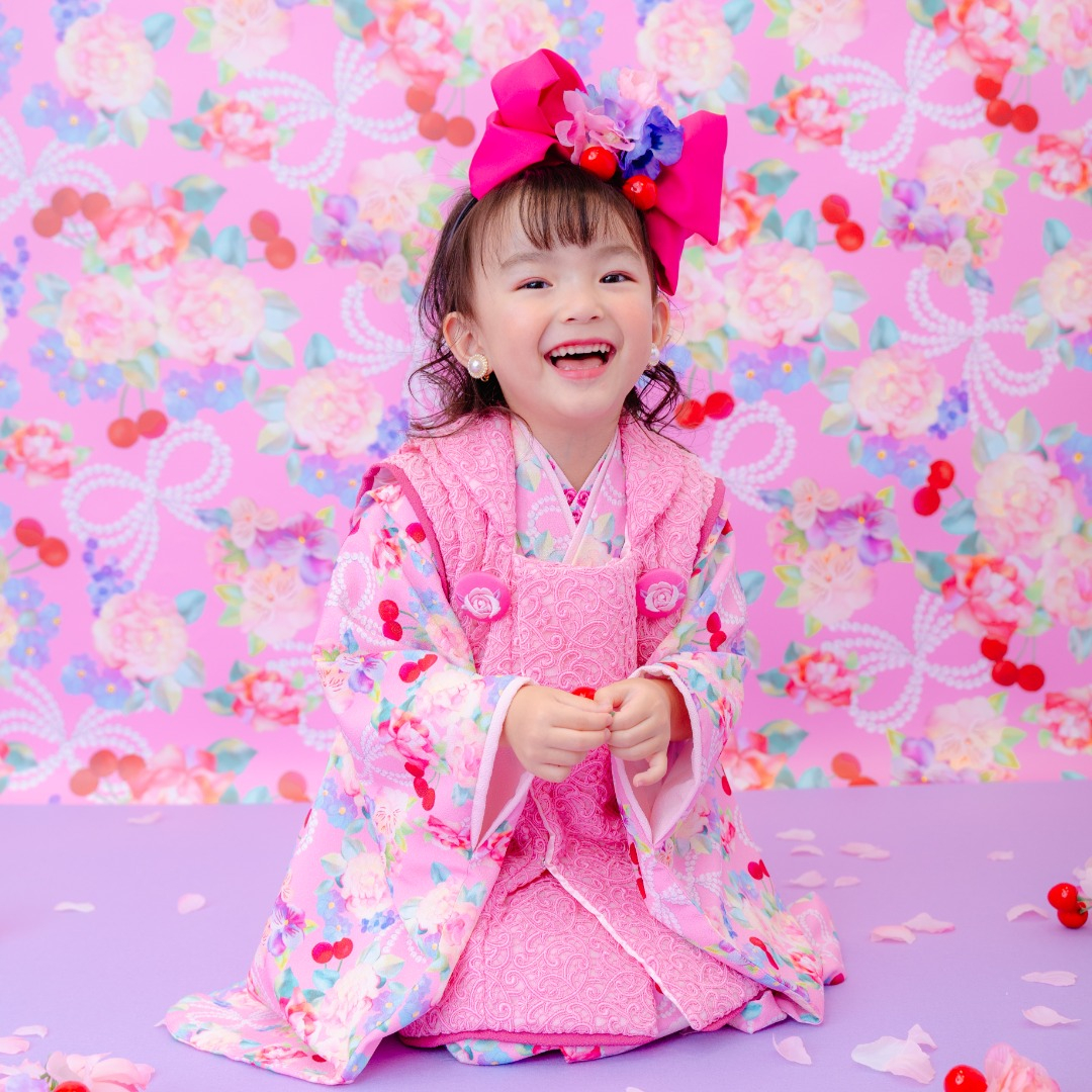 3歳の着物は、チェリー・ローズ・パールリボンが