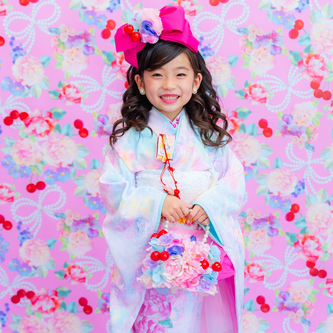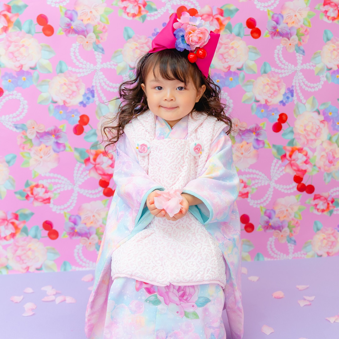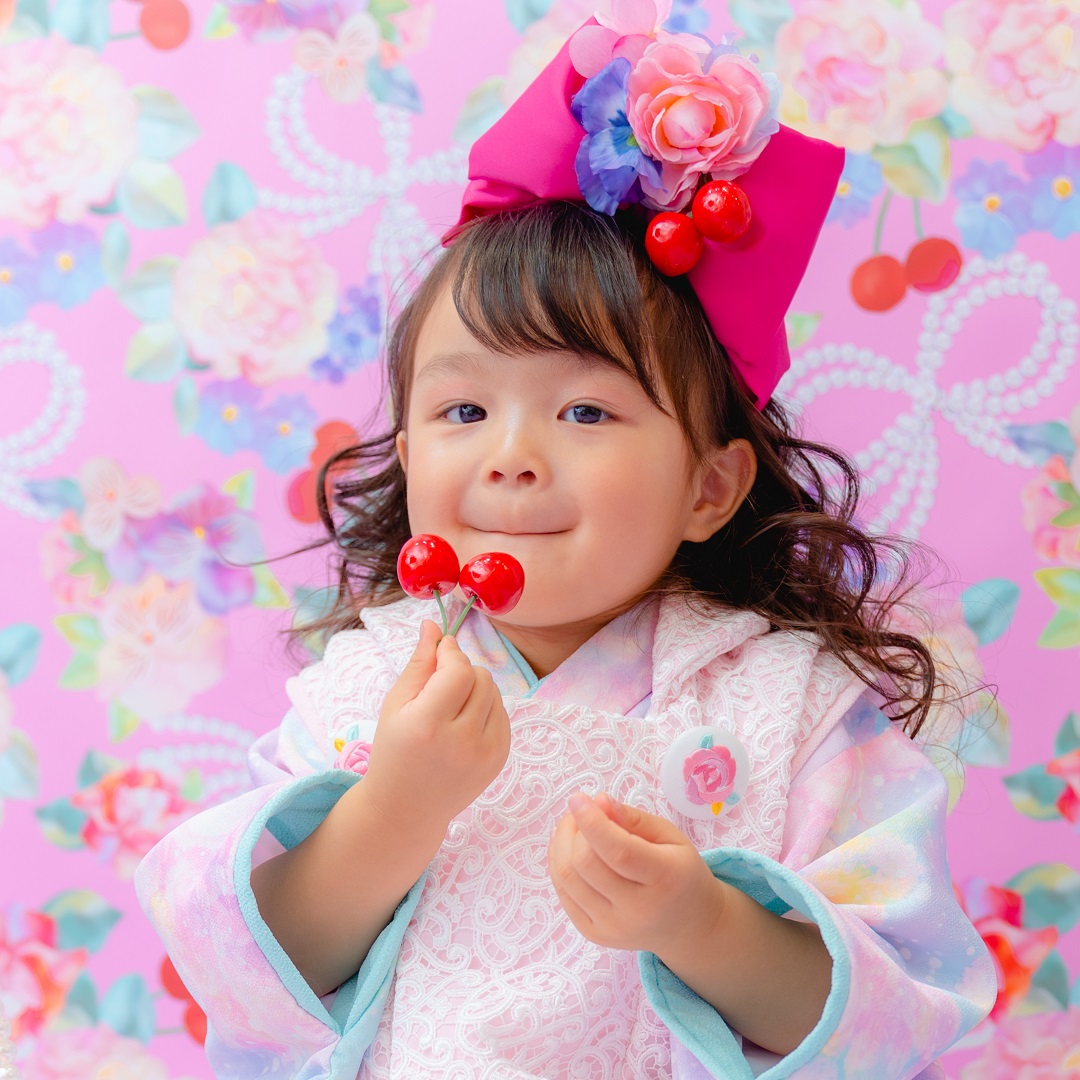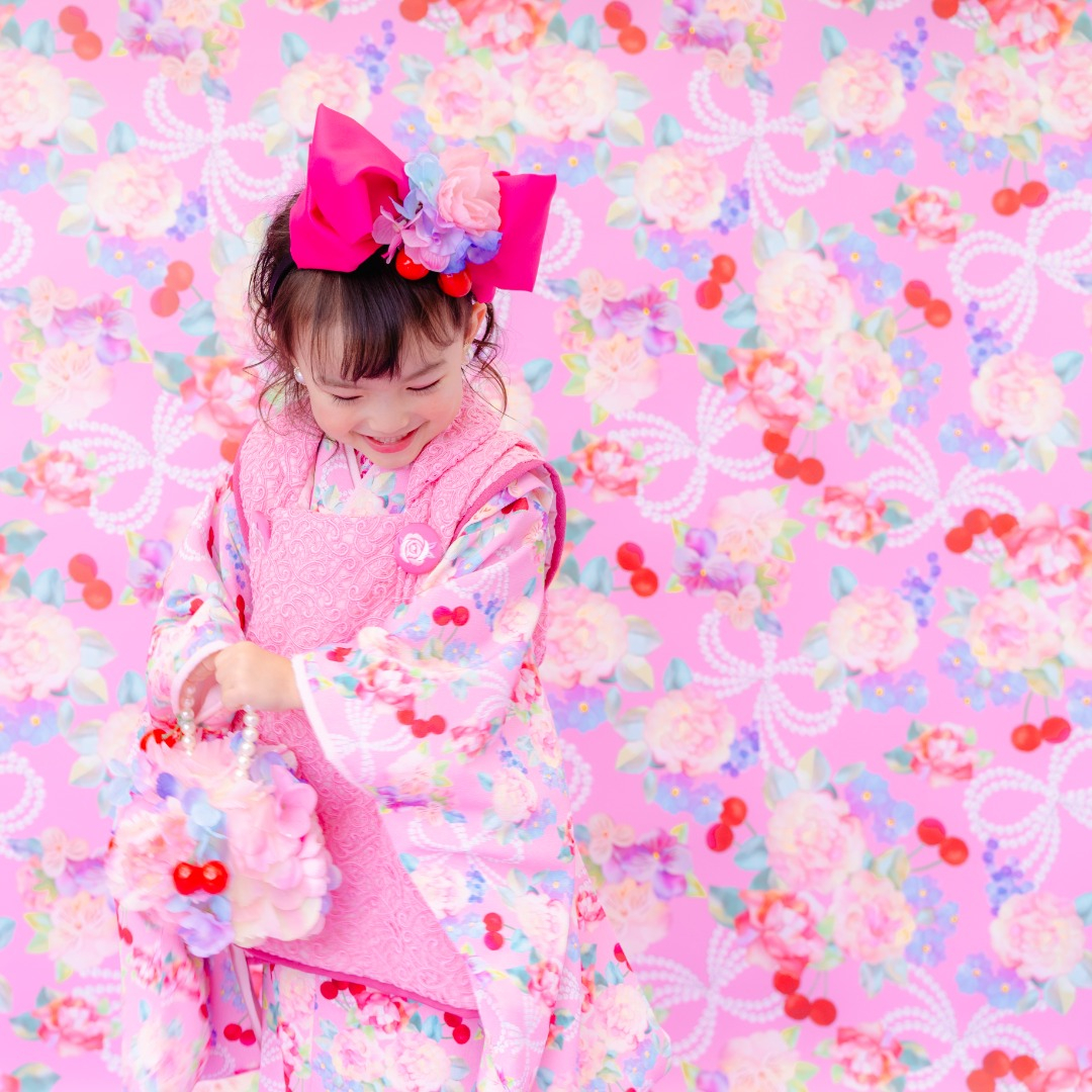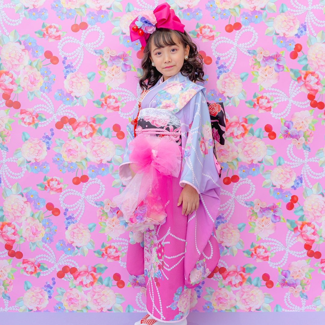 3歳の着物は、チェリー・ローズ・パールリボンが