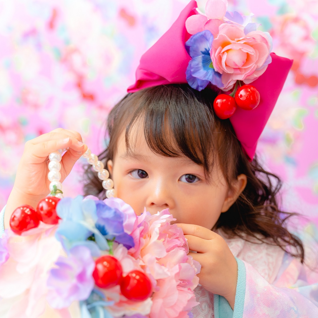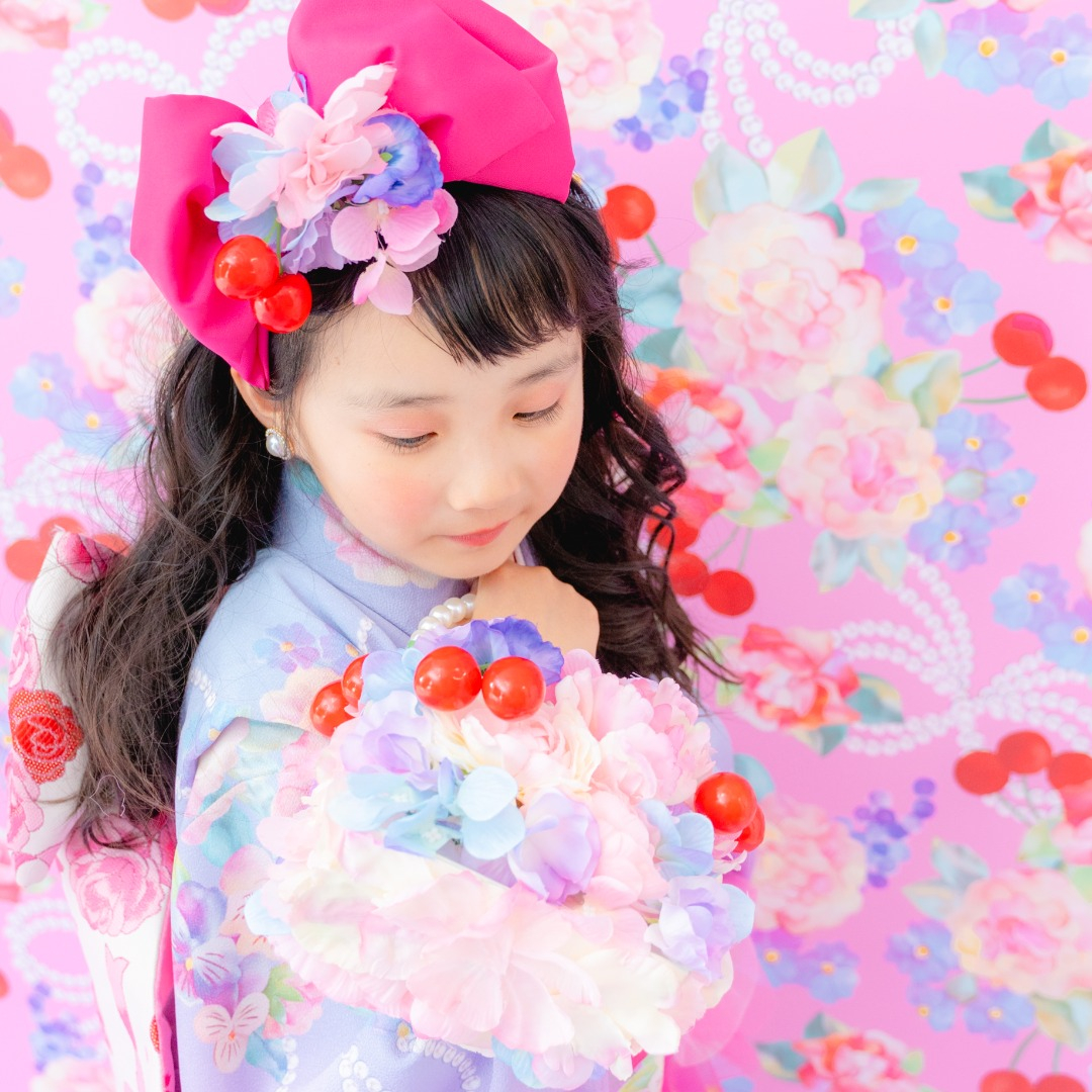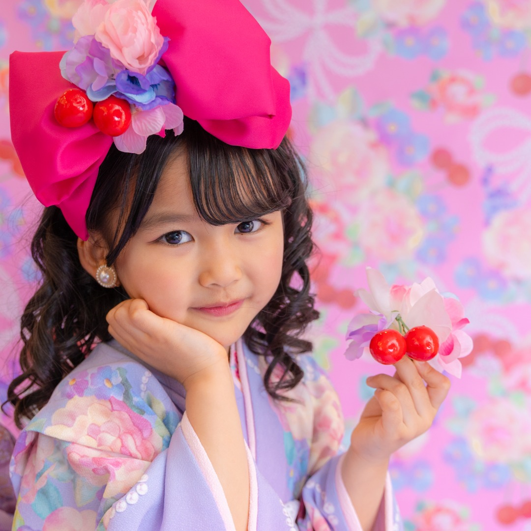 七五三の装いに、リボン飾りやフラワーアレンジ、