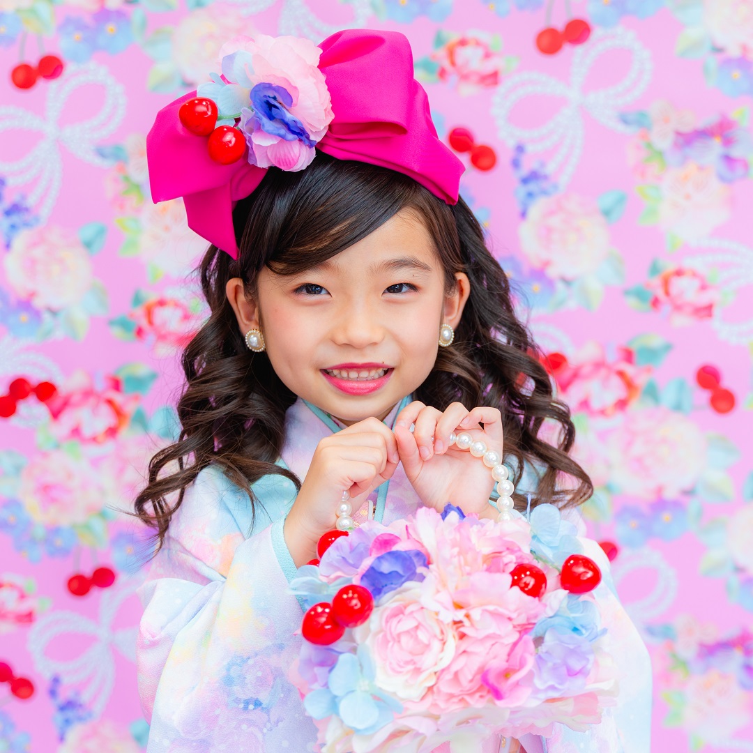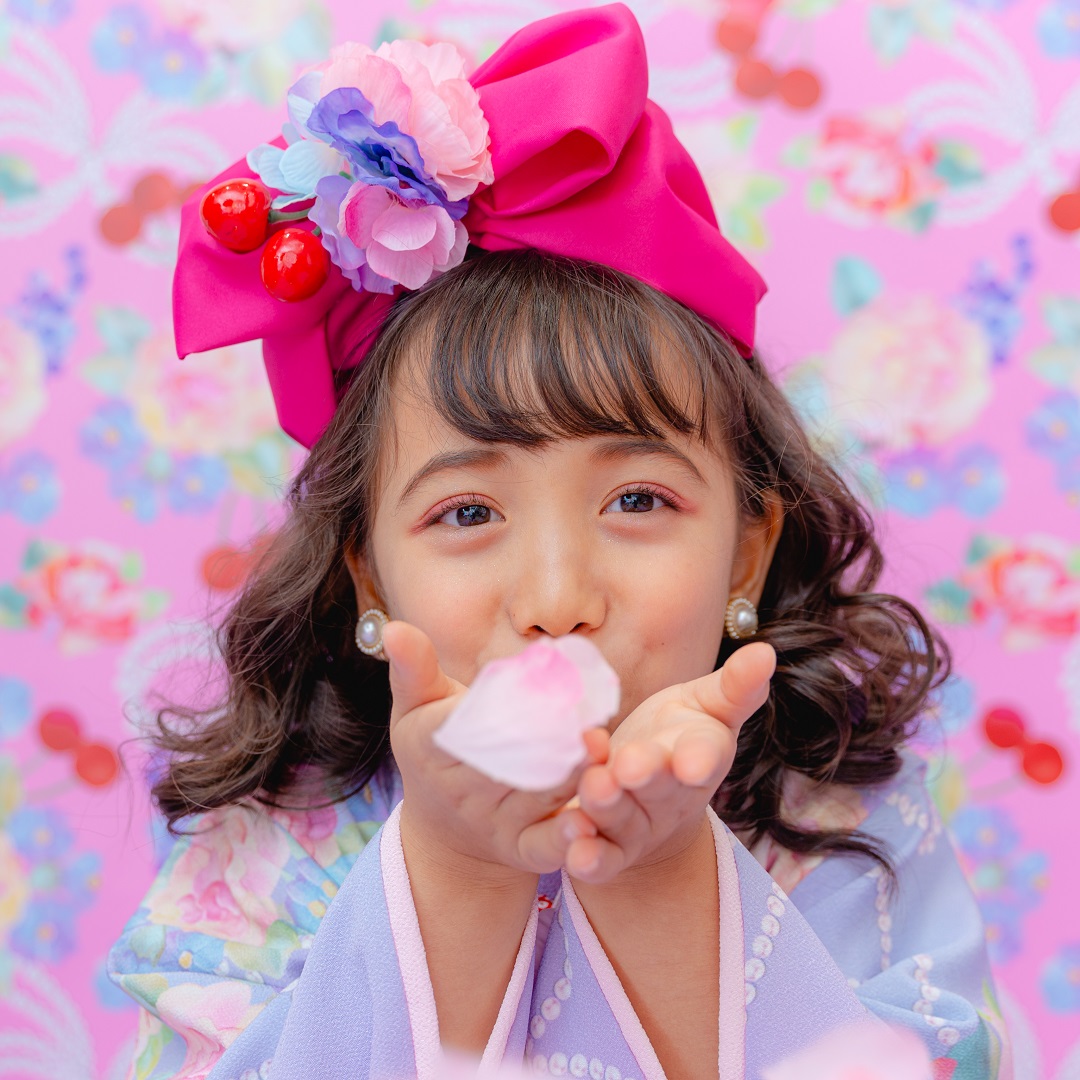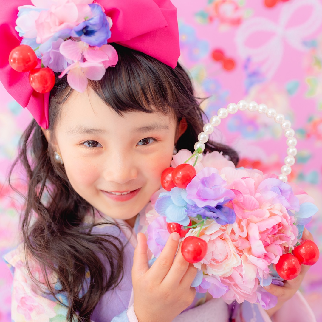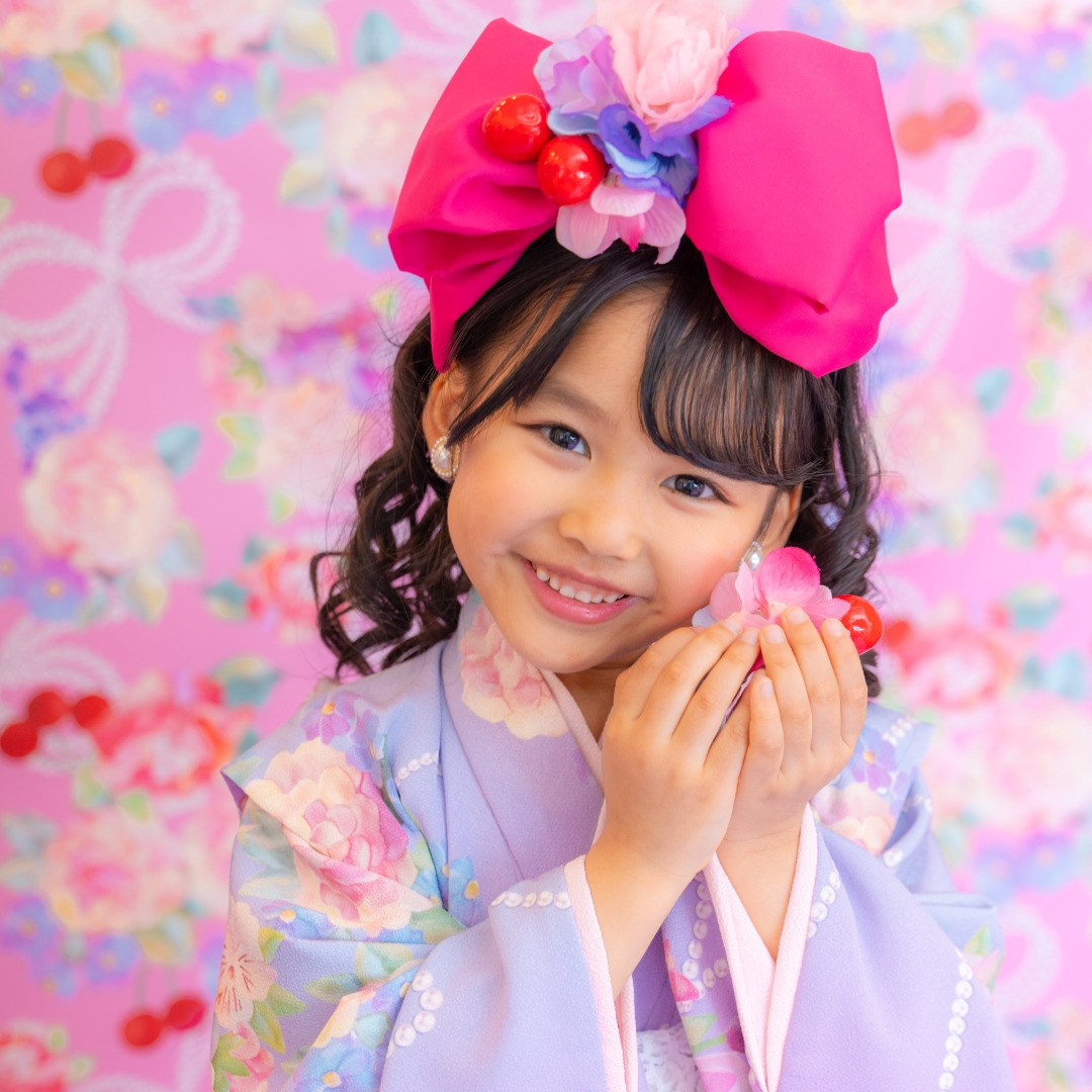 七五三の装いに、リボン飾りやフラワーアレンジ、