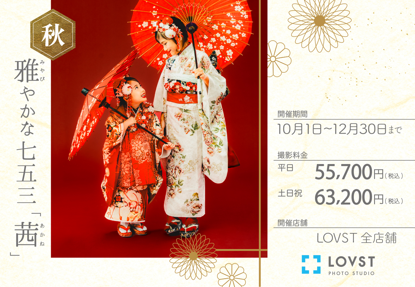 LOVSTの七五三撮影プランでは、お着物撮影のみならずドレスでの撮影もセットで叶います♪