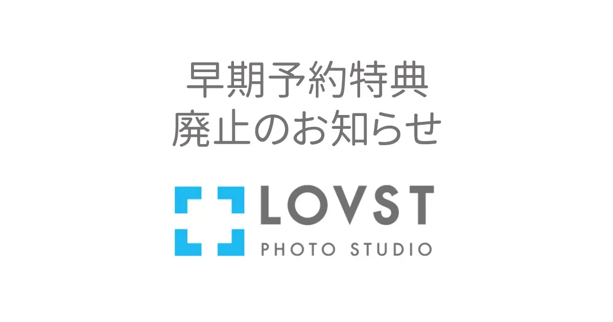 誠に勝手ながら、LOVSTフォトスタジオでは3月末をもちまして早期予約特典を廃止させていただく運びとなりました。