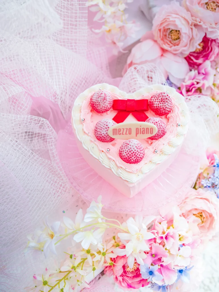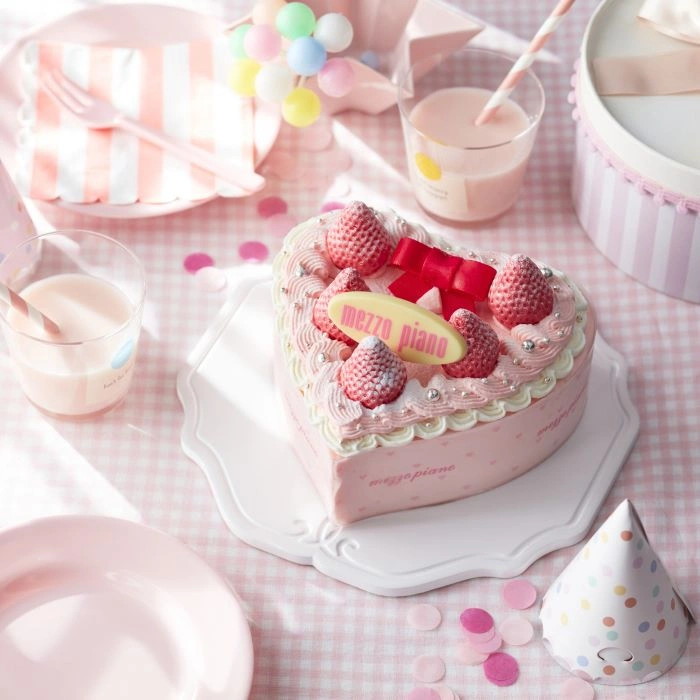 女の子の大好きが詰まったキュートなハート型ケーキ。