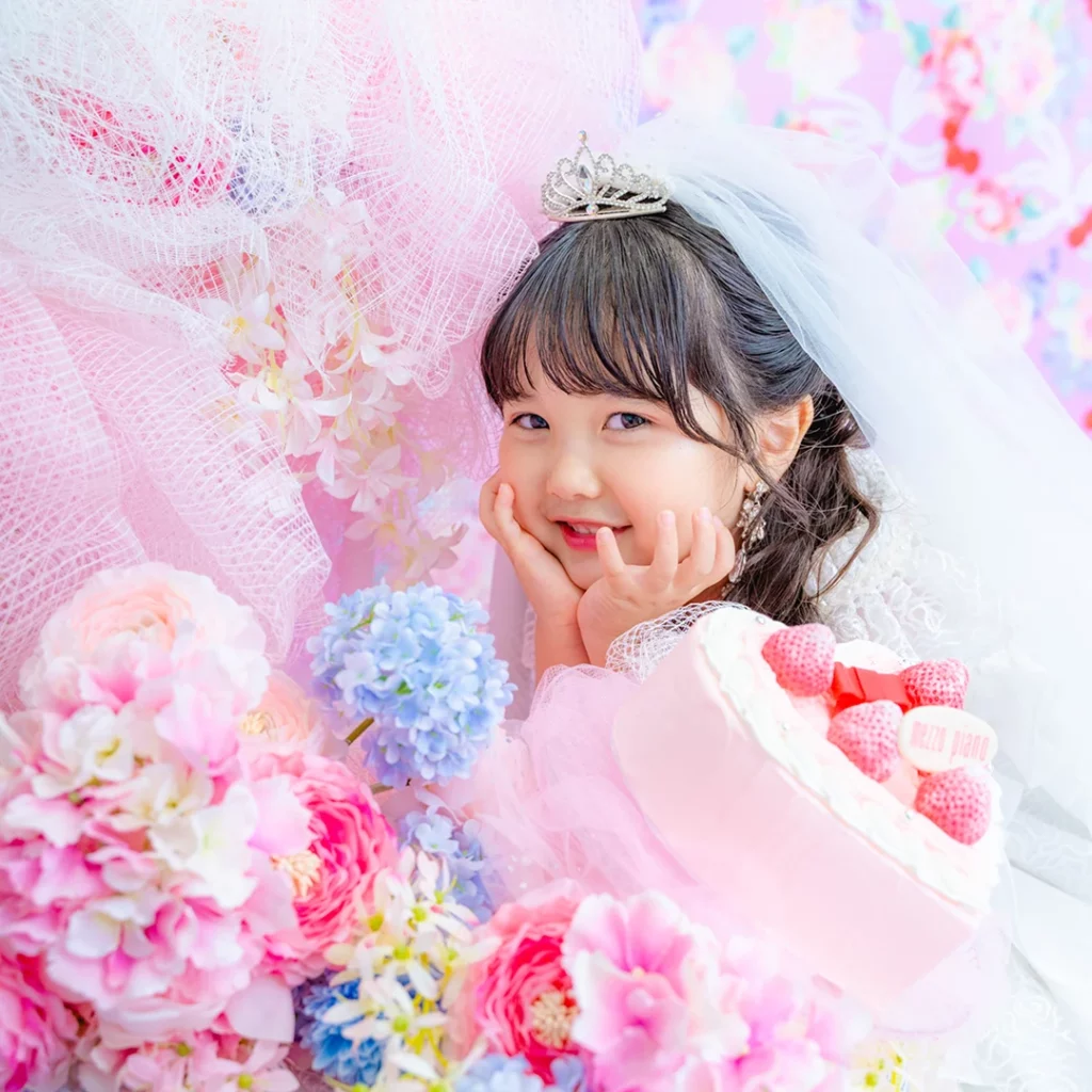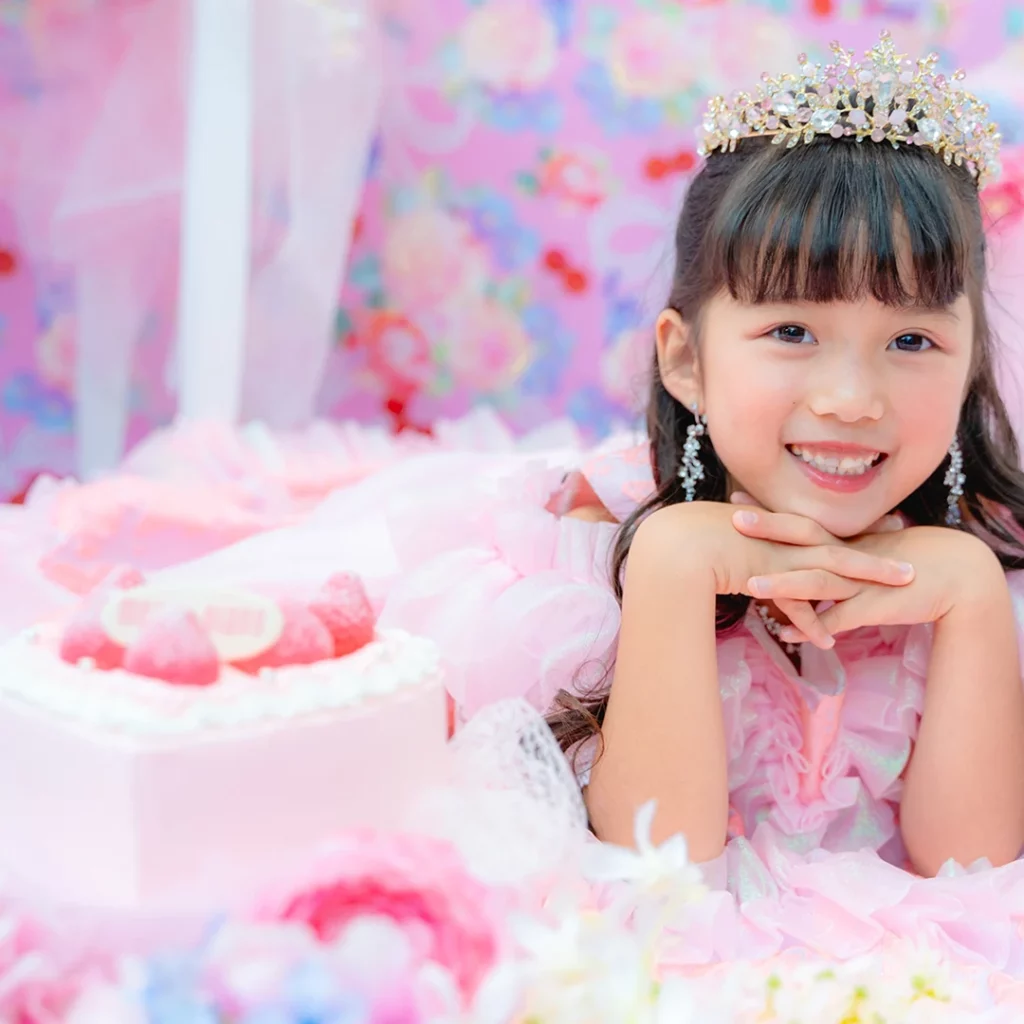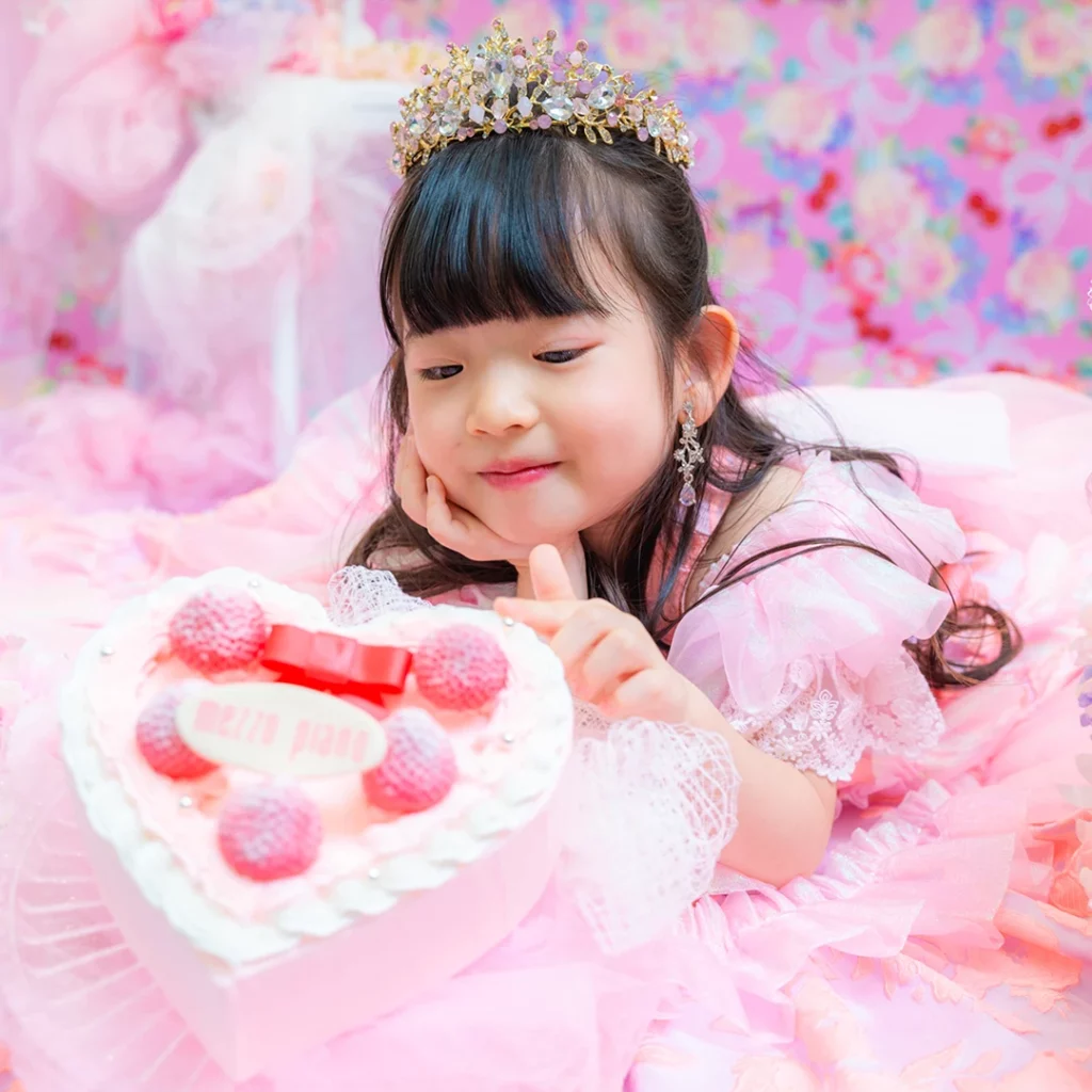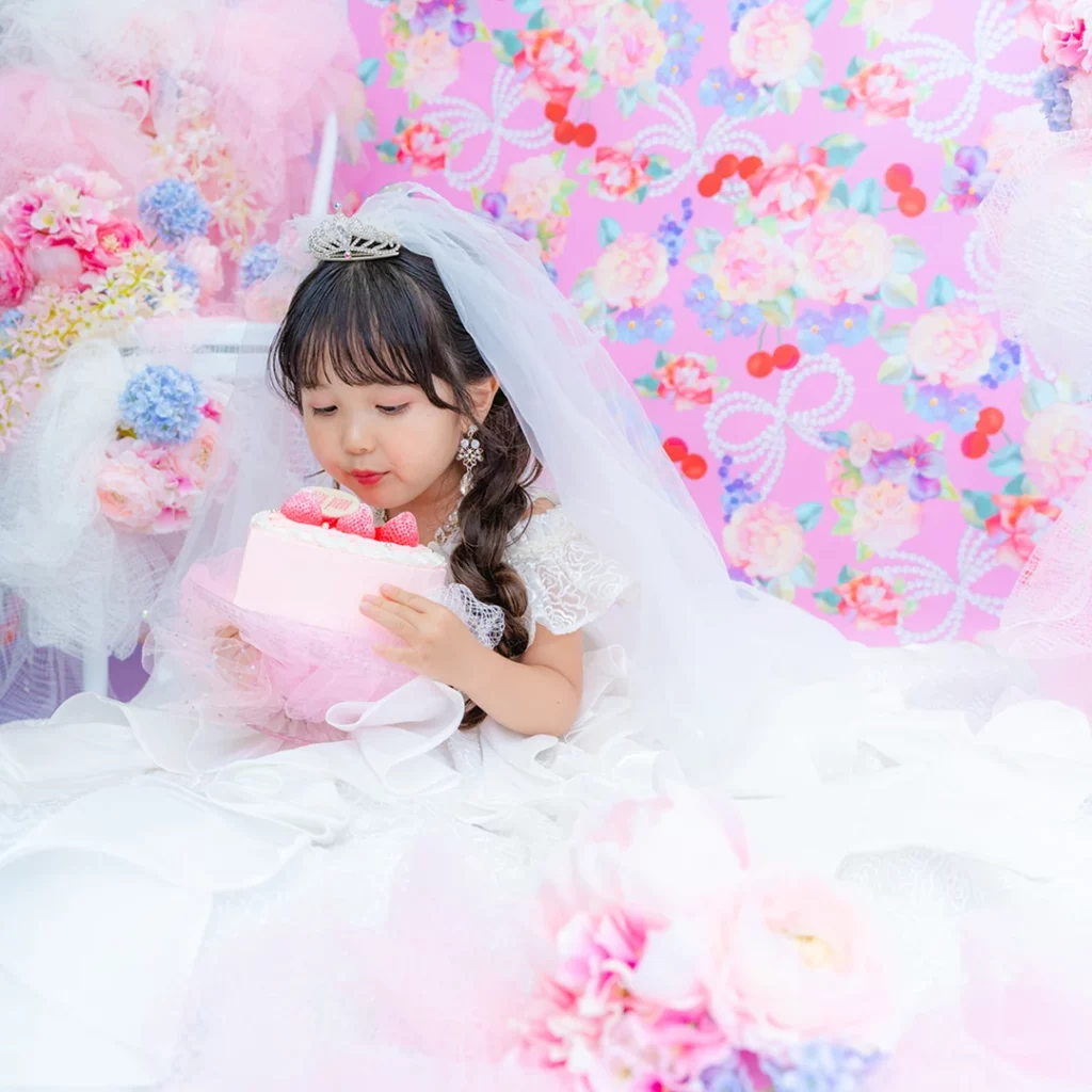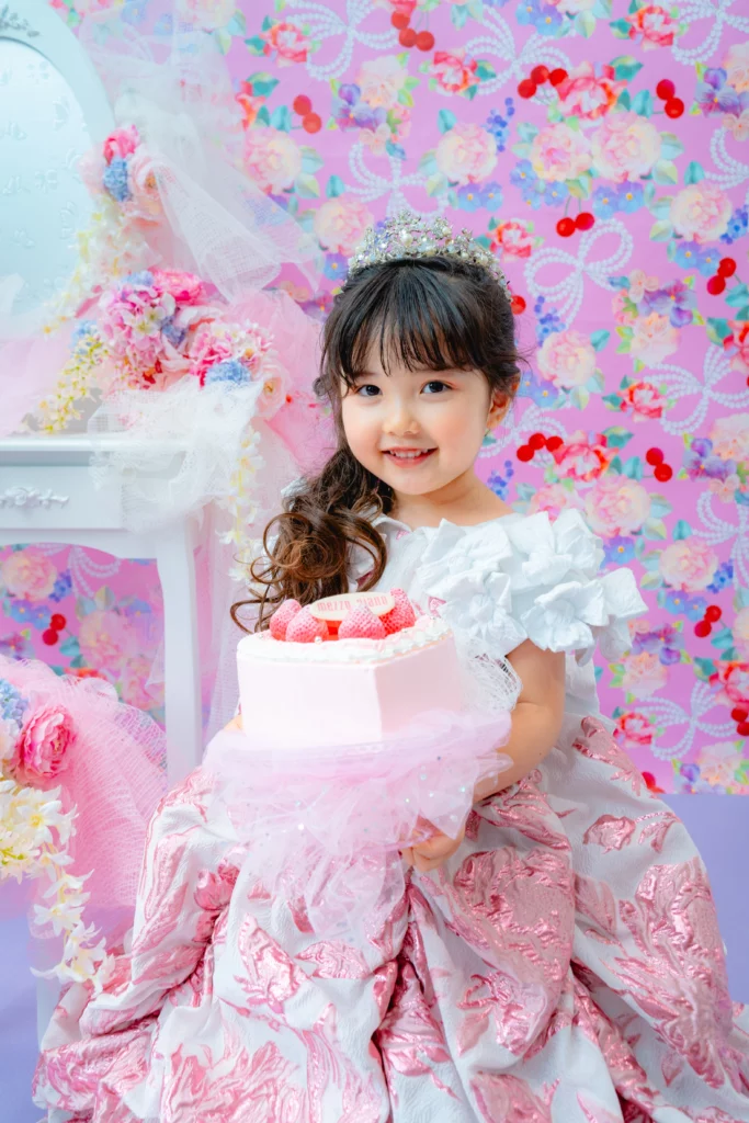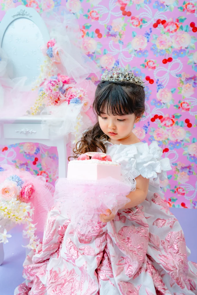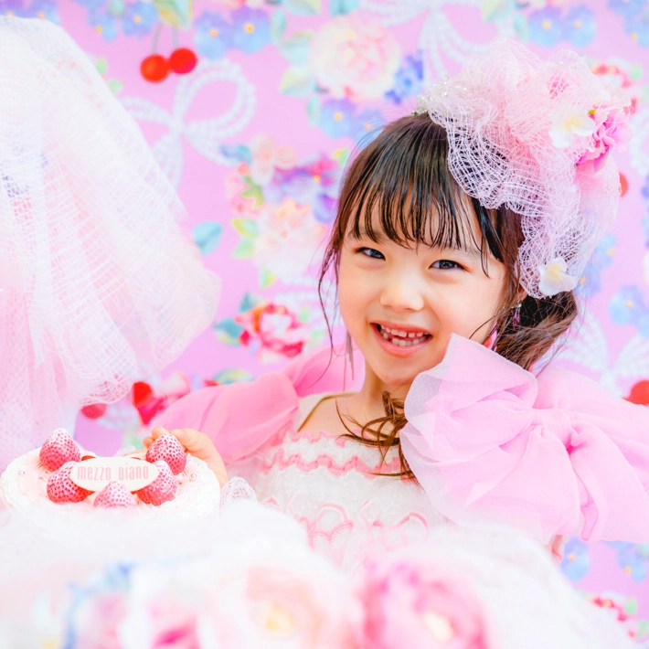 撮影料・写真データ【スマホデータ】・衣装代・メゾ ピアノ ストロベリープリンセスケーキご自宅配送付き