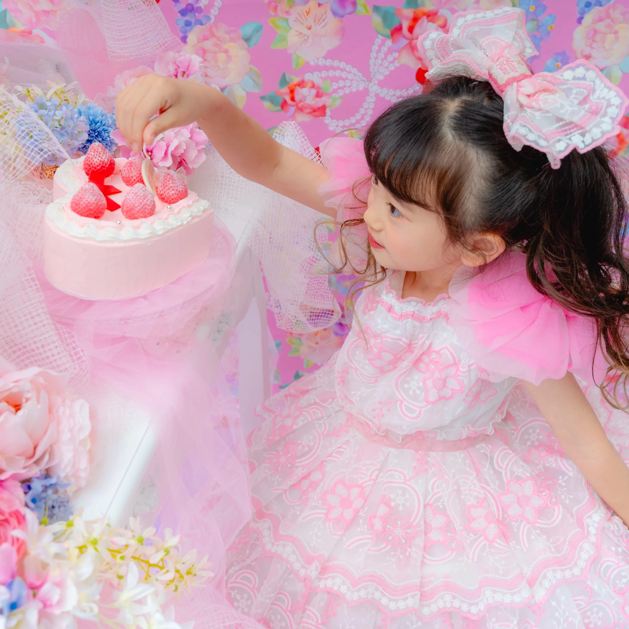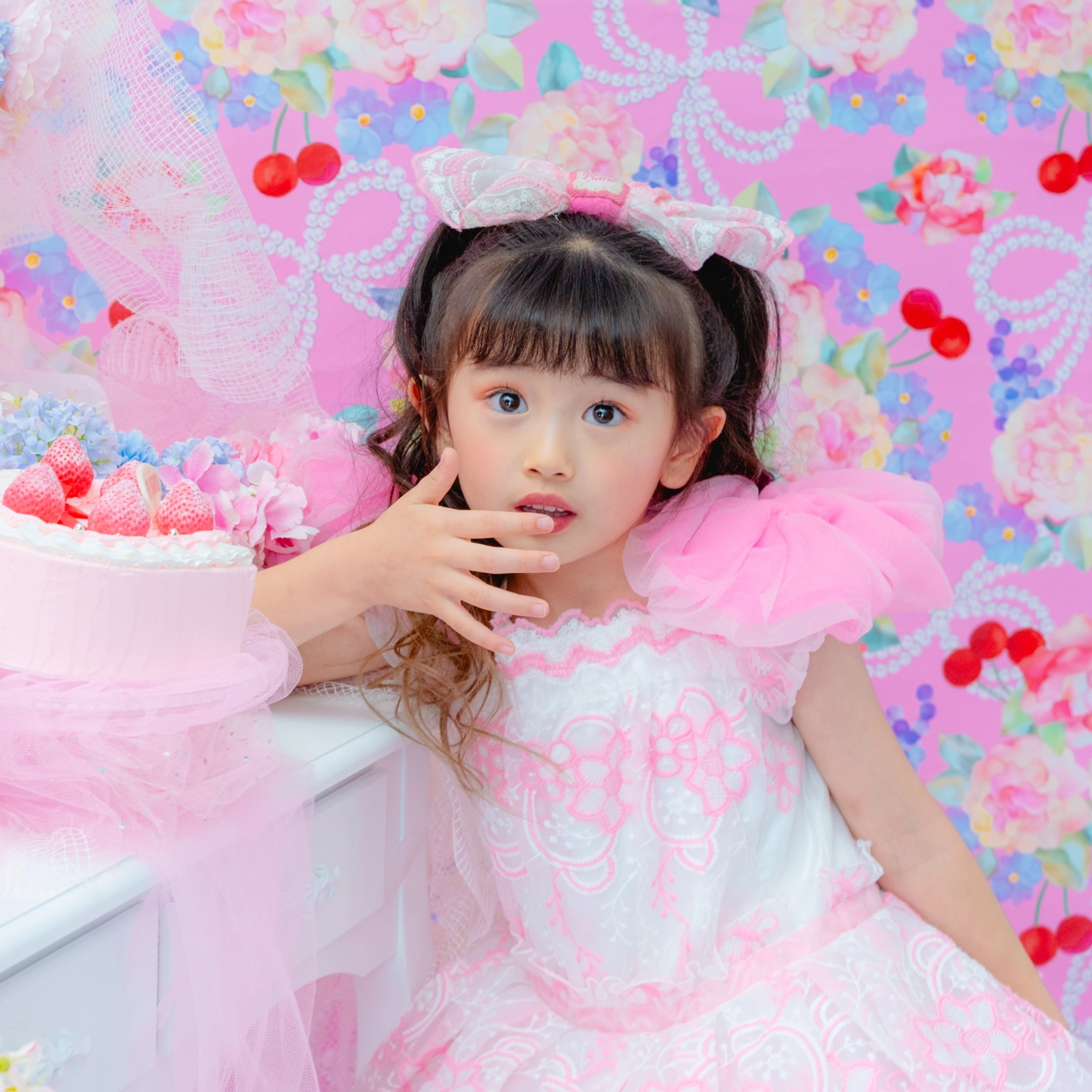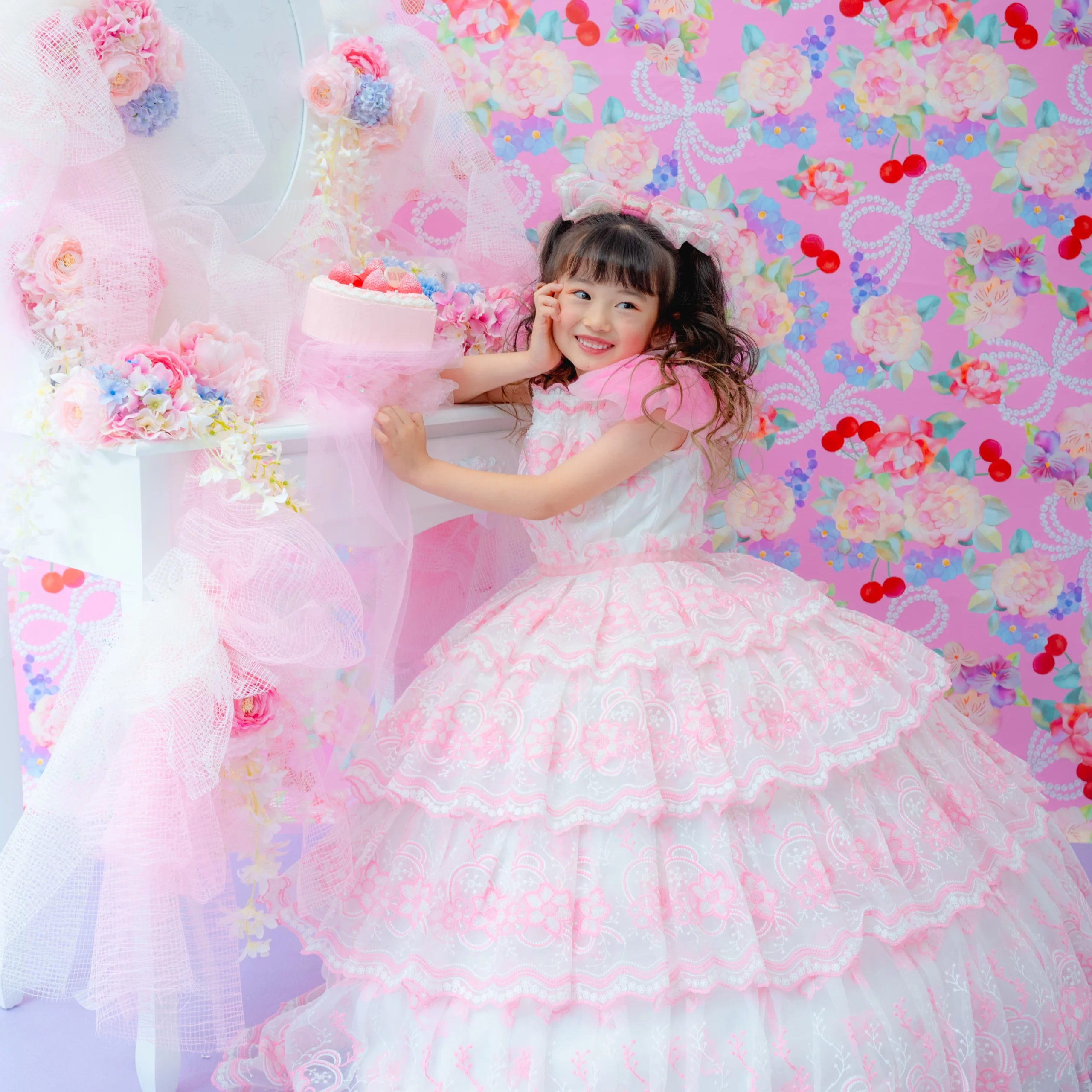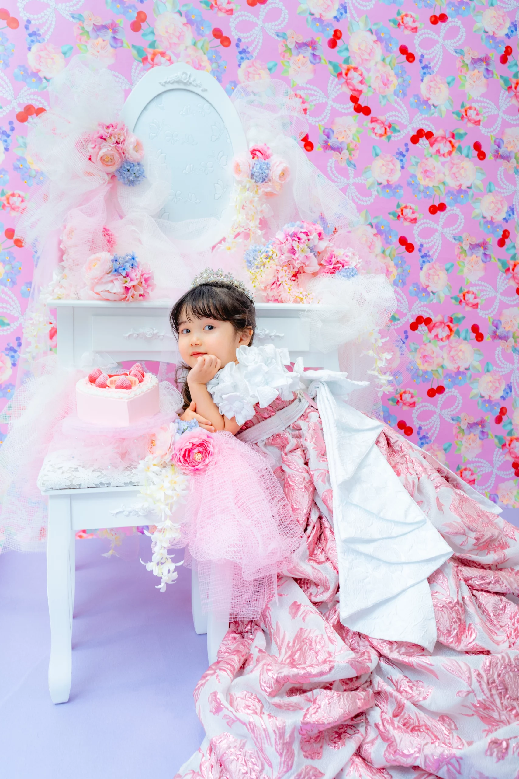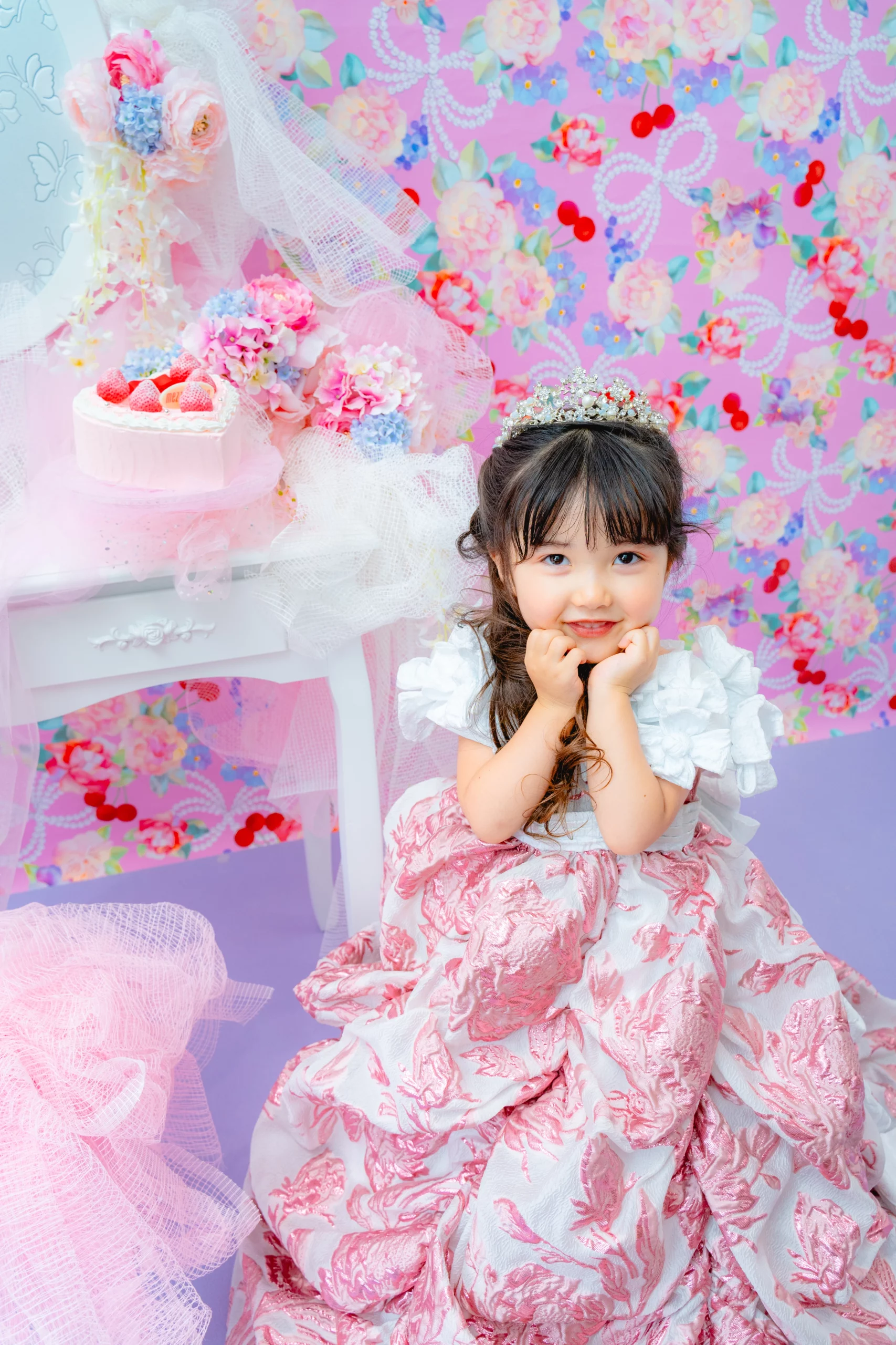 撮影料・写真データ【スマホデータ】・衣装代・メゾ ピアノ ストロベリープリンセスケーキご自宅配送付き