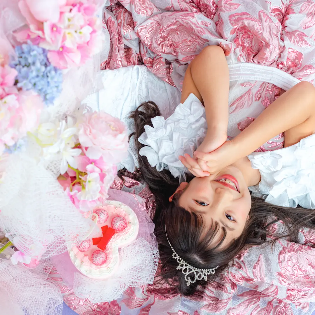 撮影料・写真データ【スマホデータ】・衣装代・ヘアメイク代・メゾ ピアノ ストロベリープリンセスケーキご自宅配送付き