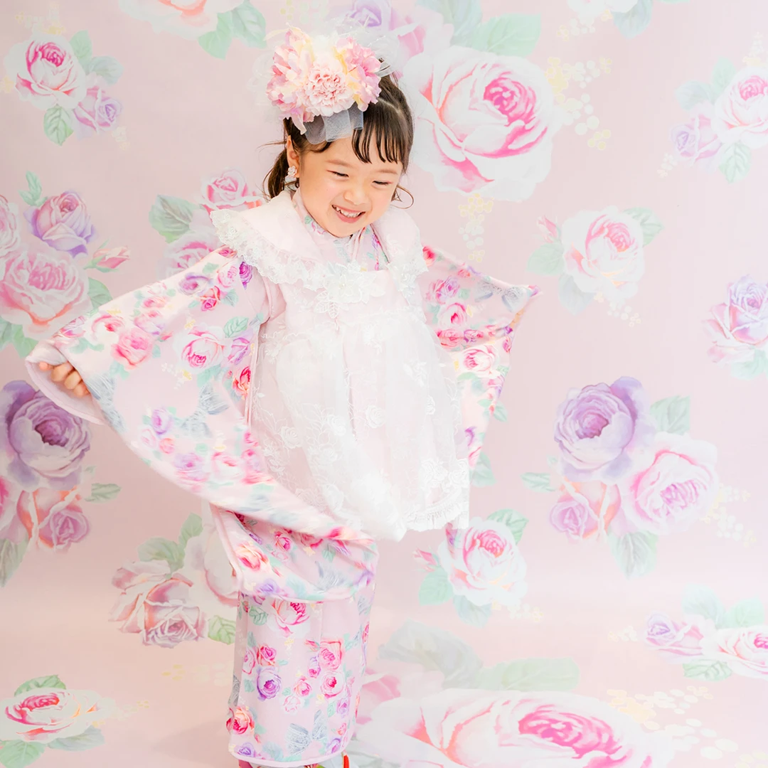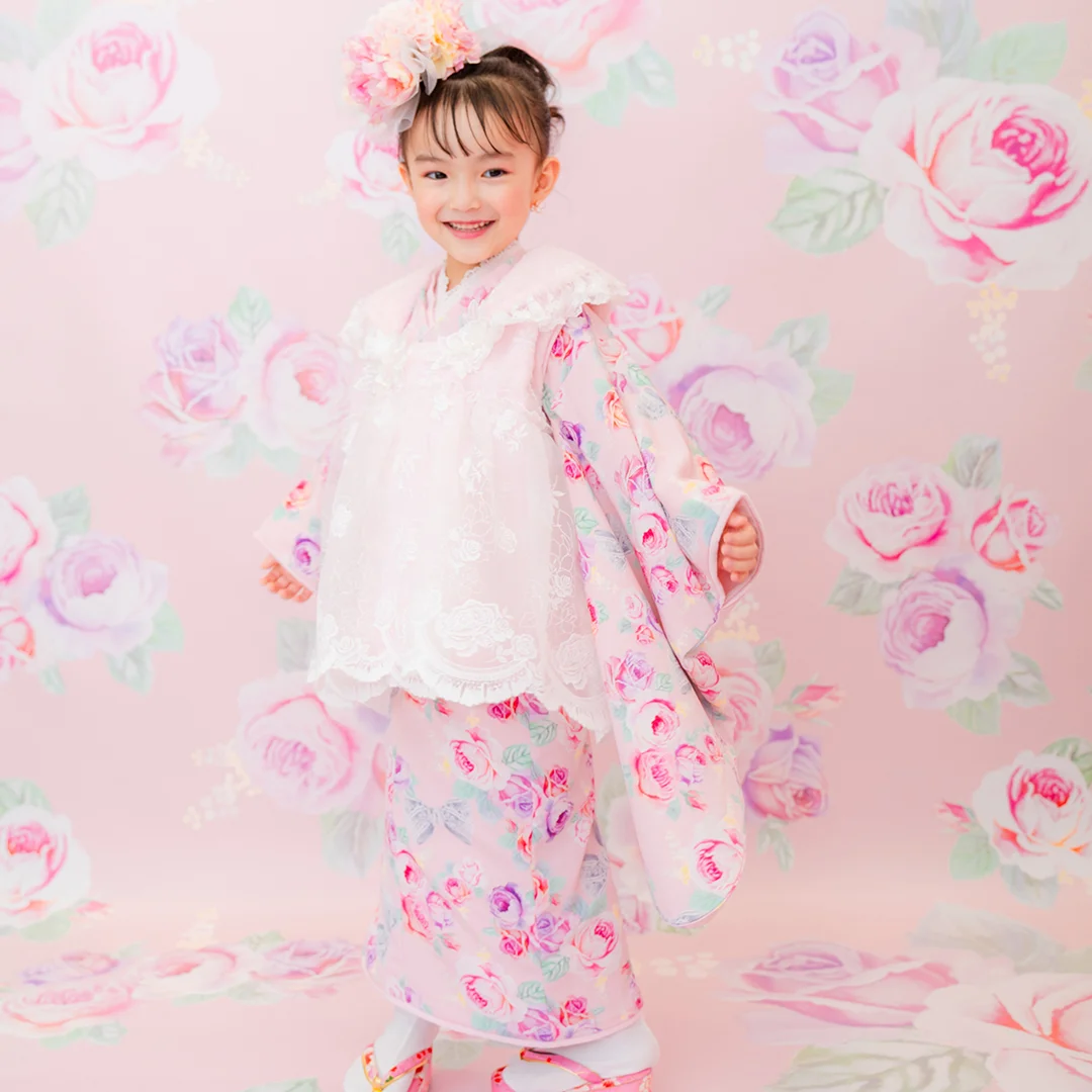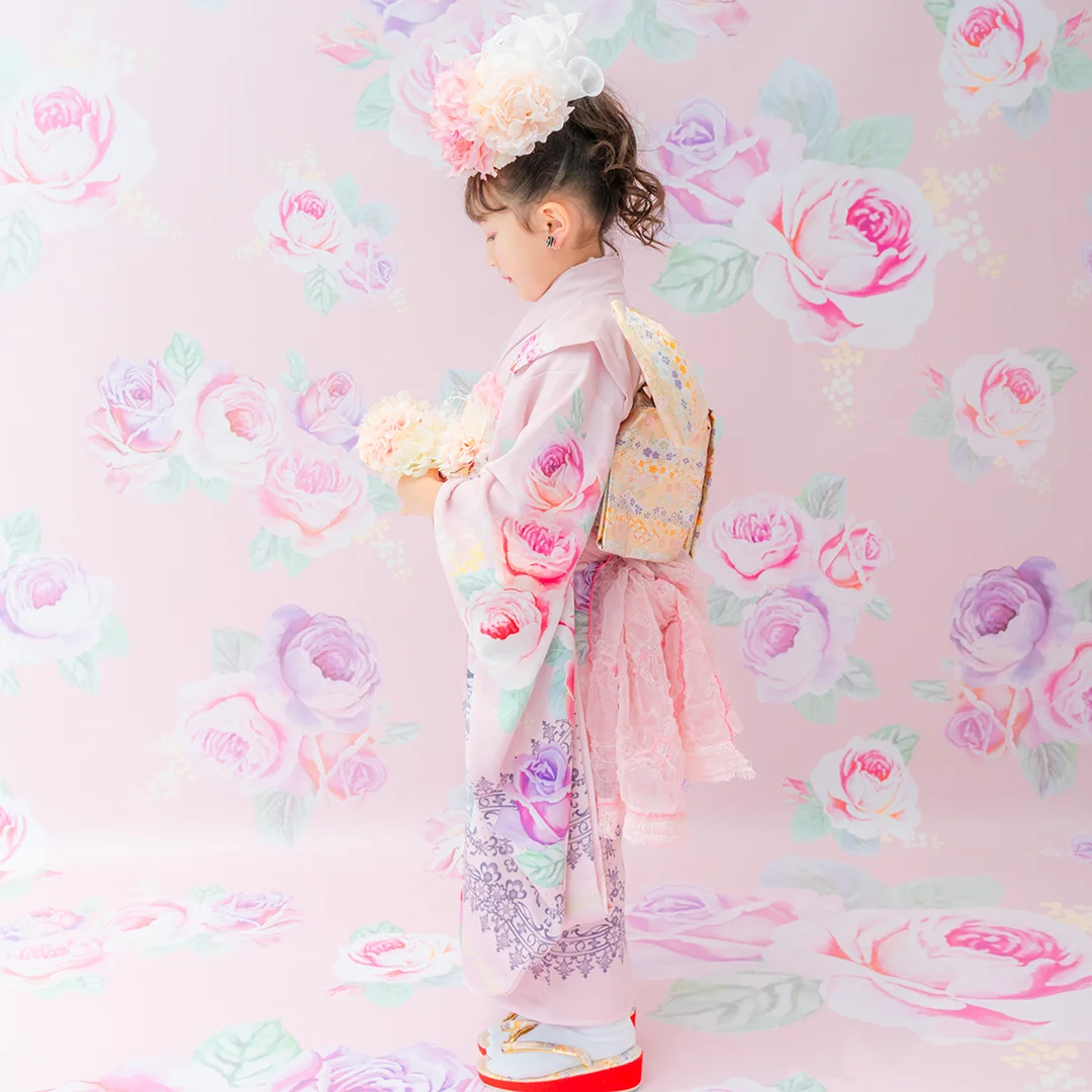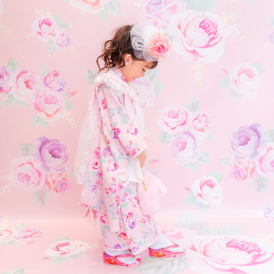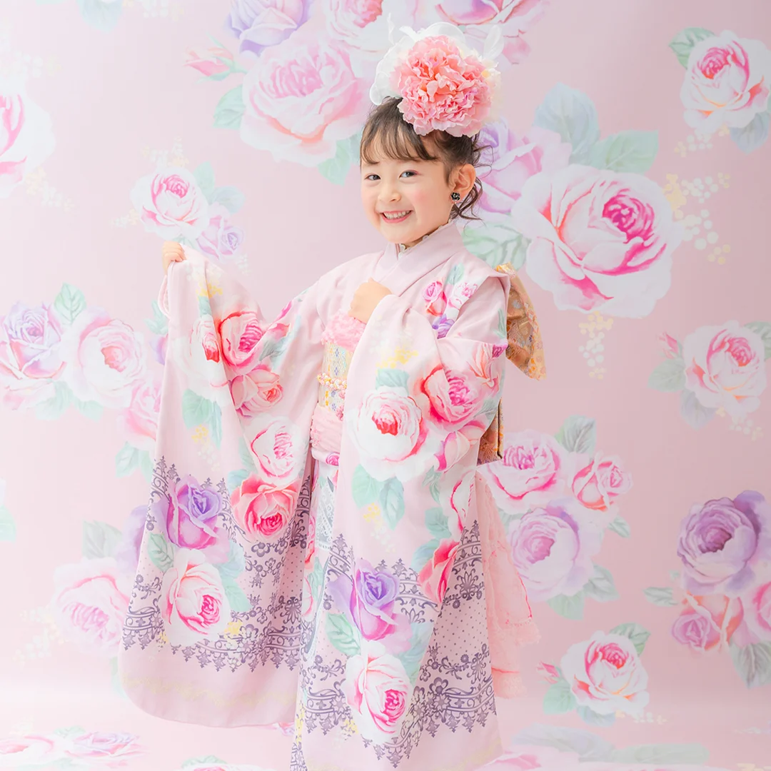 7歳の装いは、メゾ ピアノを象徴する花「薔薇」を