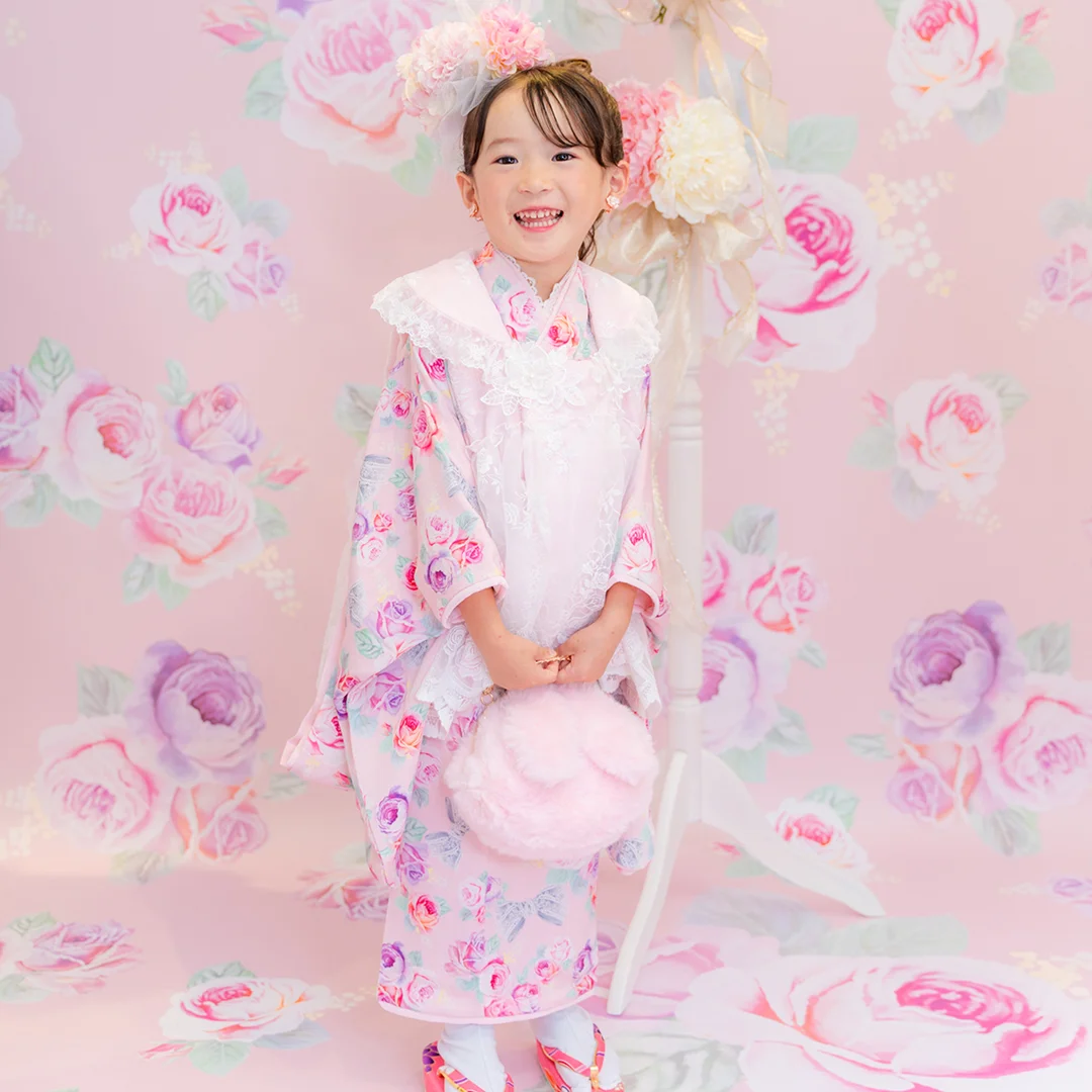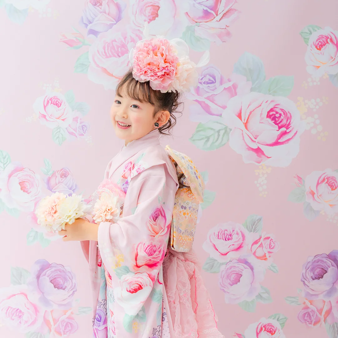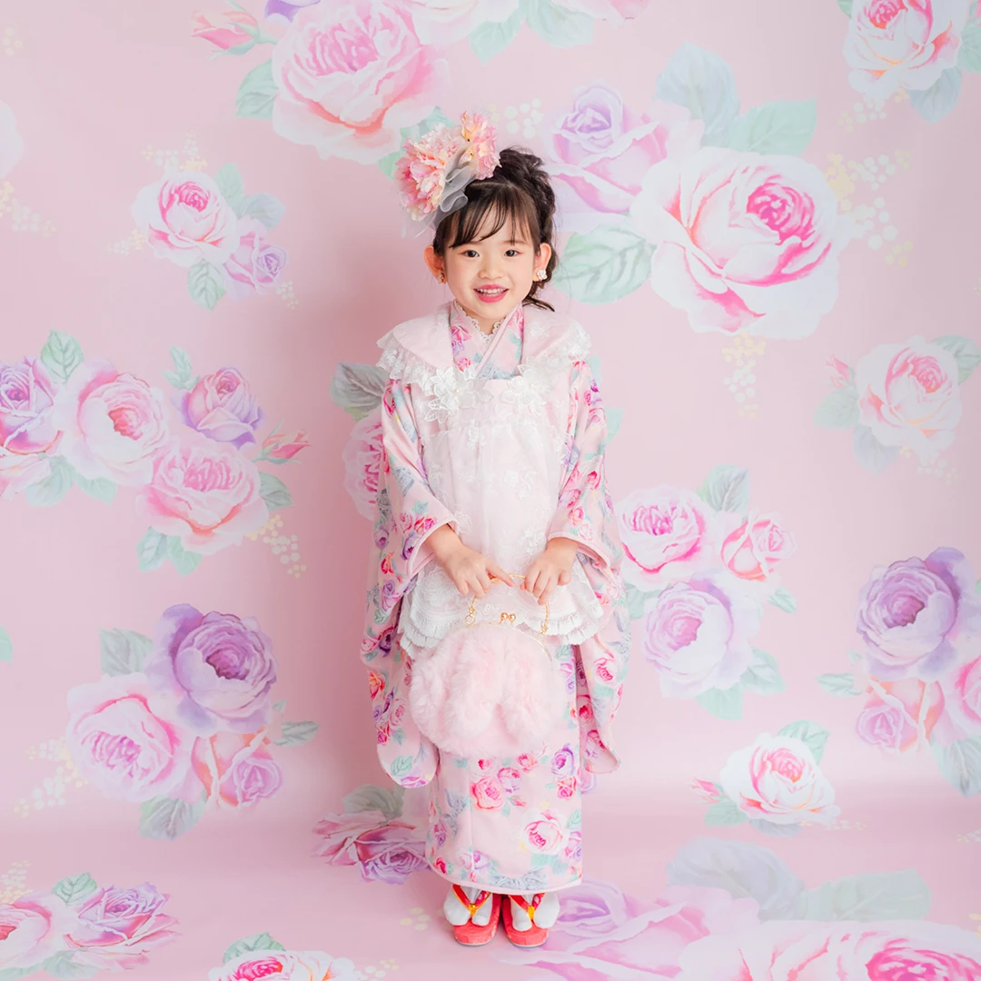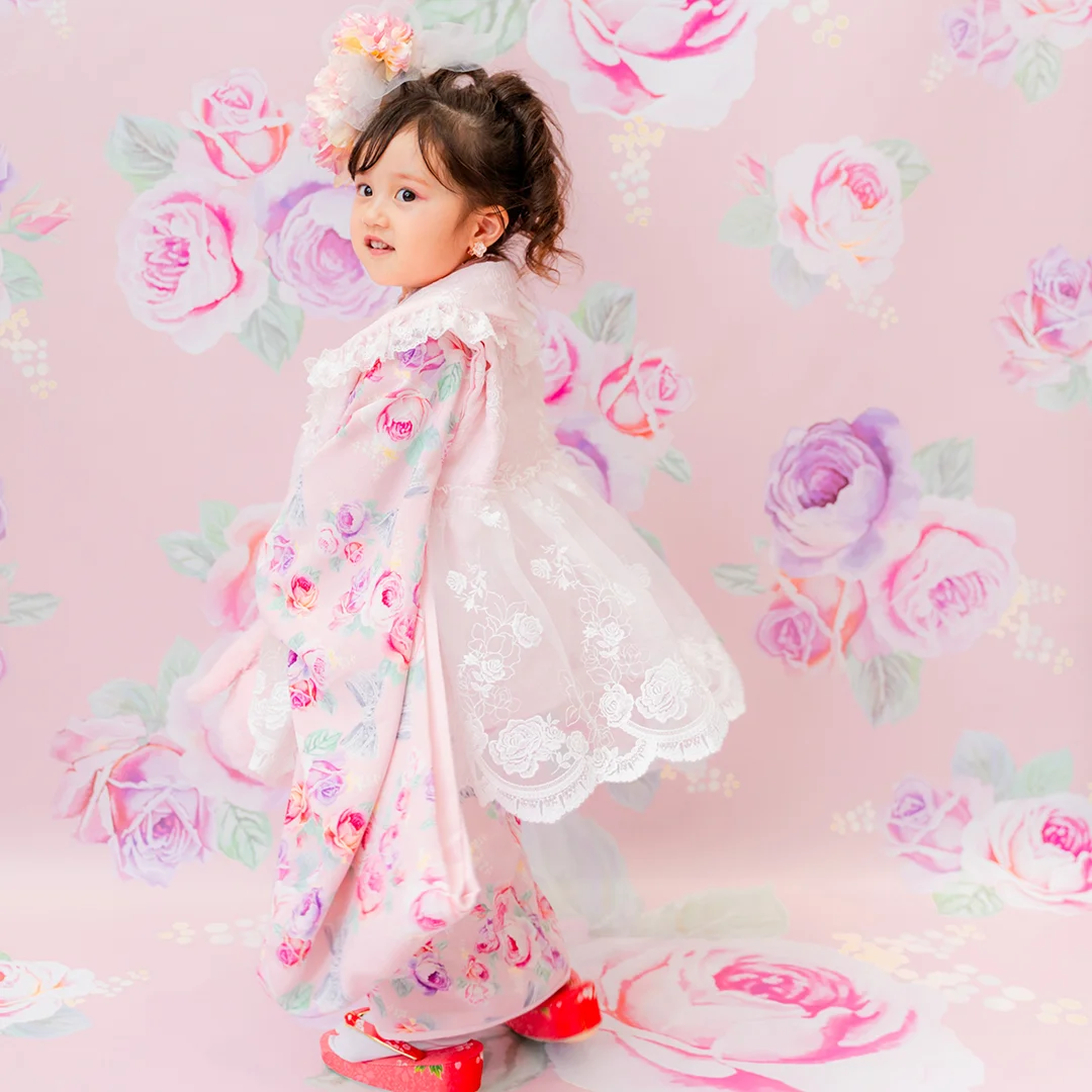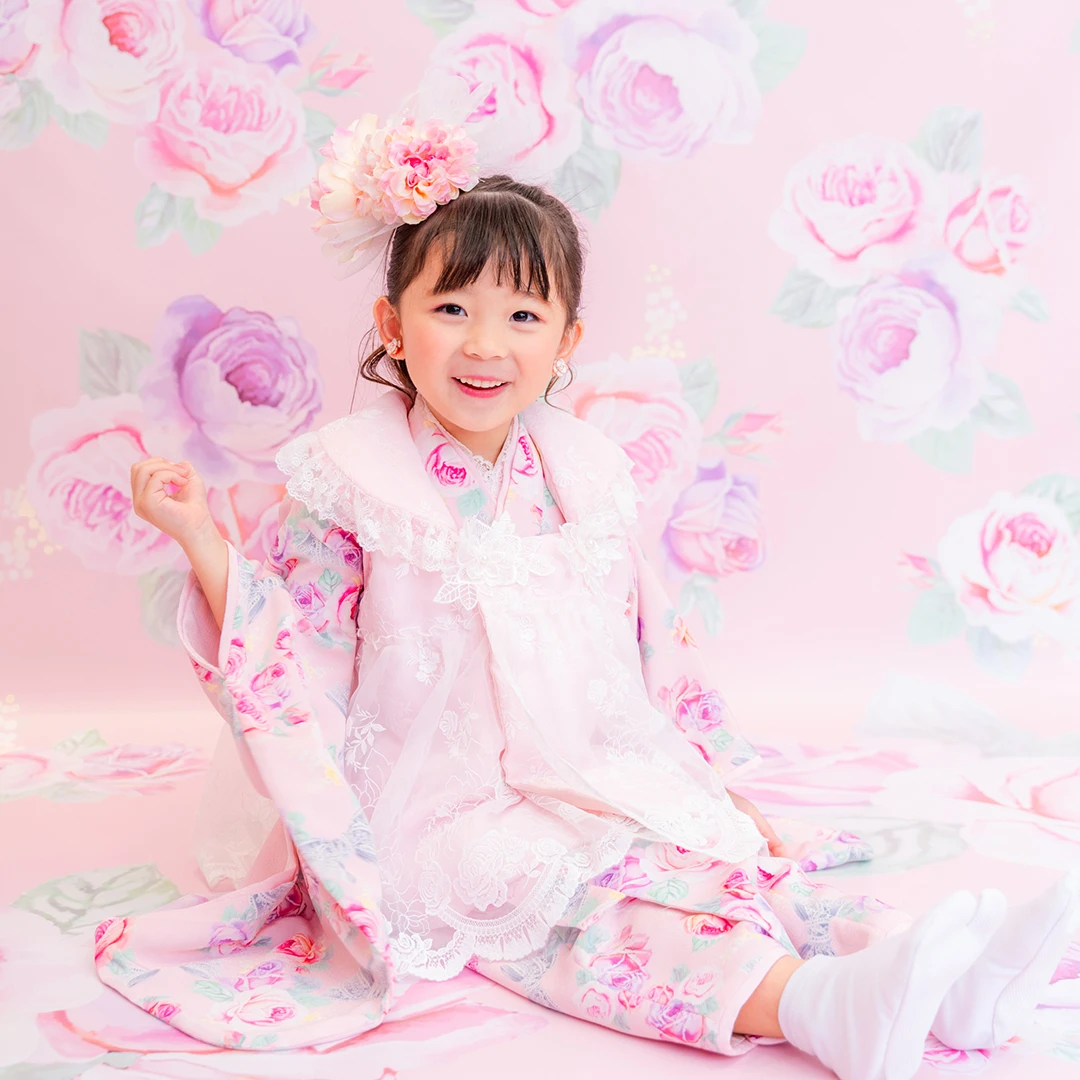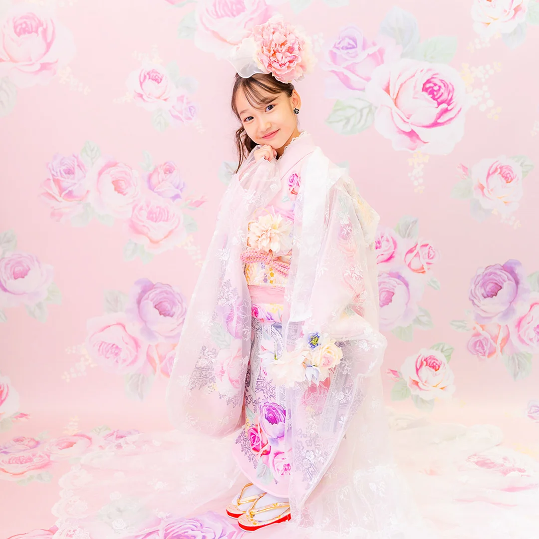 7歳の装いは、メゾ ピアノを象徴する花「薔薇」を