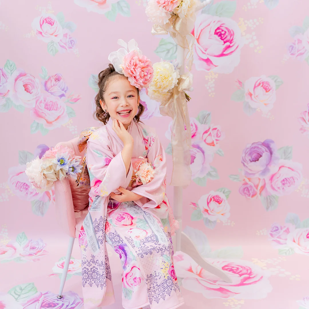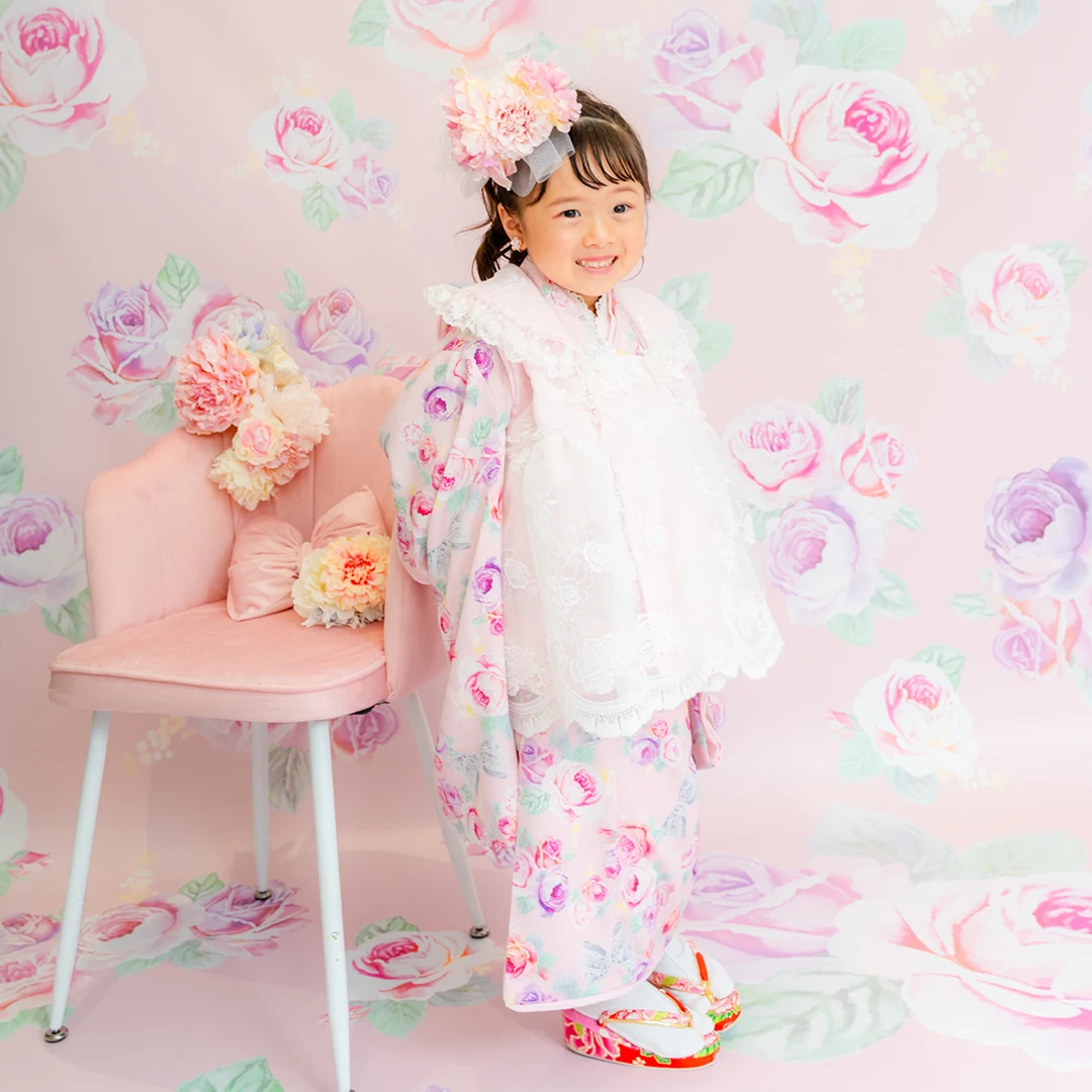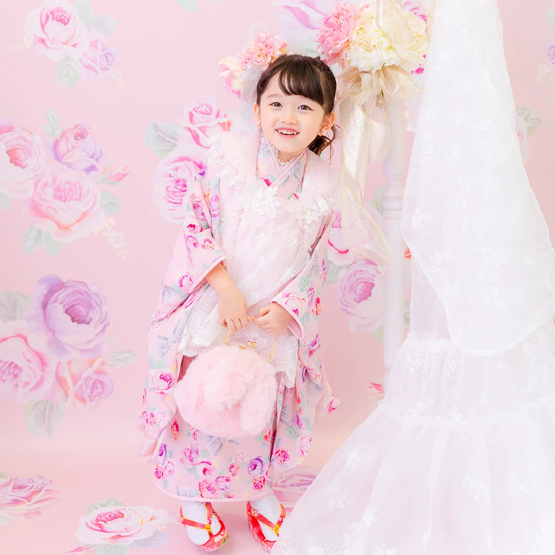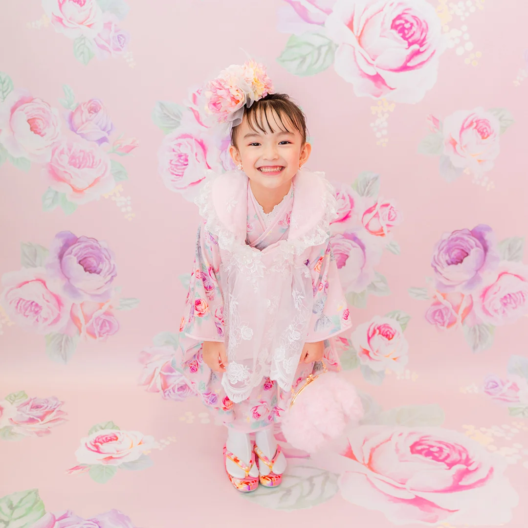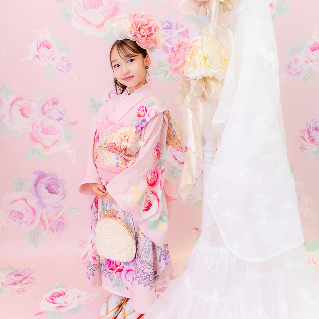 7歳の装いは、メゾ ピアノを象徴する花「薔薇」を