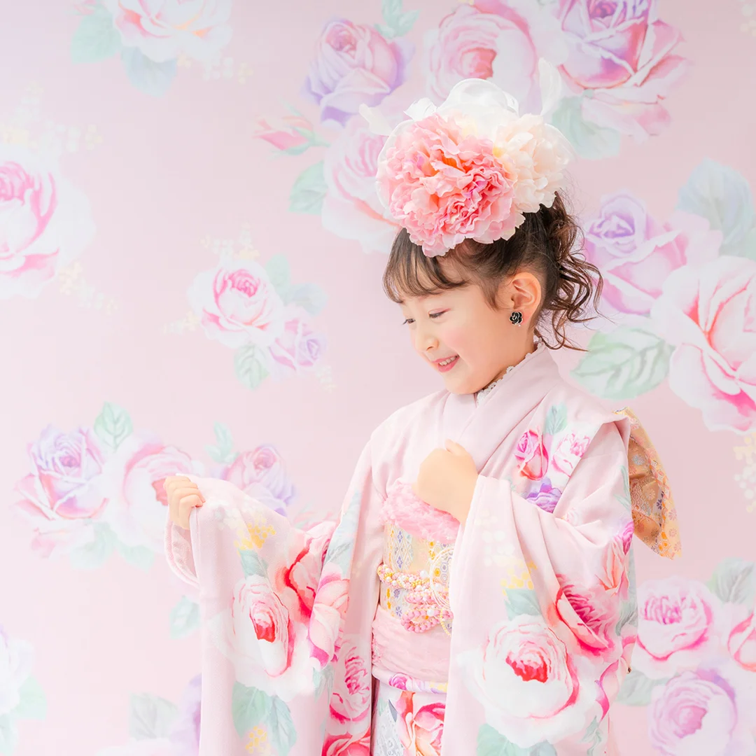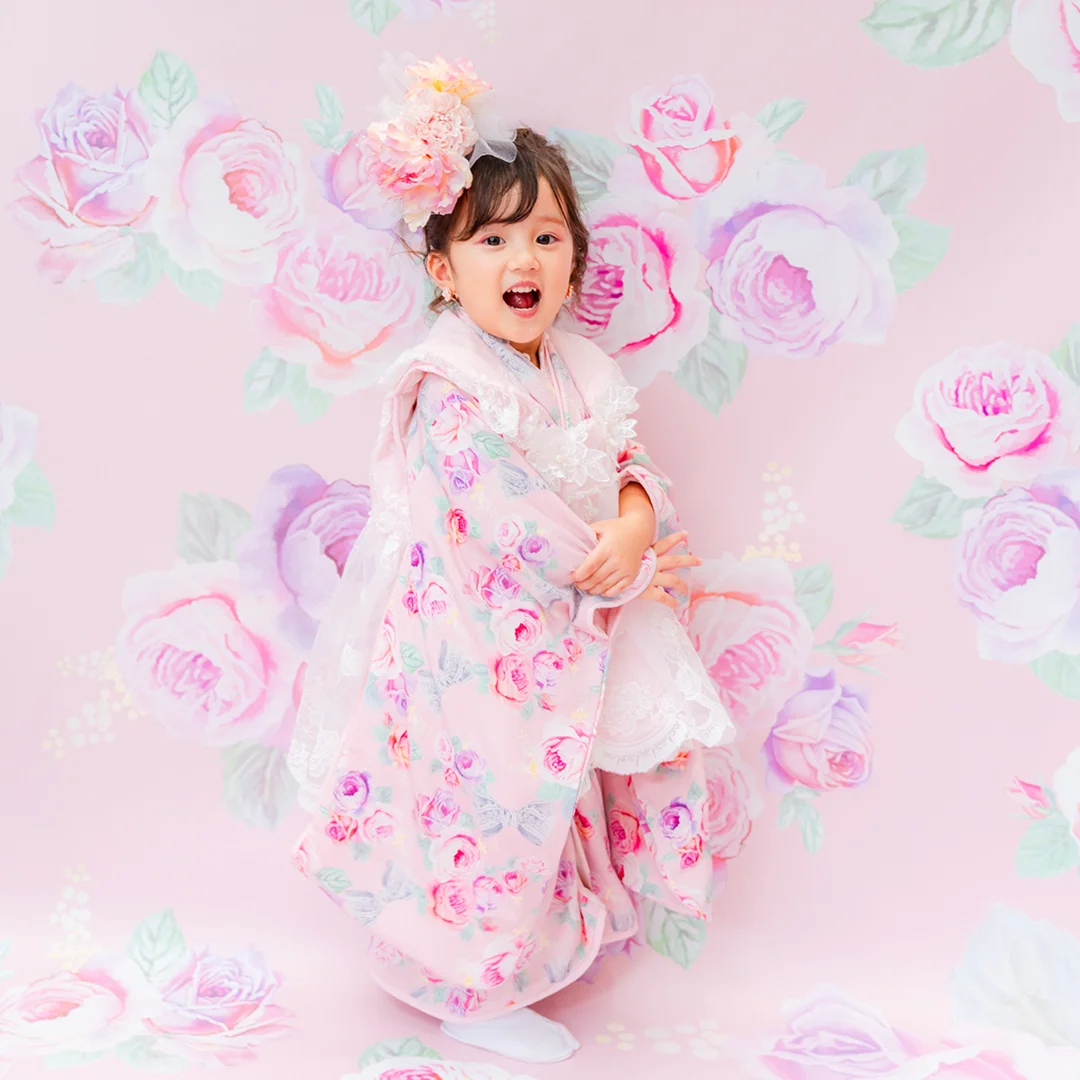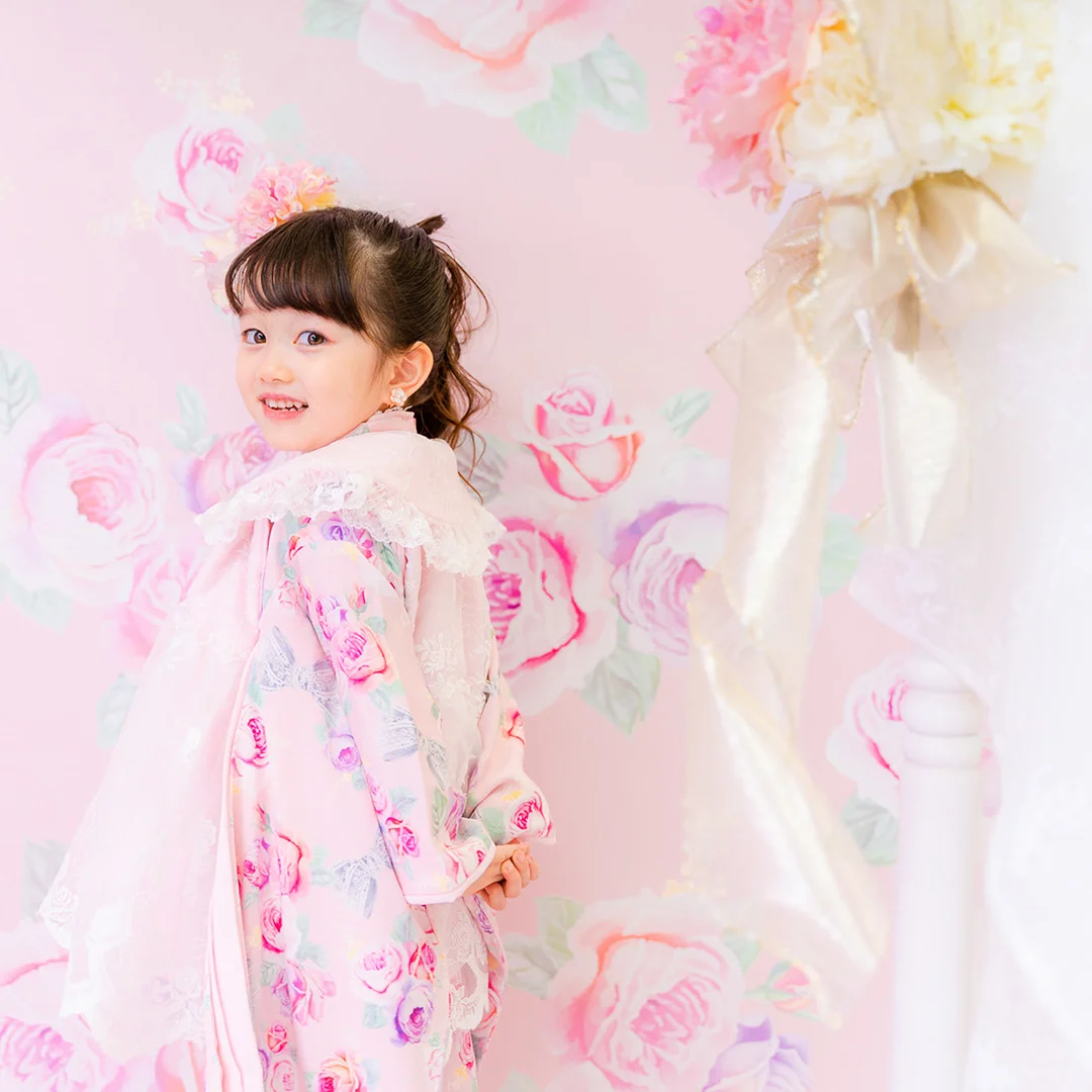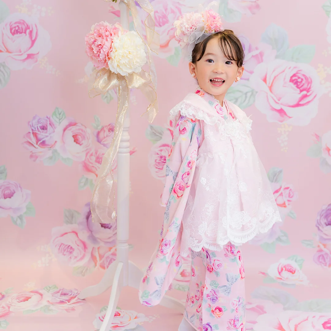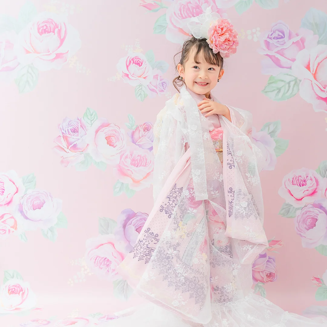 7歳の装いは、メゾ ピアノを象徴する花「薔薇」を