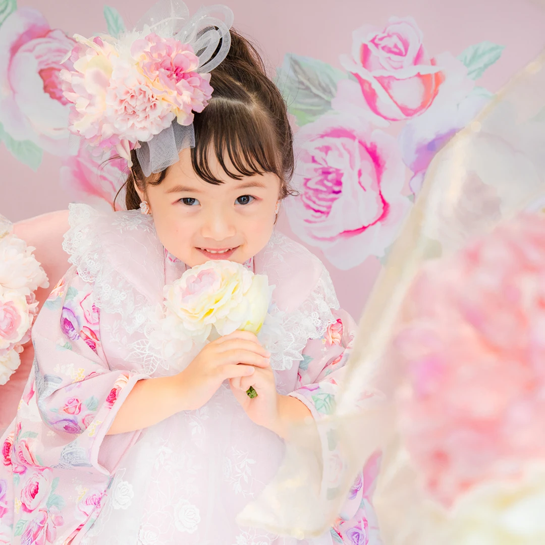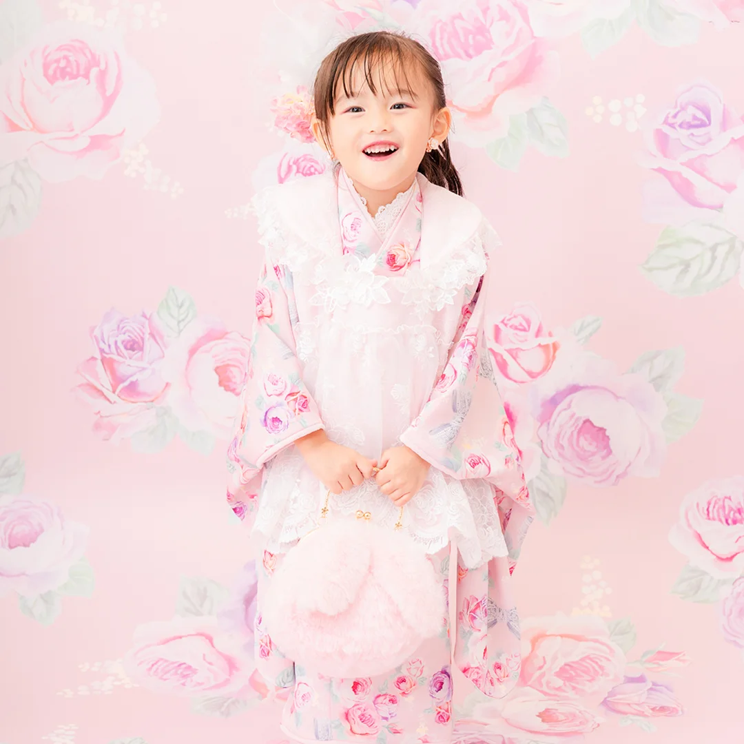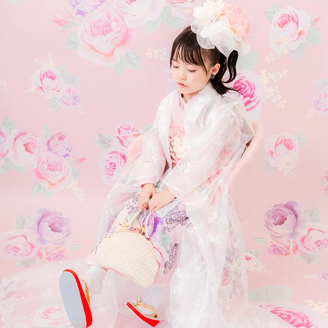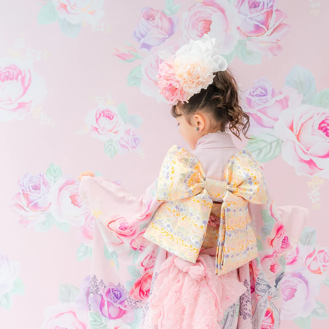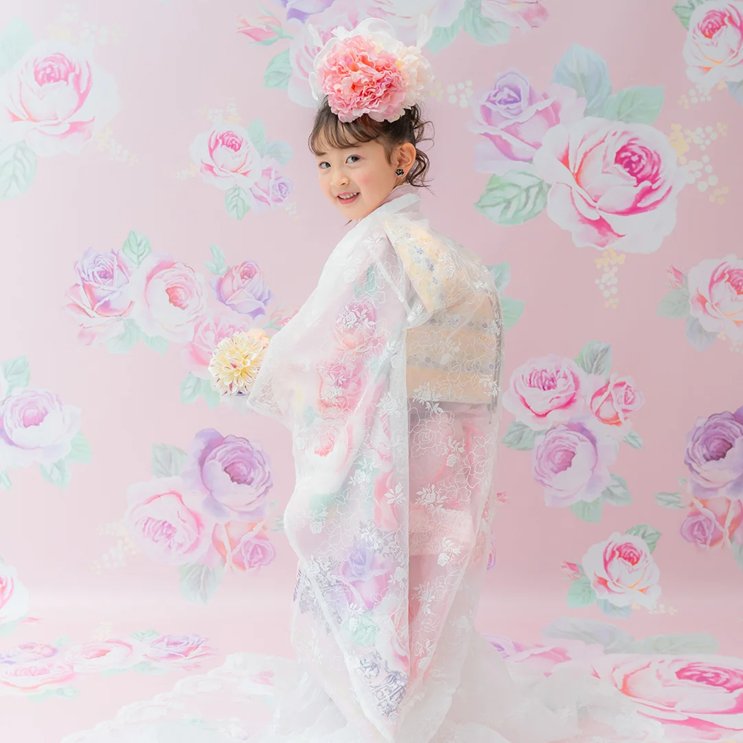 7歳の装いは、メゾ ピアノを象徴する花「薔薇」を