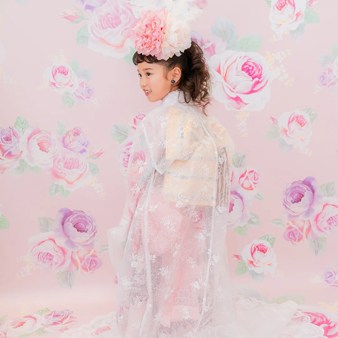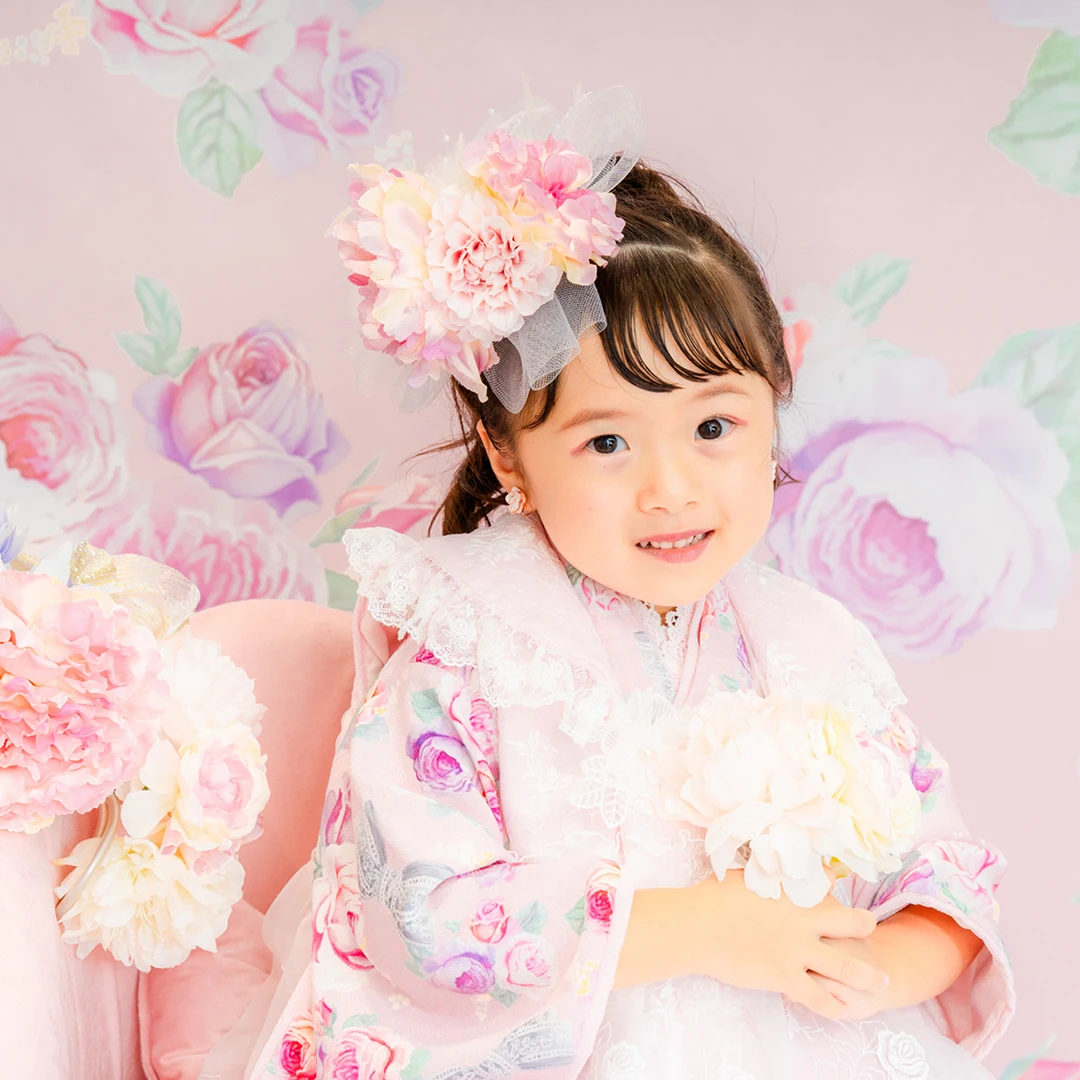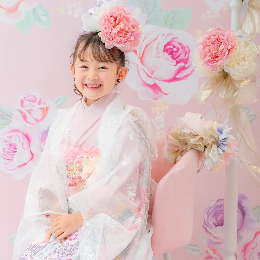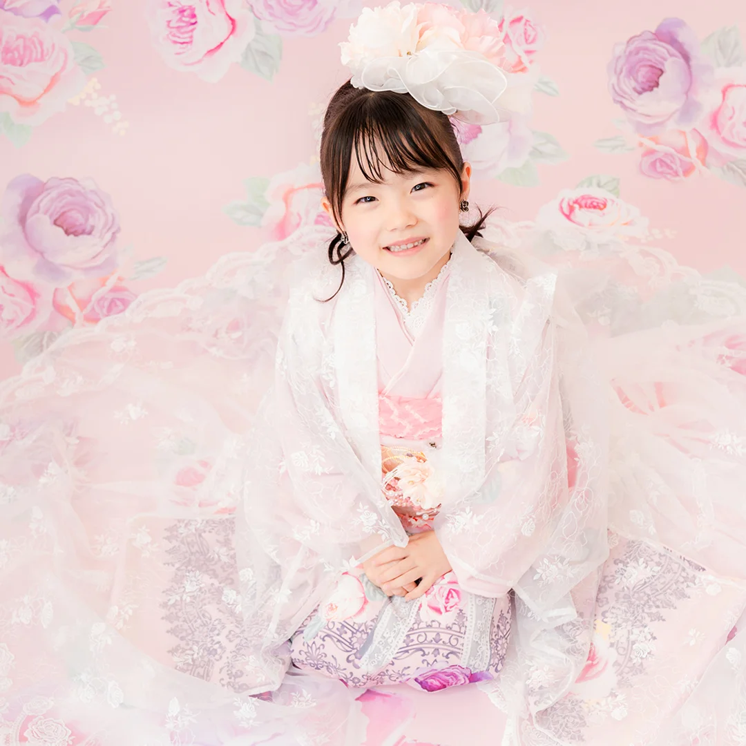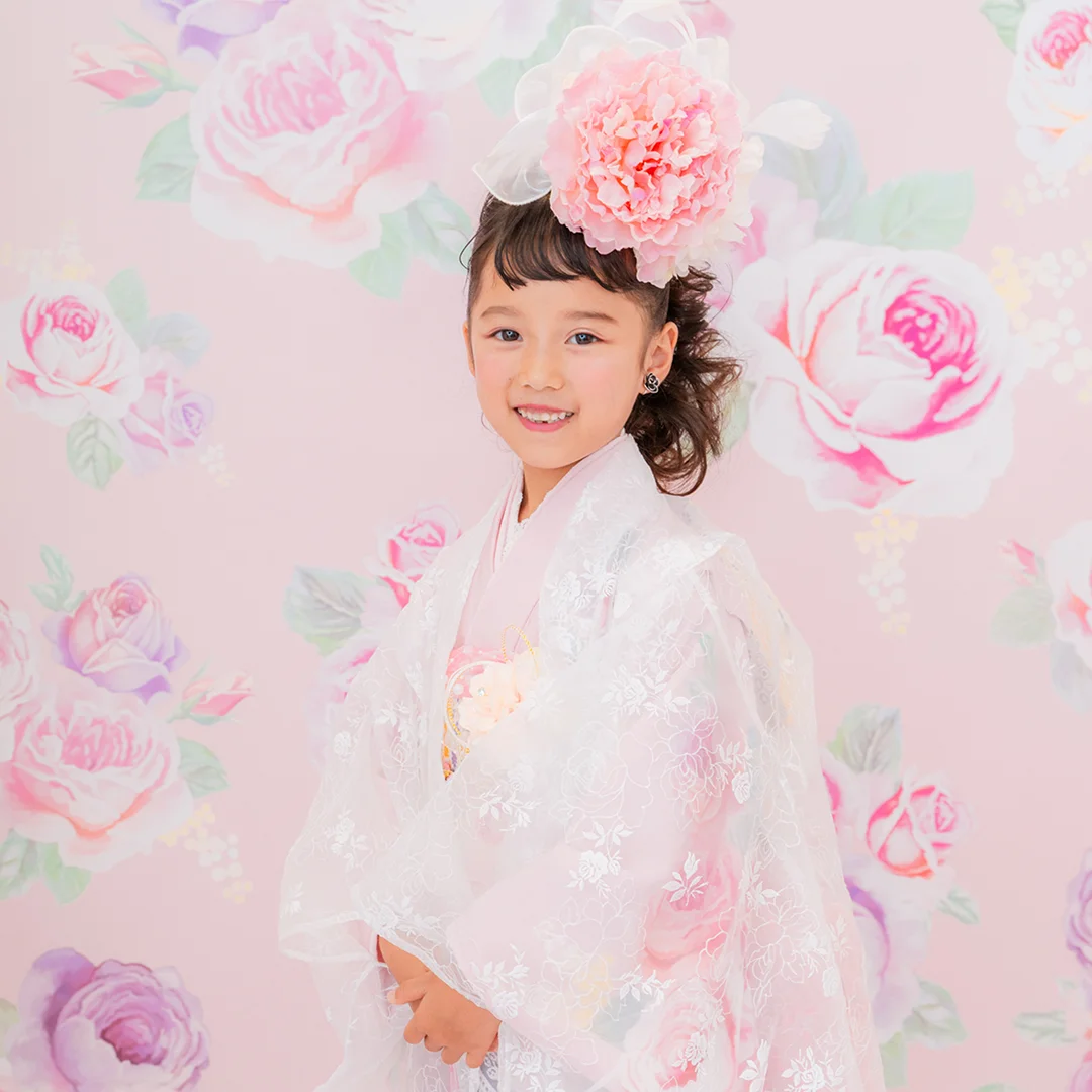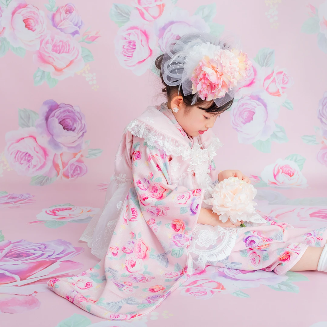 7歳の装いは、メゾ ピアノを象徴する花「薔薇」を