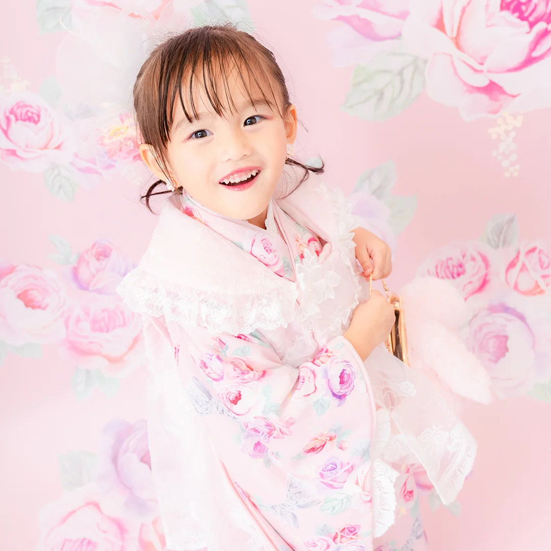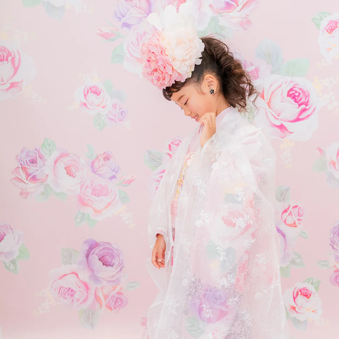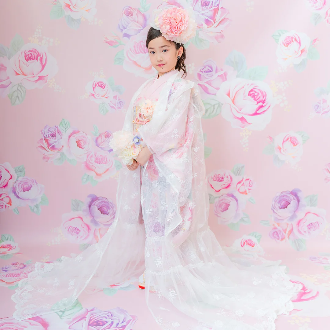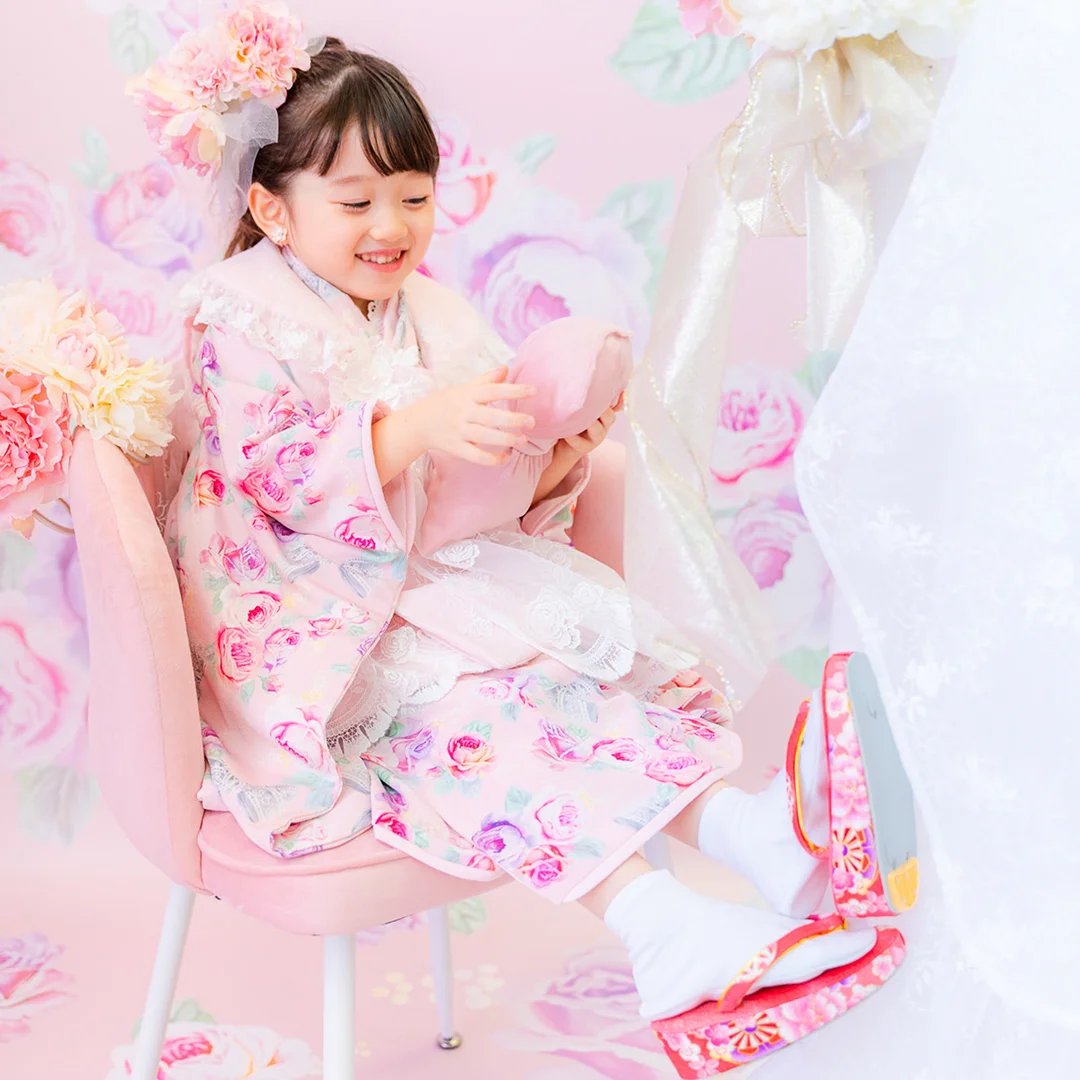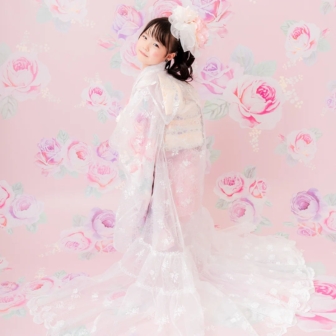 7歳の装いは、メゾ ピアノを象徴する花「薔薇」を