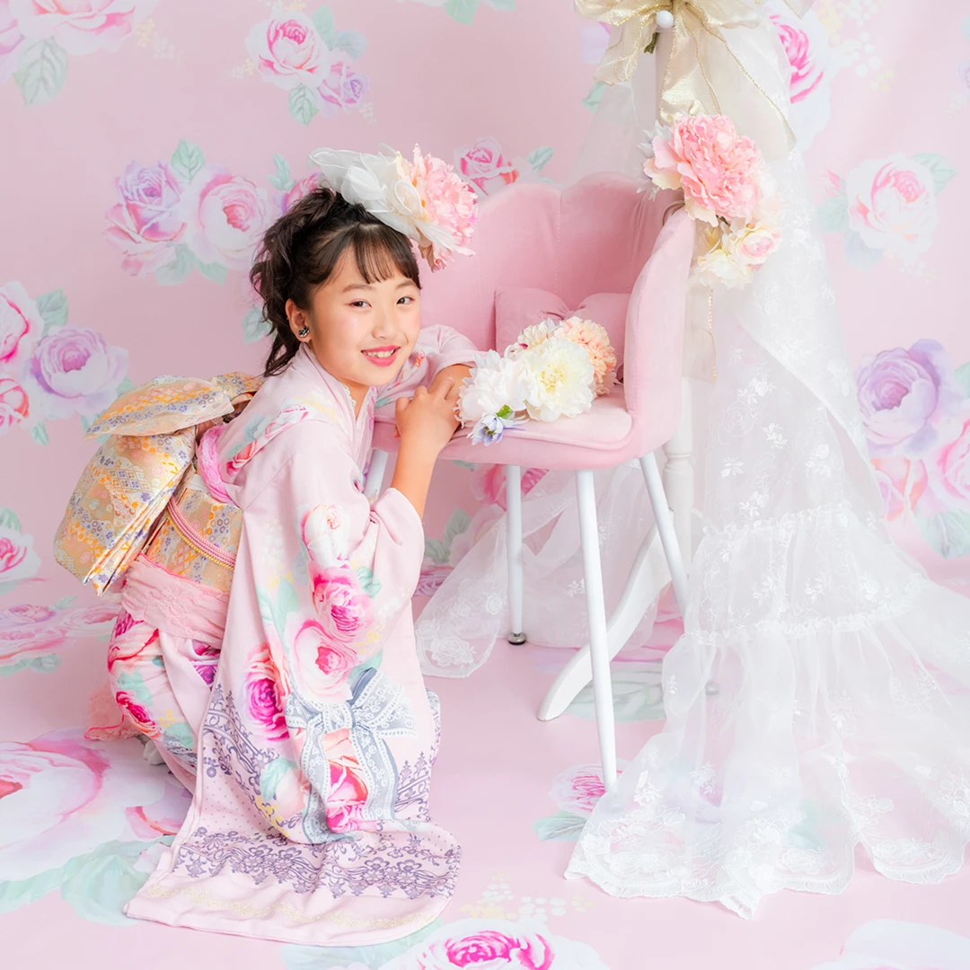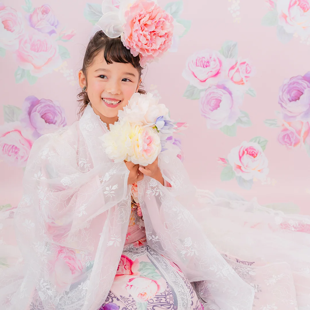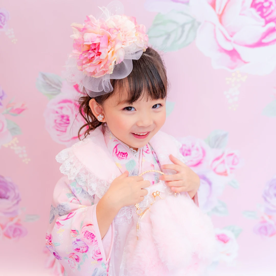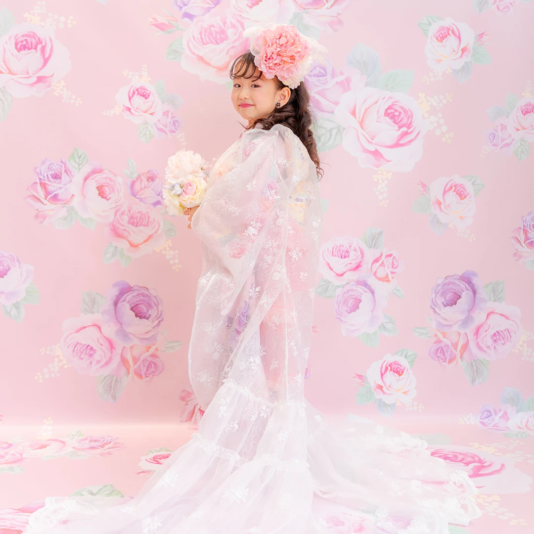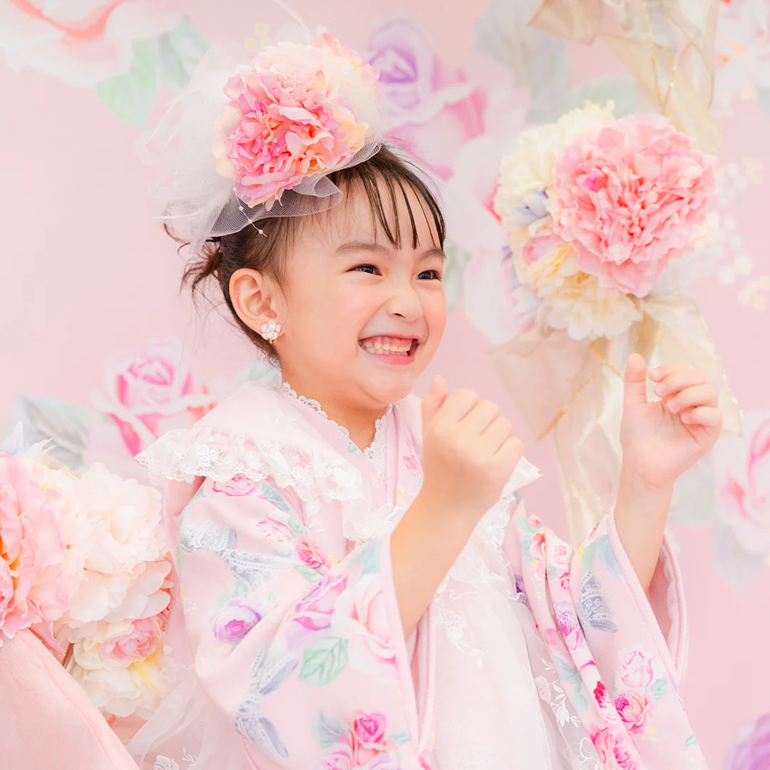 7歳の装いは、メゾ ピアノを象徴する花「薔薇」を