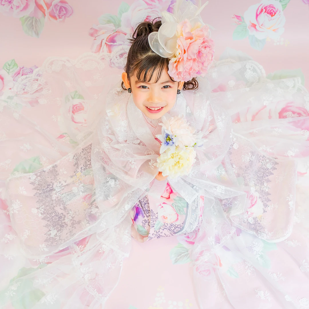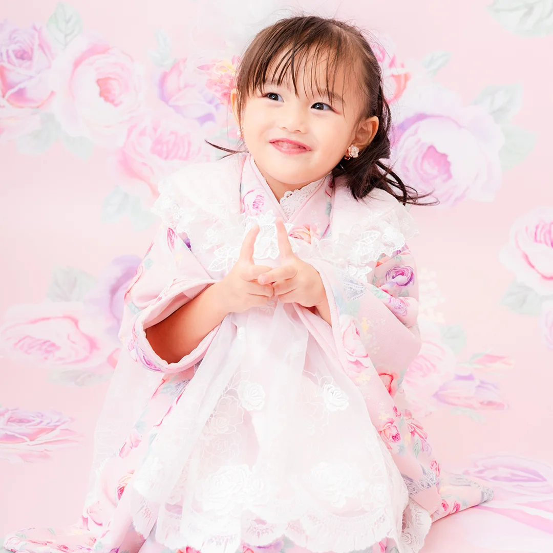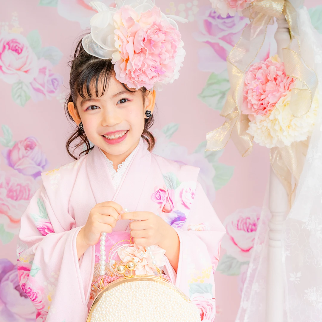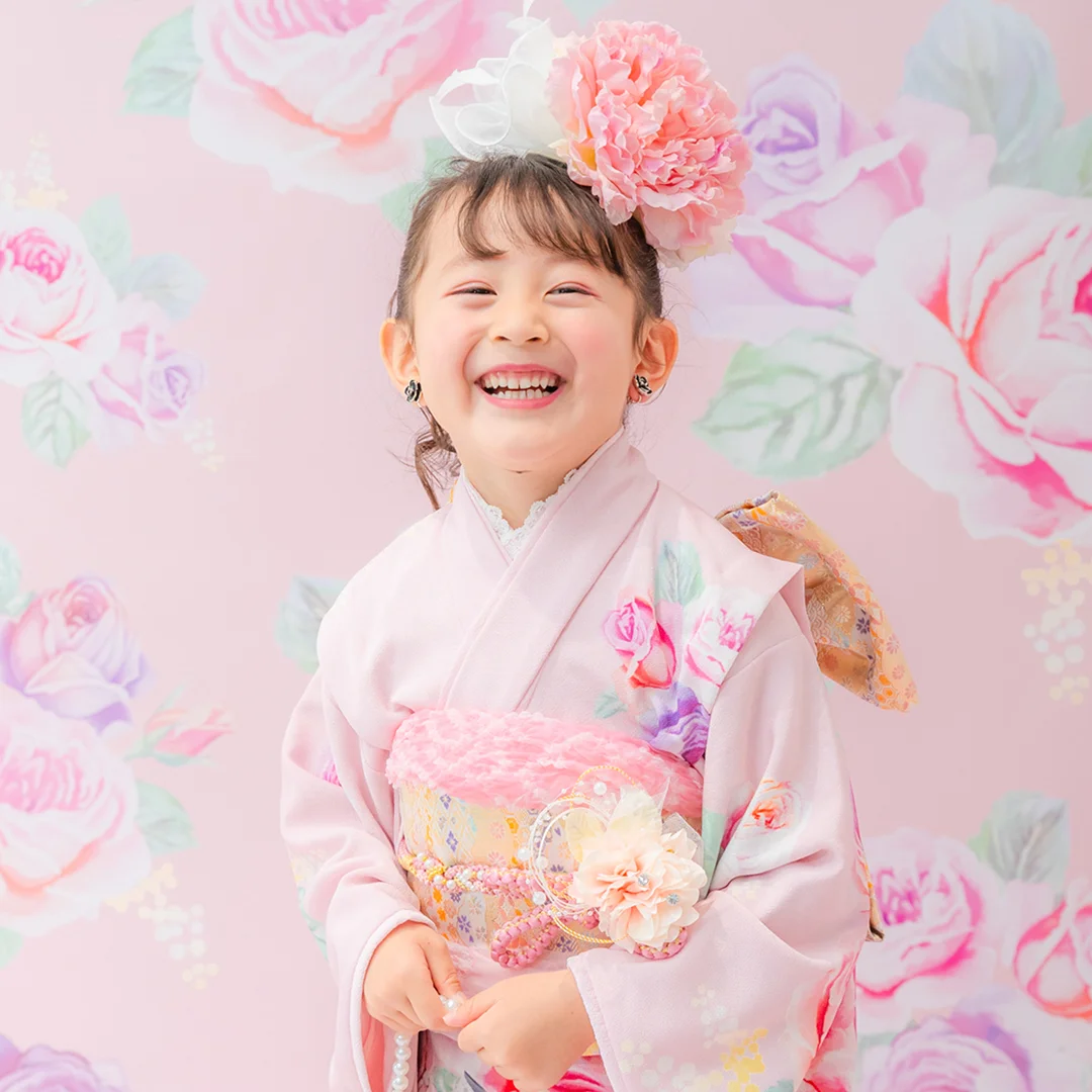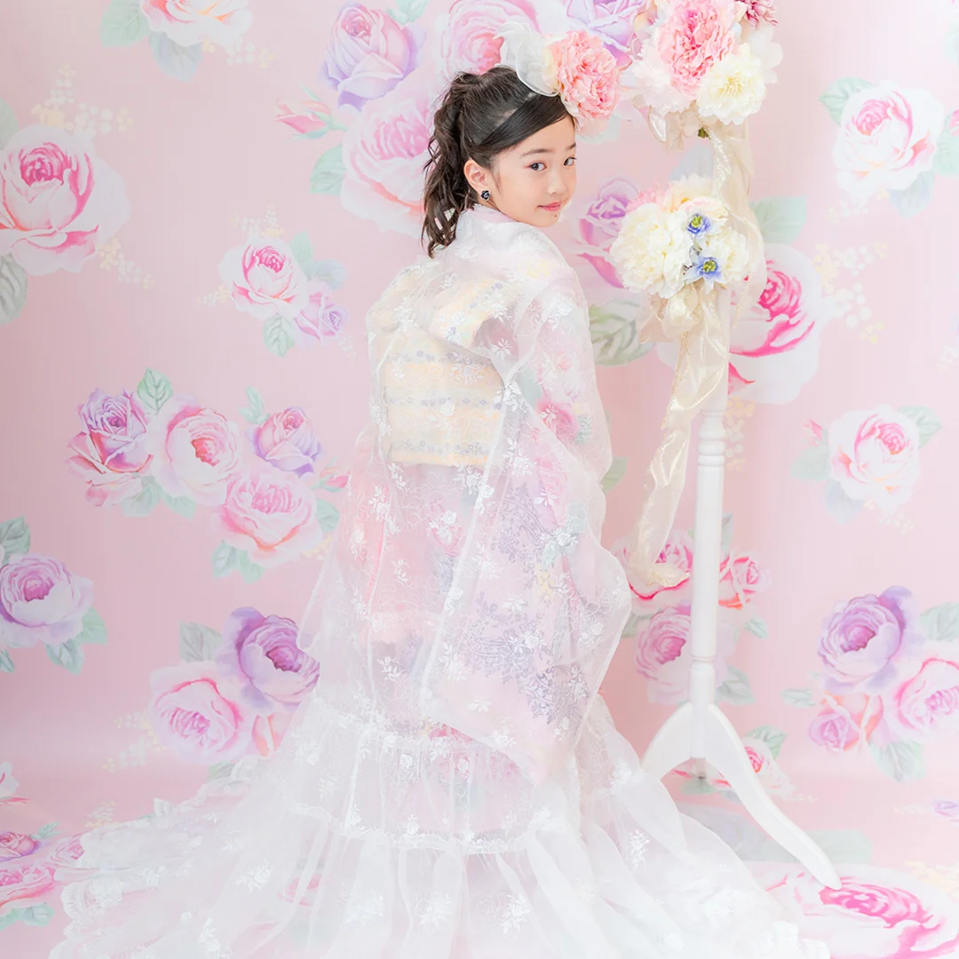 7歳の装いは、メゾ ピアノを象徴する花「薔薇」を
