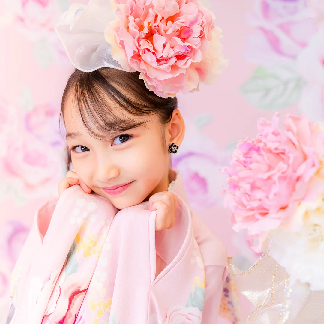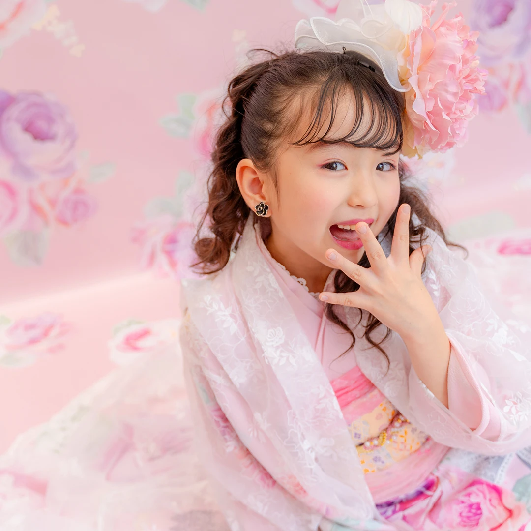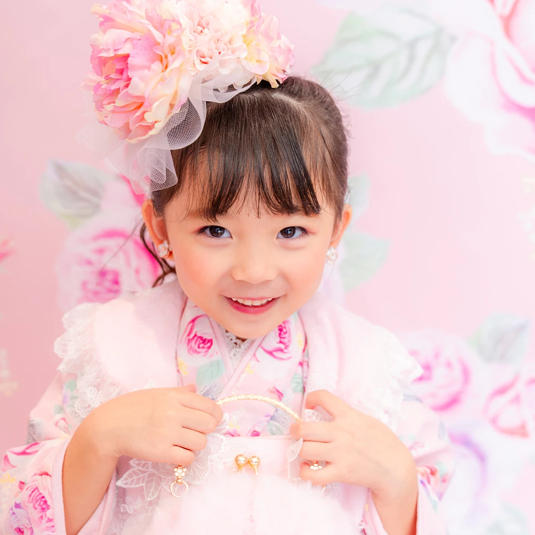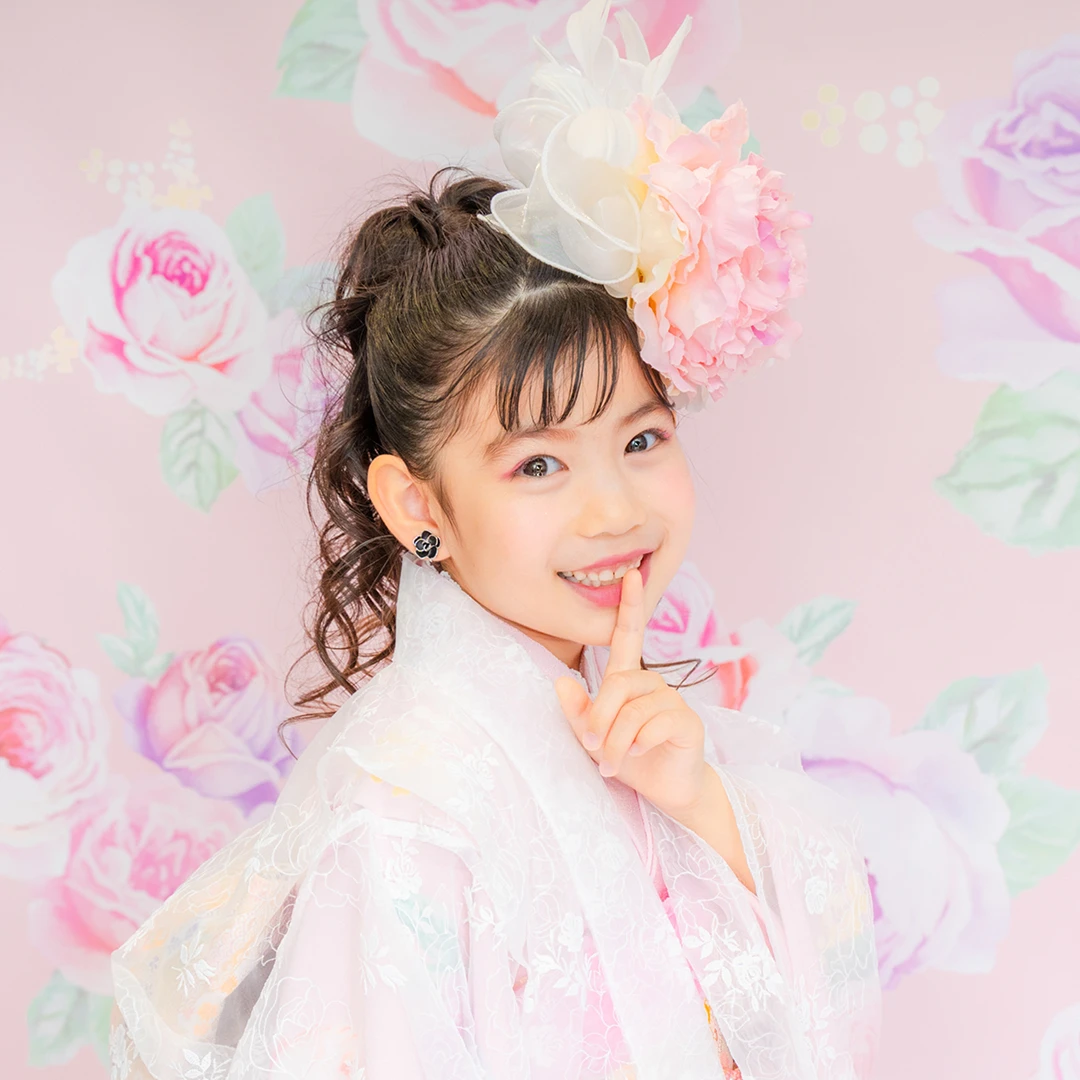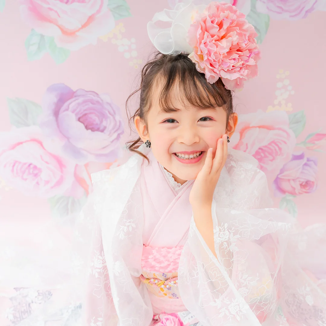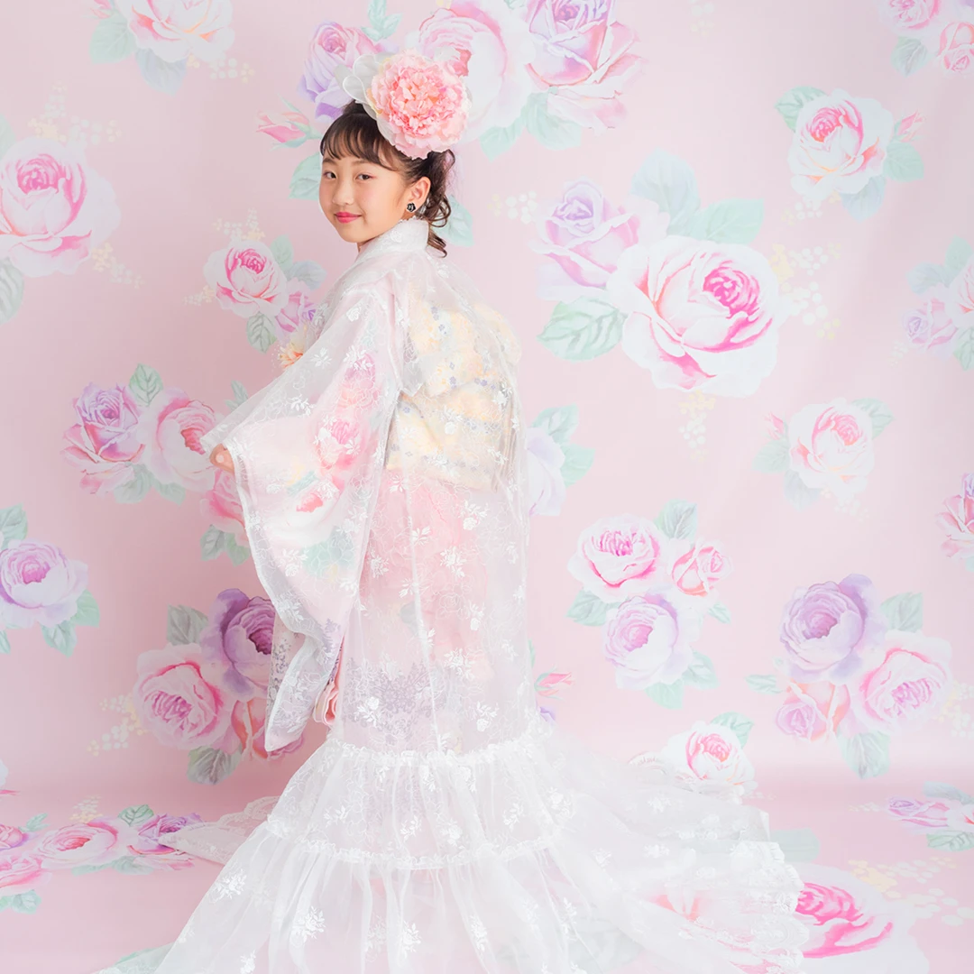7歳の装いは、メゾ ピアノを象徴する花「薔薇」を