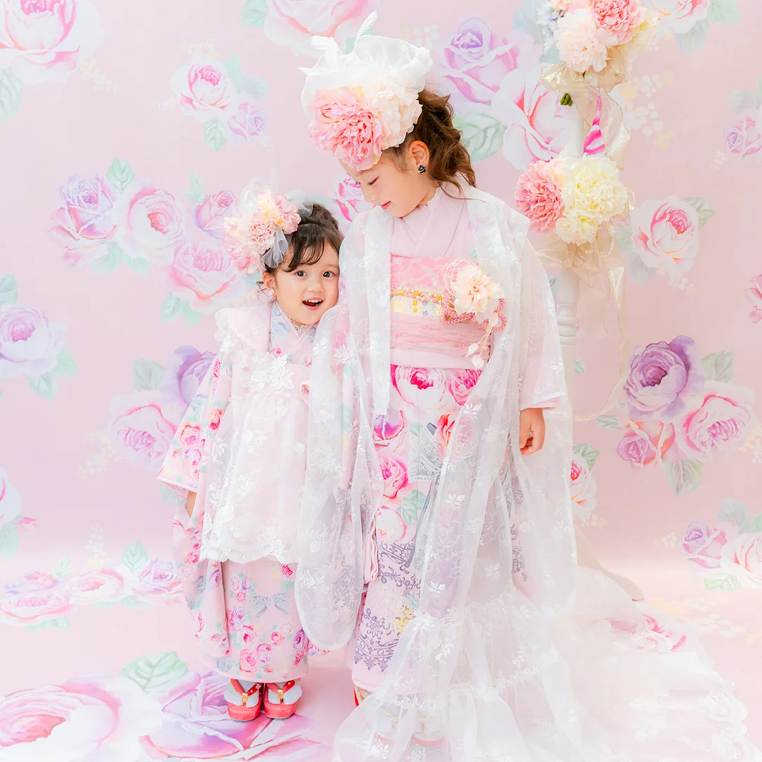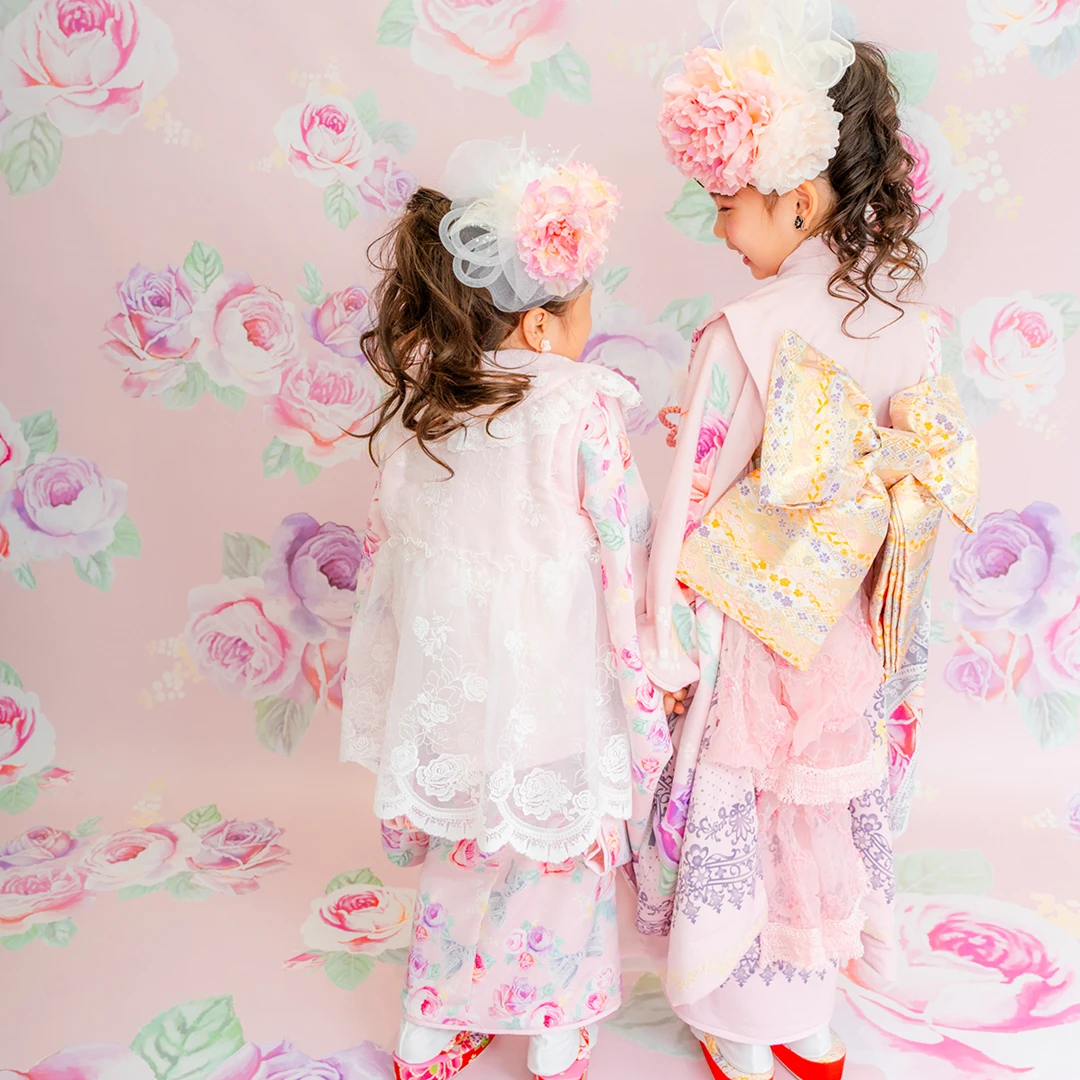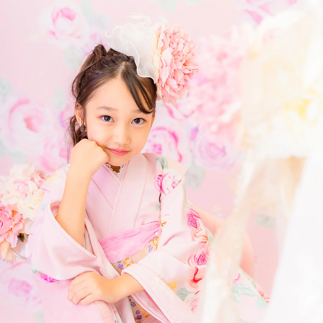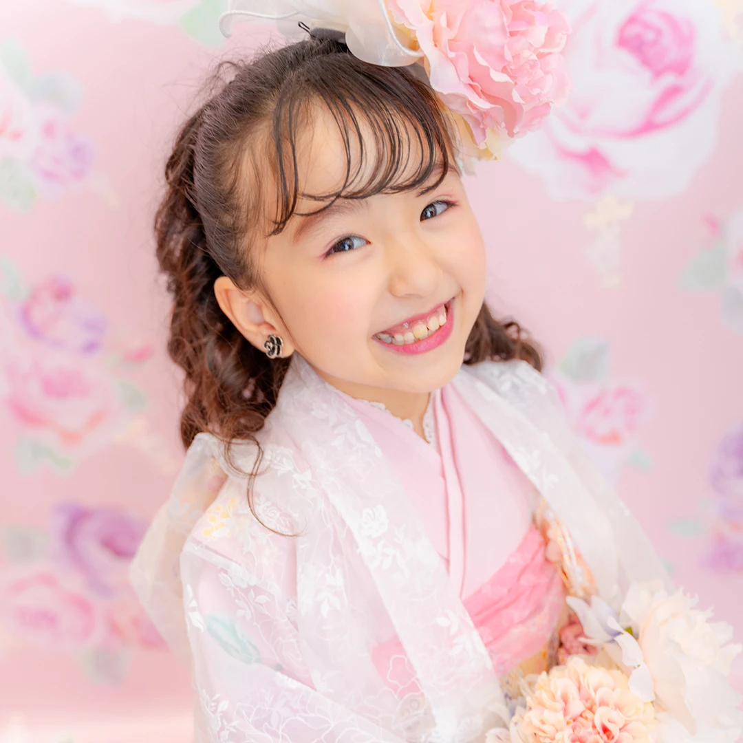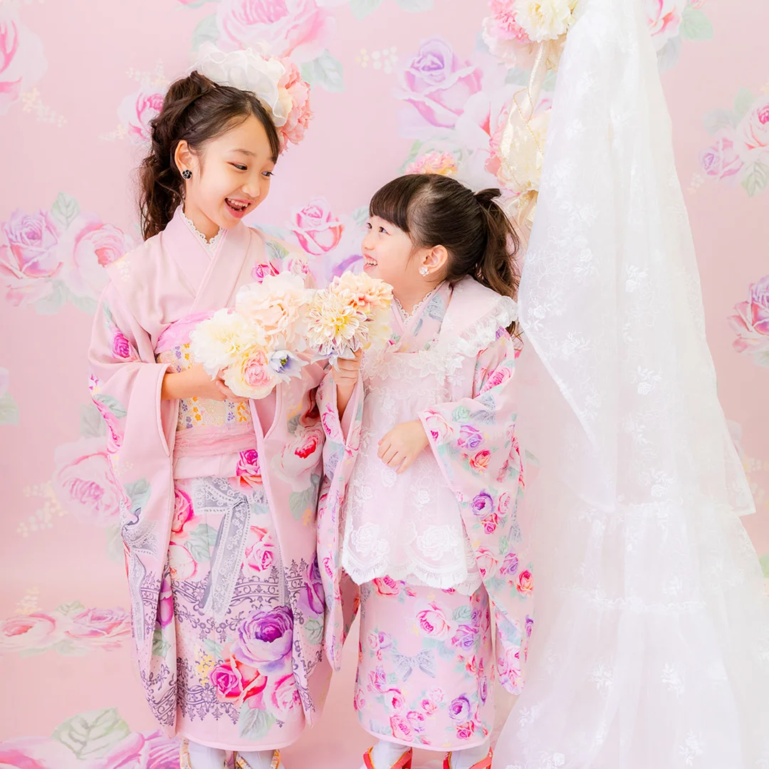 7歳の装いは、メゾ ピアノを象徴する花「薔薇」を
