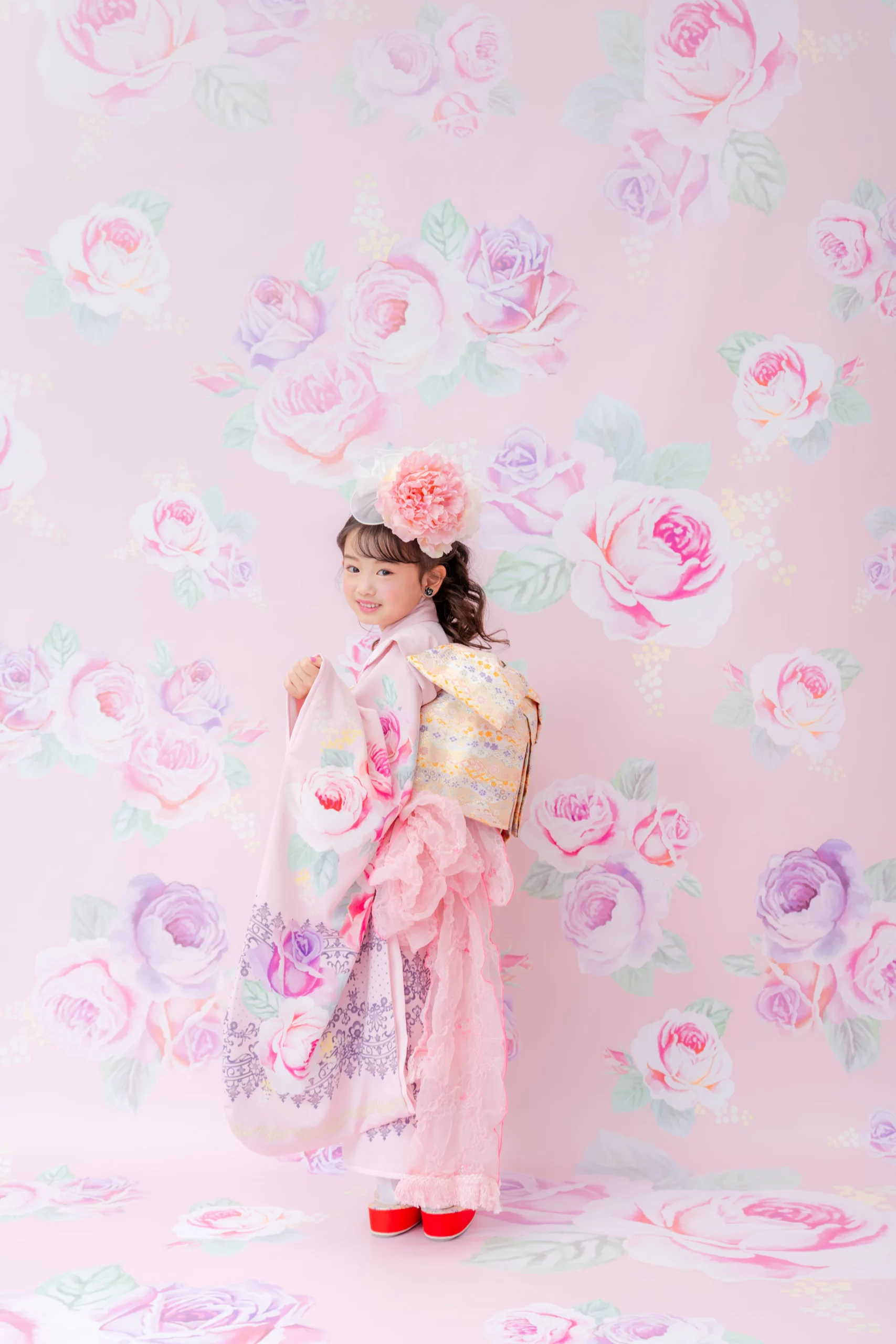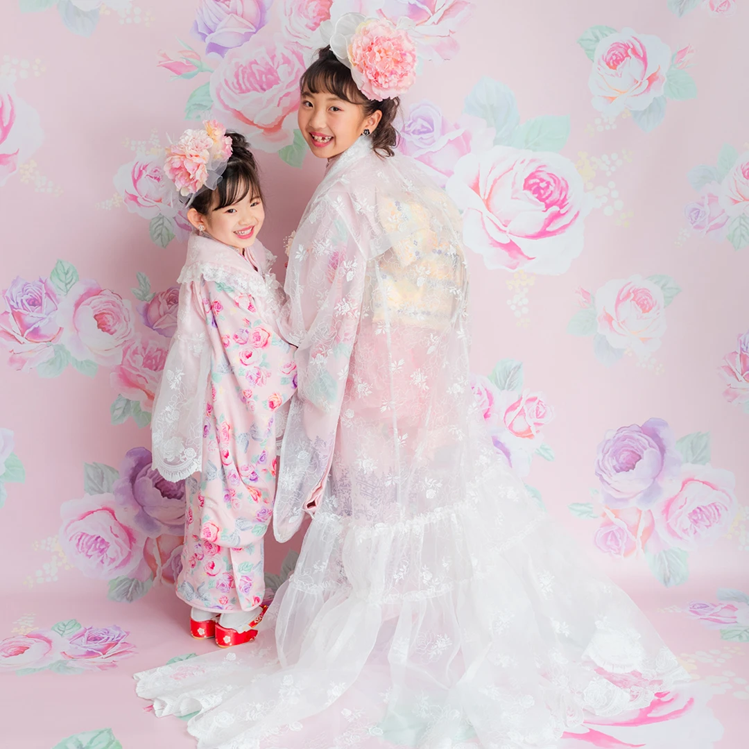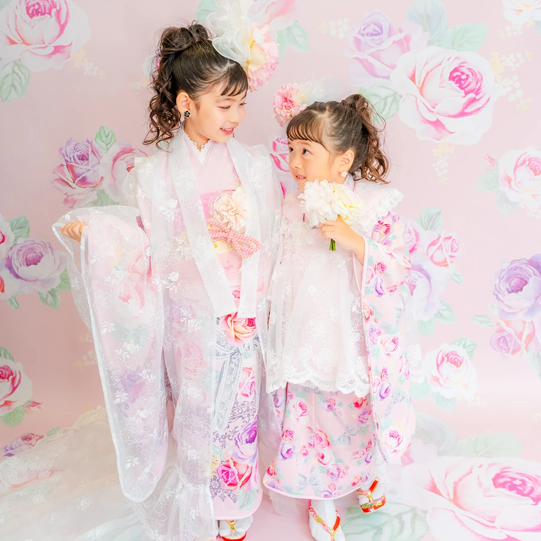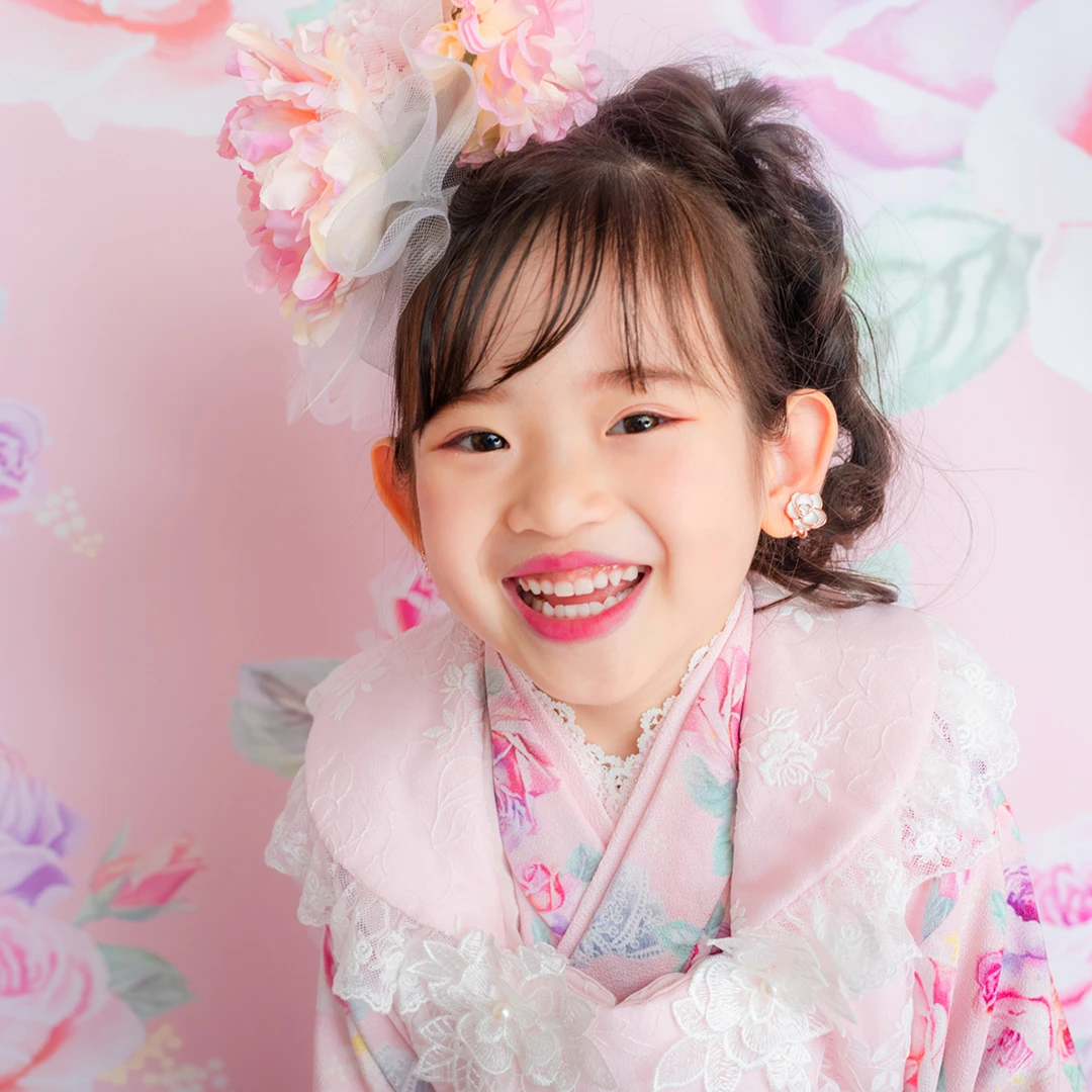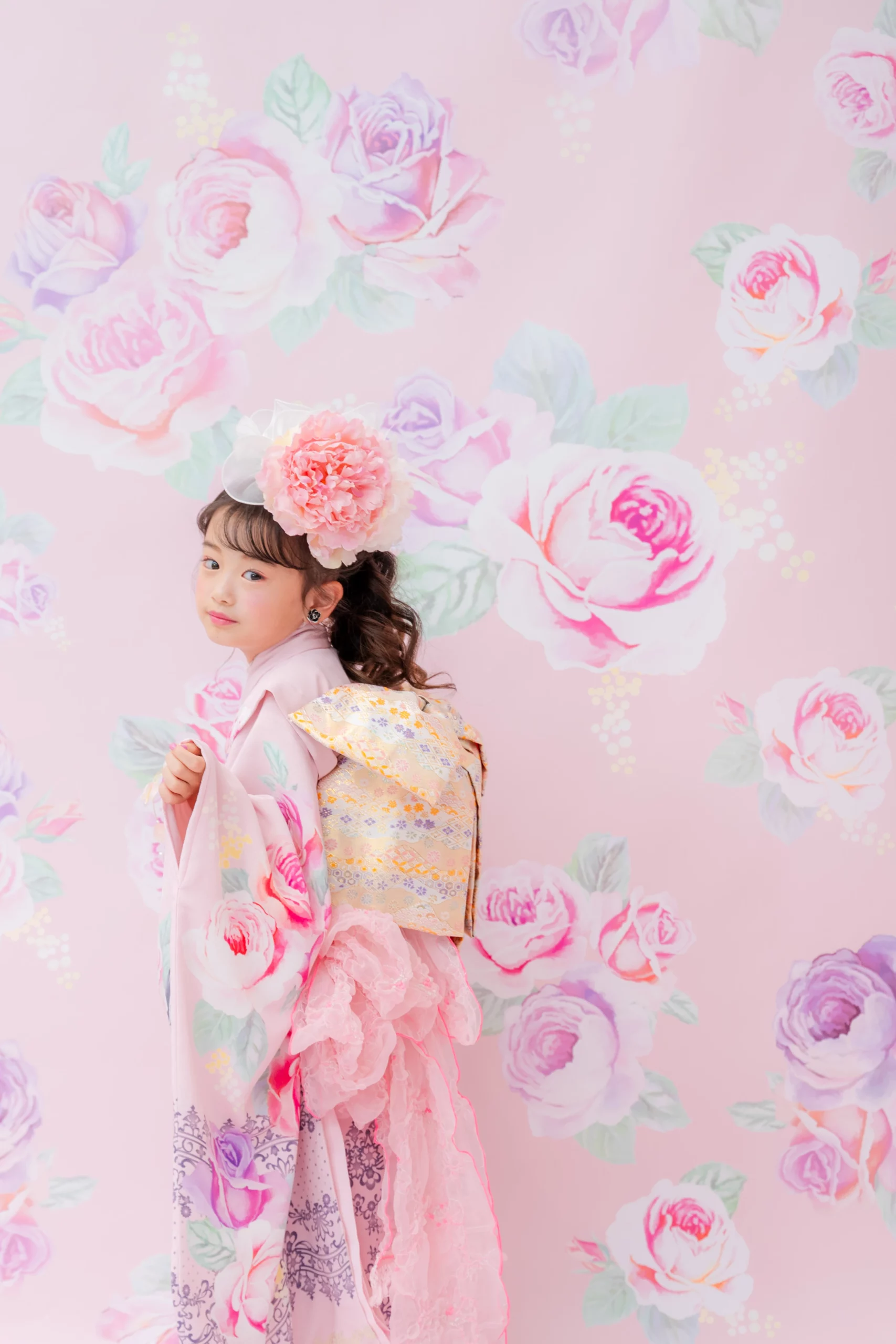 7歳の装いは、メゾ ピアノを象徴する花「薔薇」を