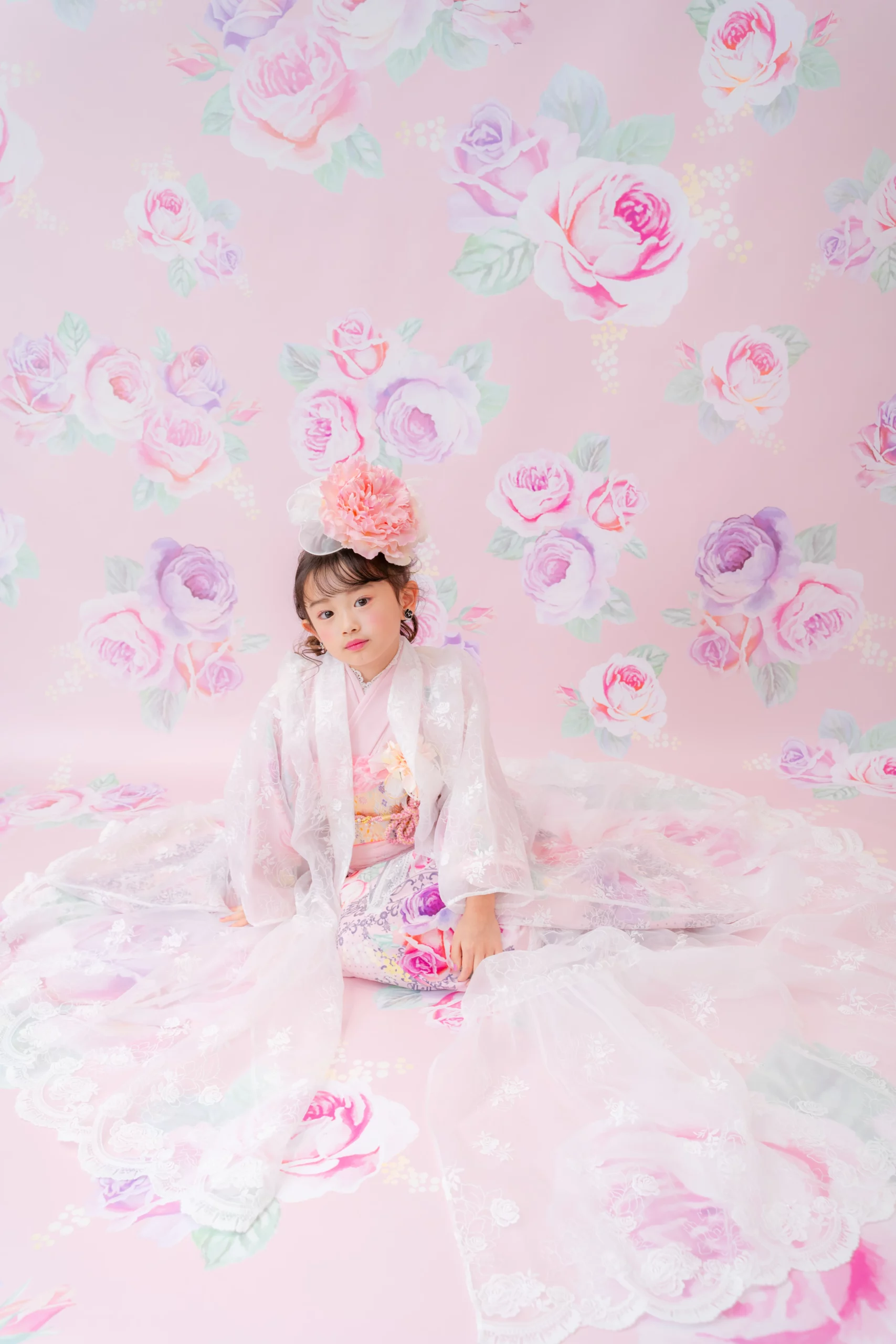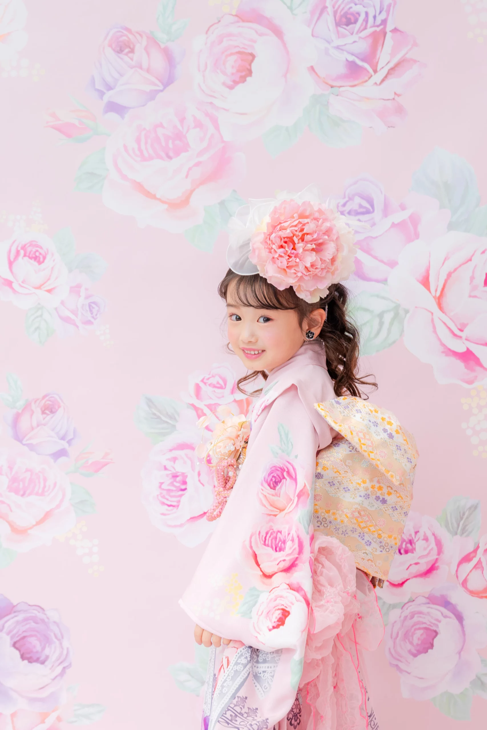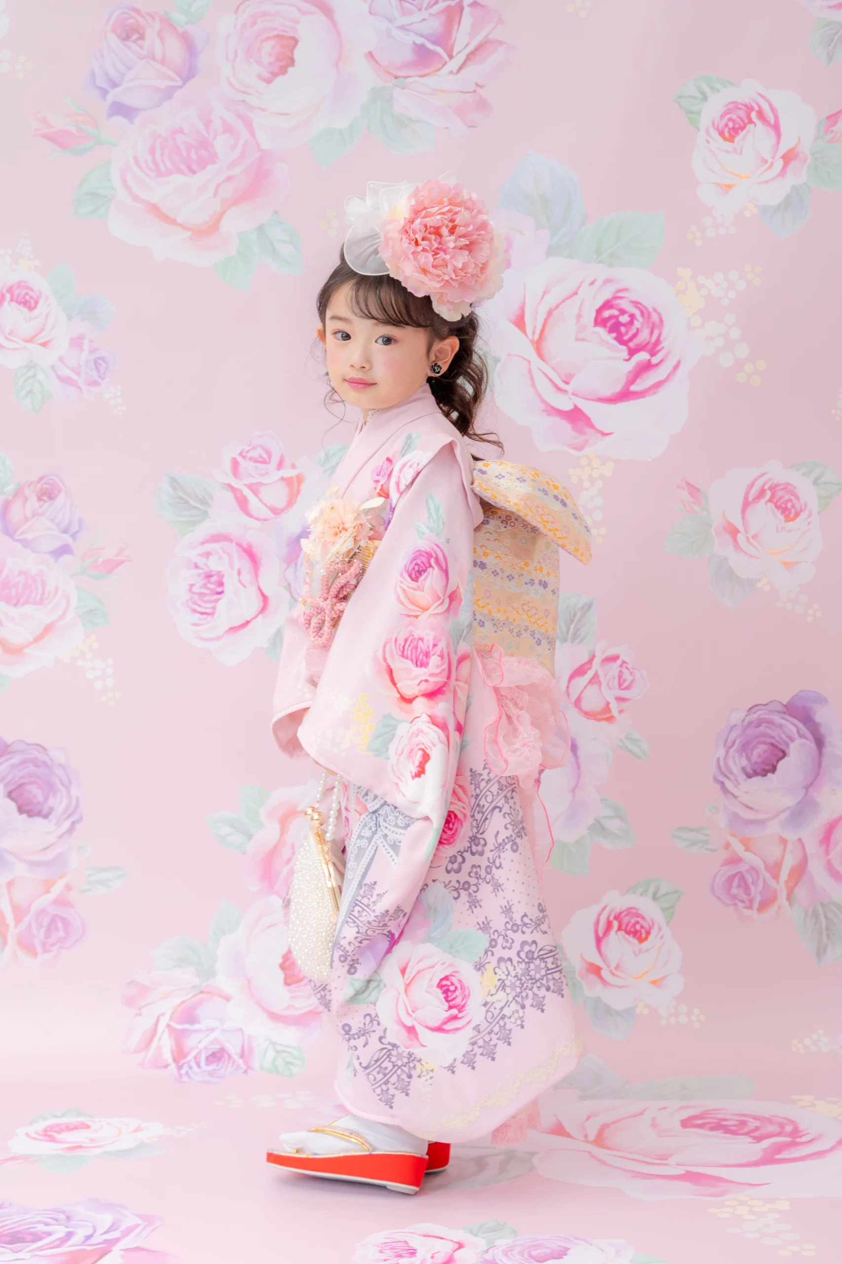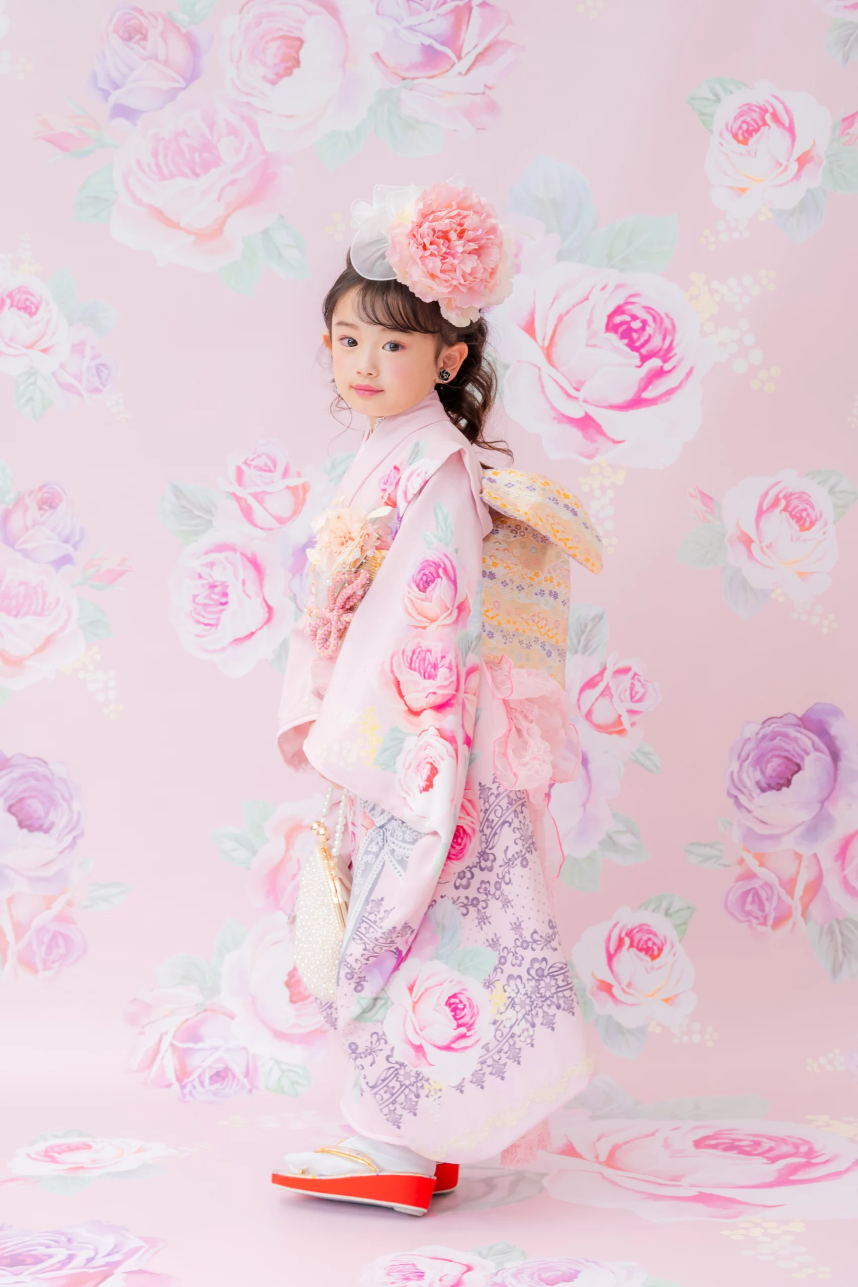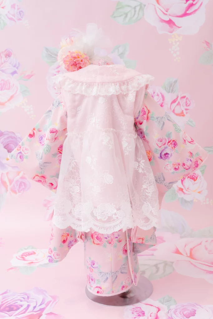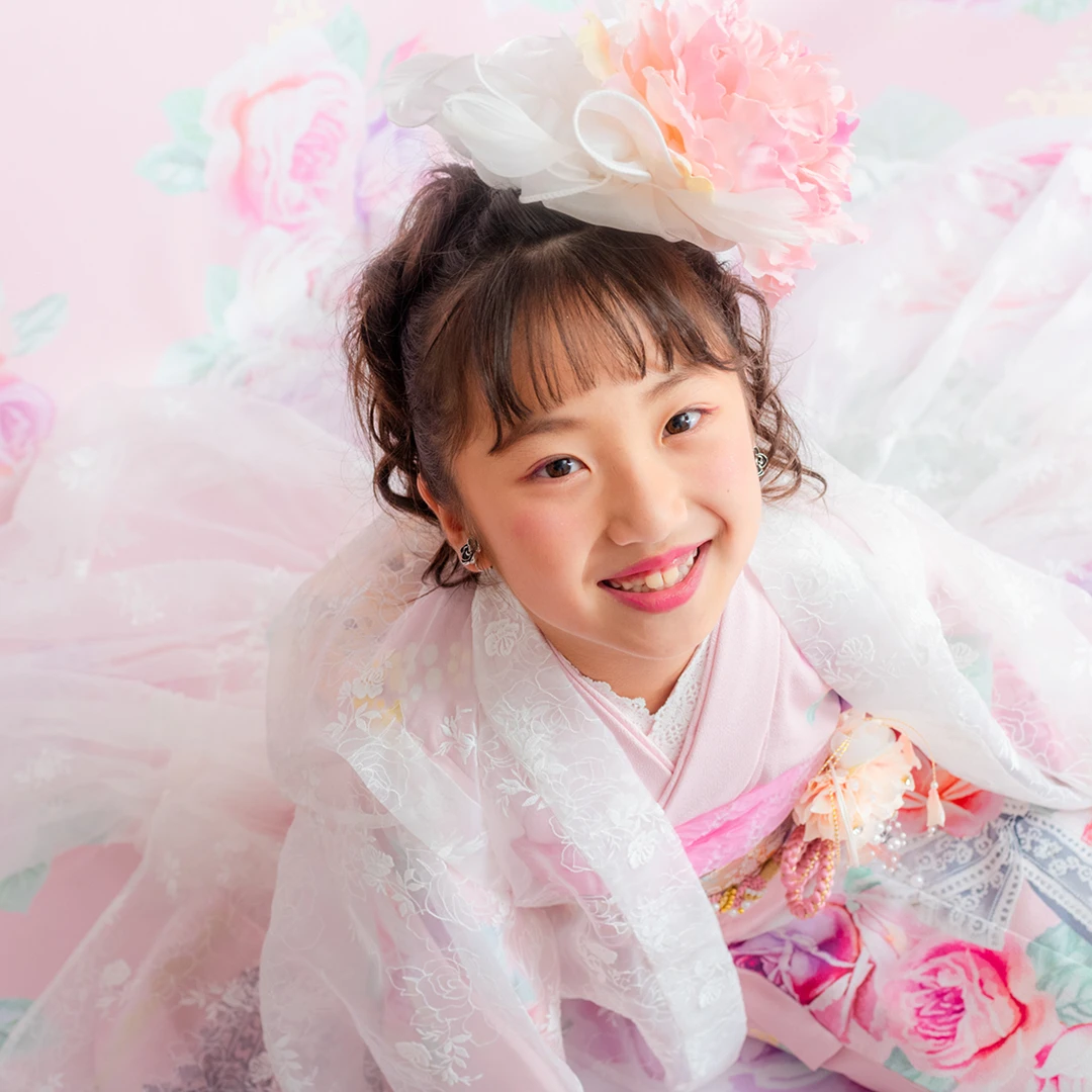 7歳の装いは、メゾ ピアノを象徴する花「薔薇」を