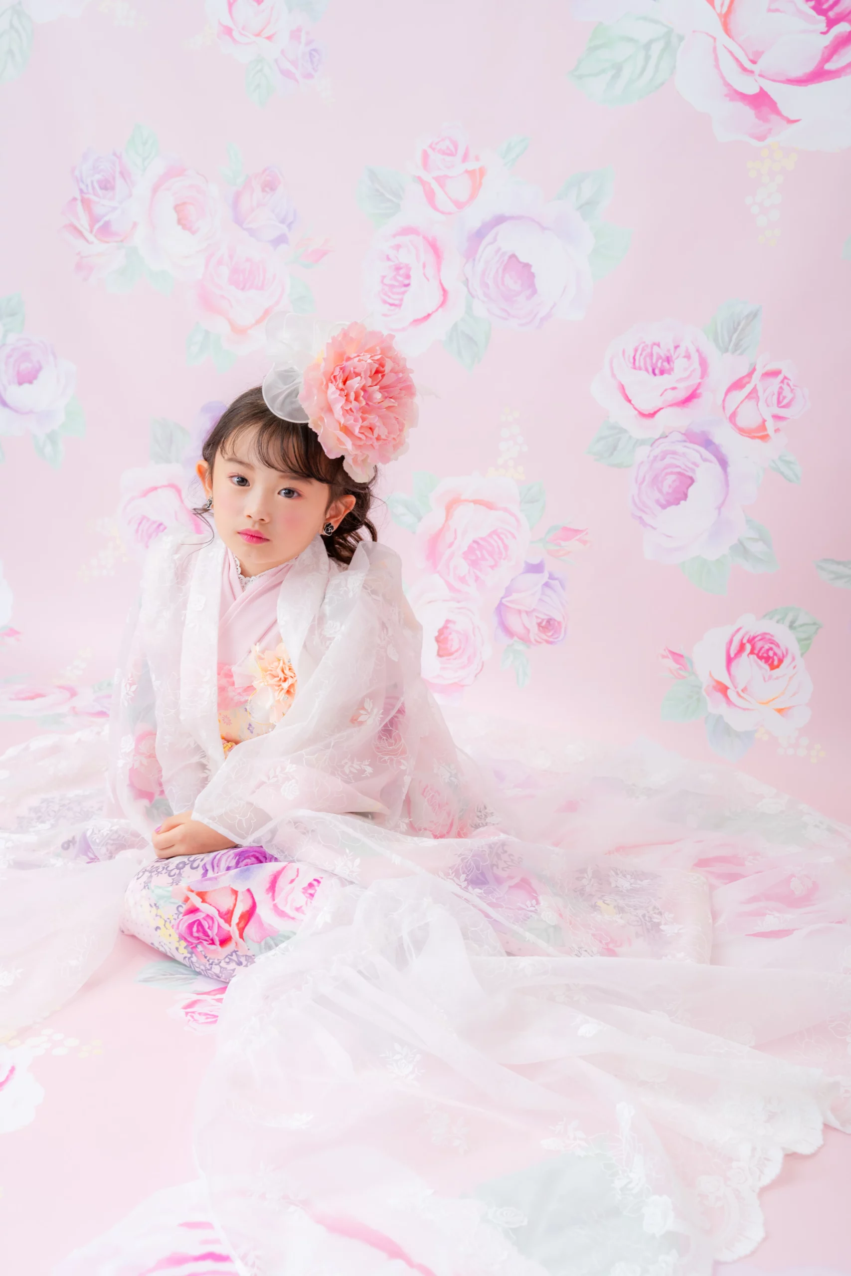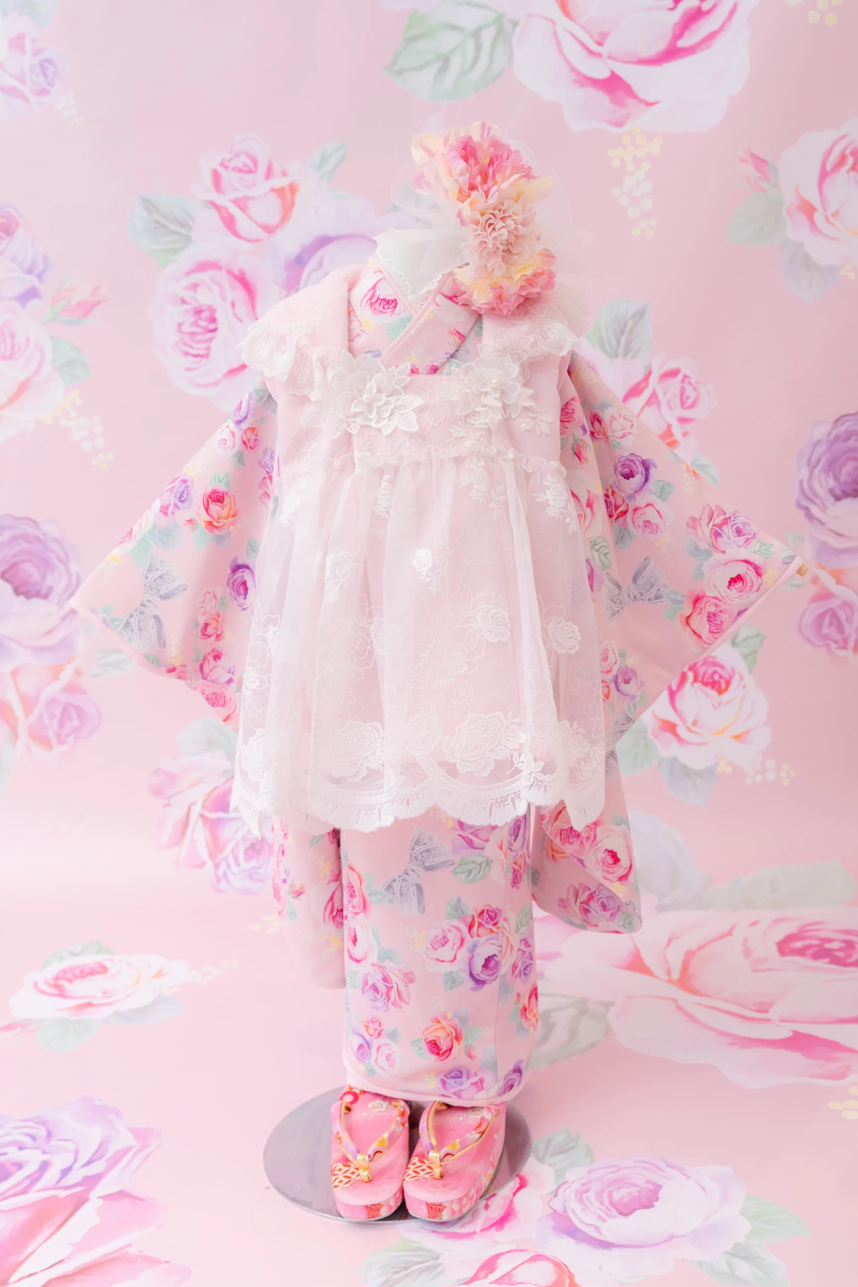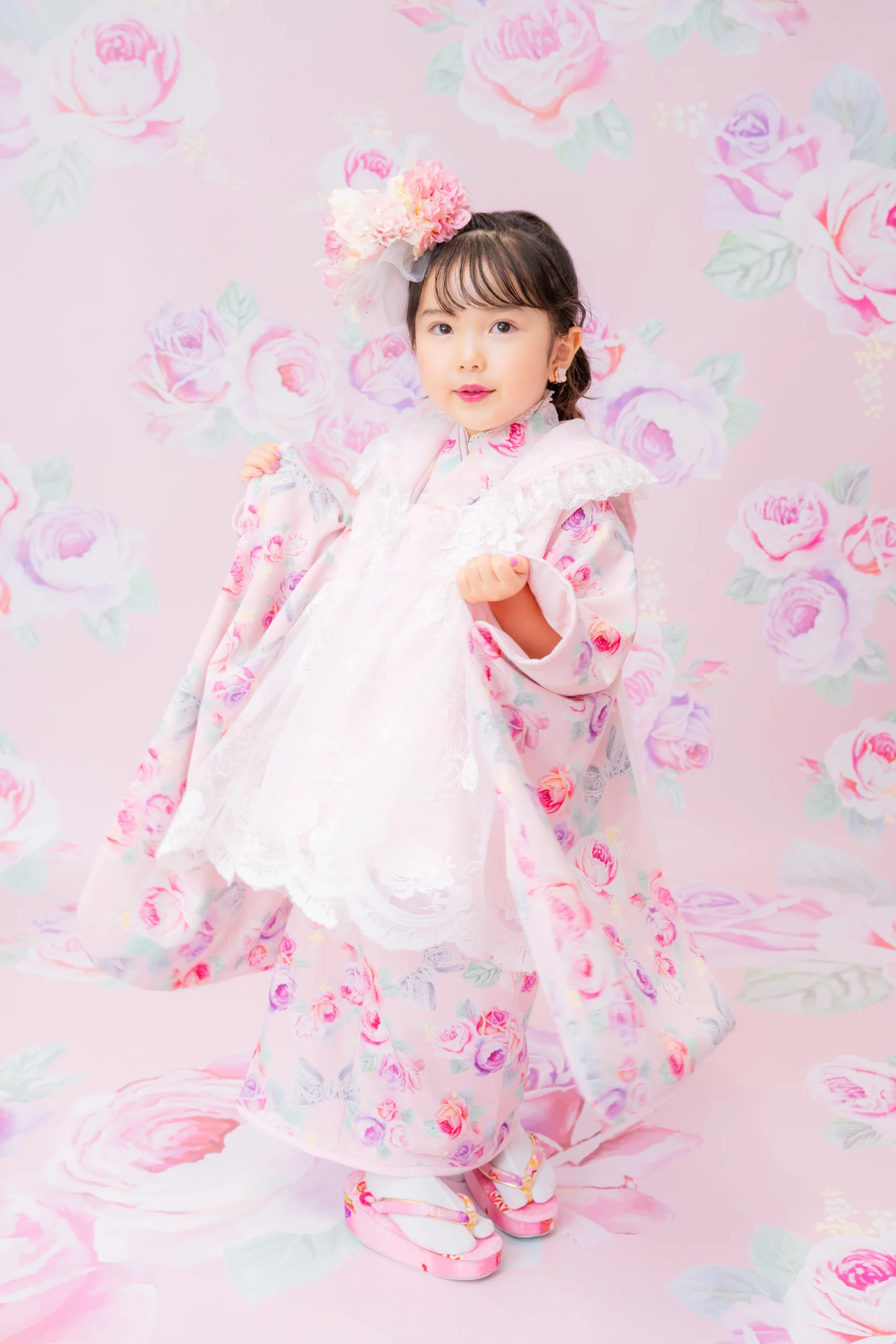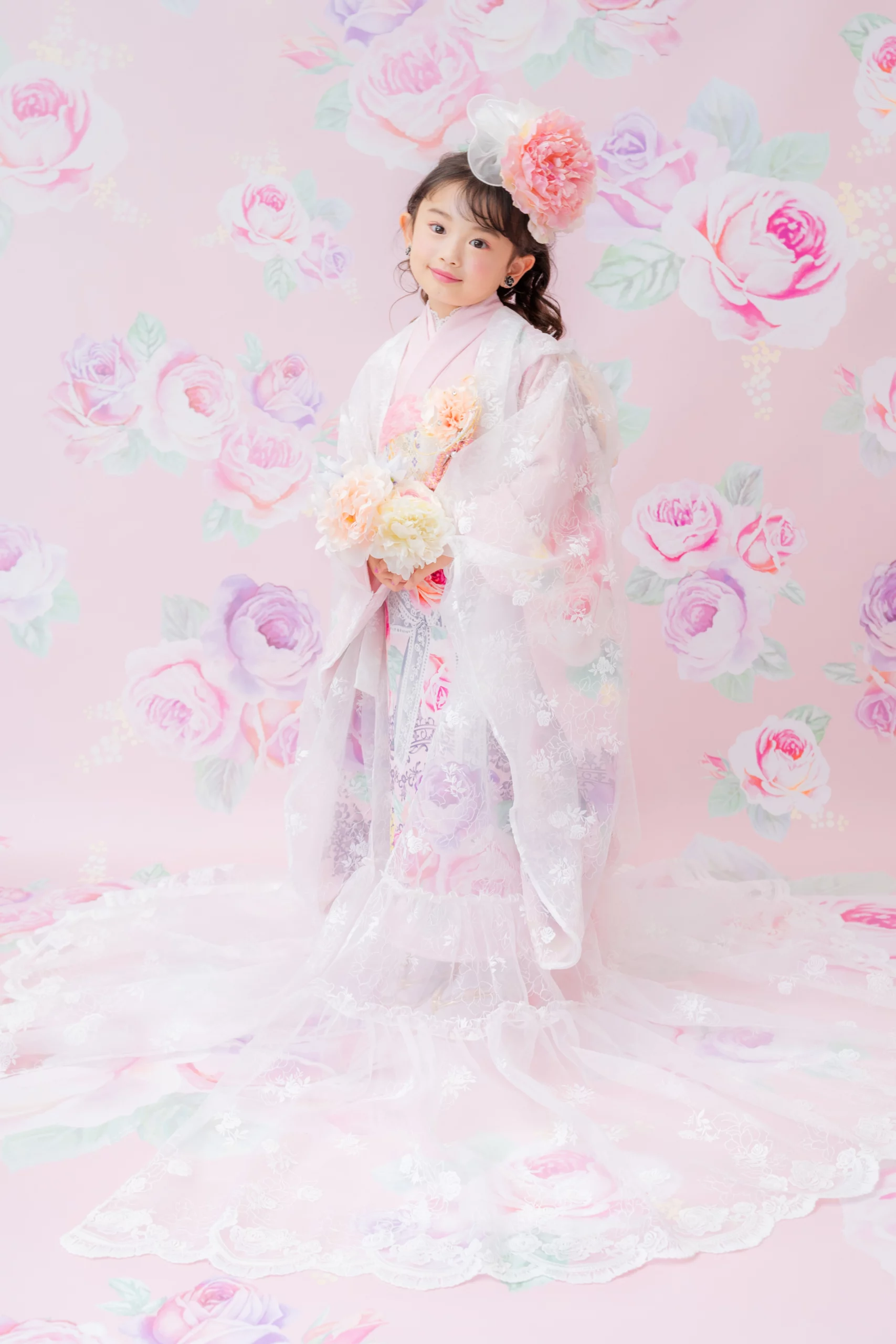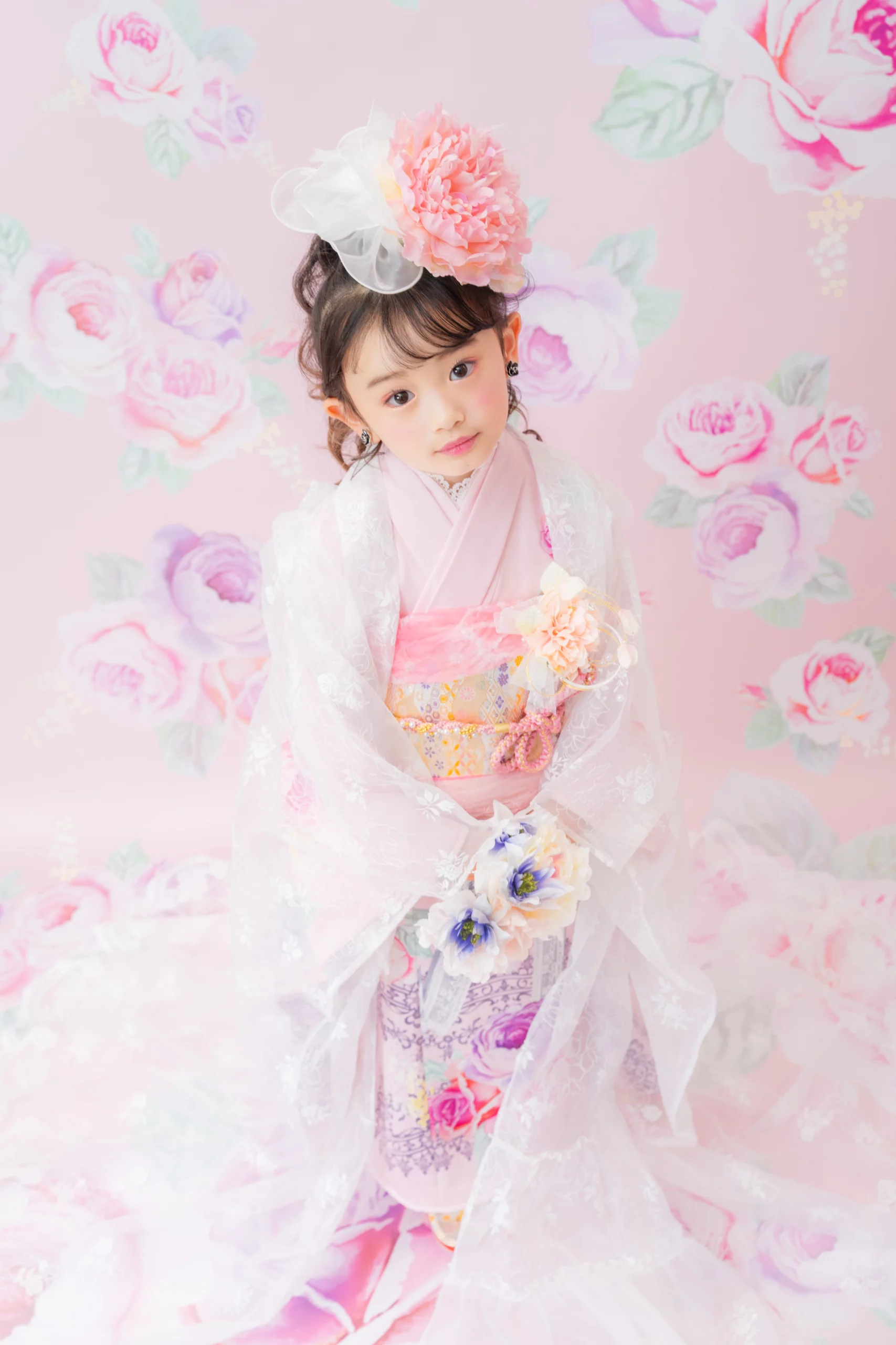 7歳の装いは、メゾ ピアノを象徴する花「薔薇」を