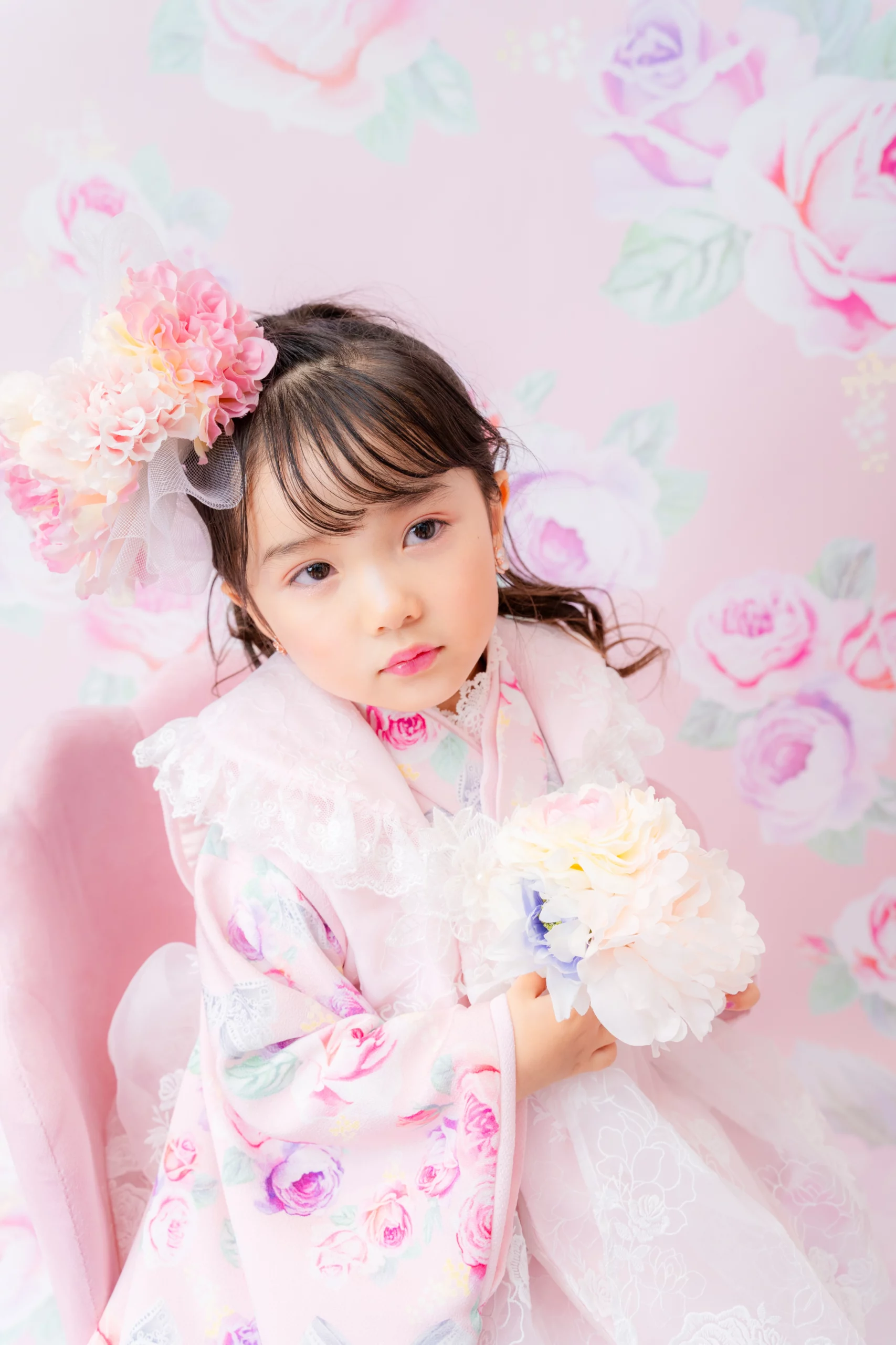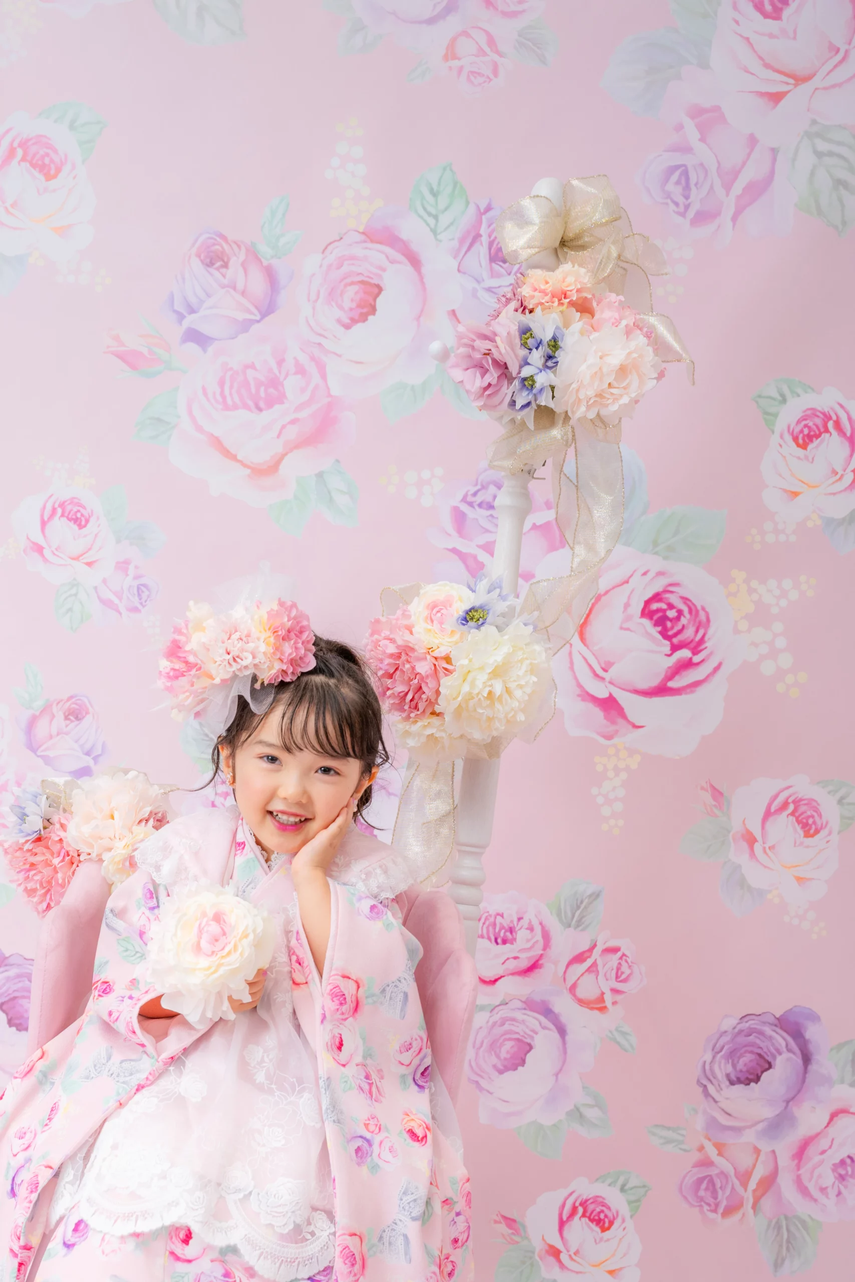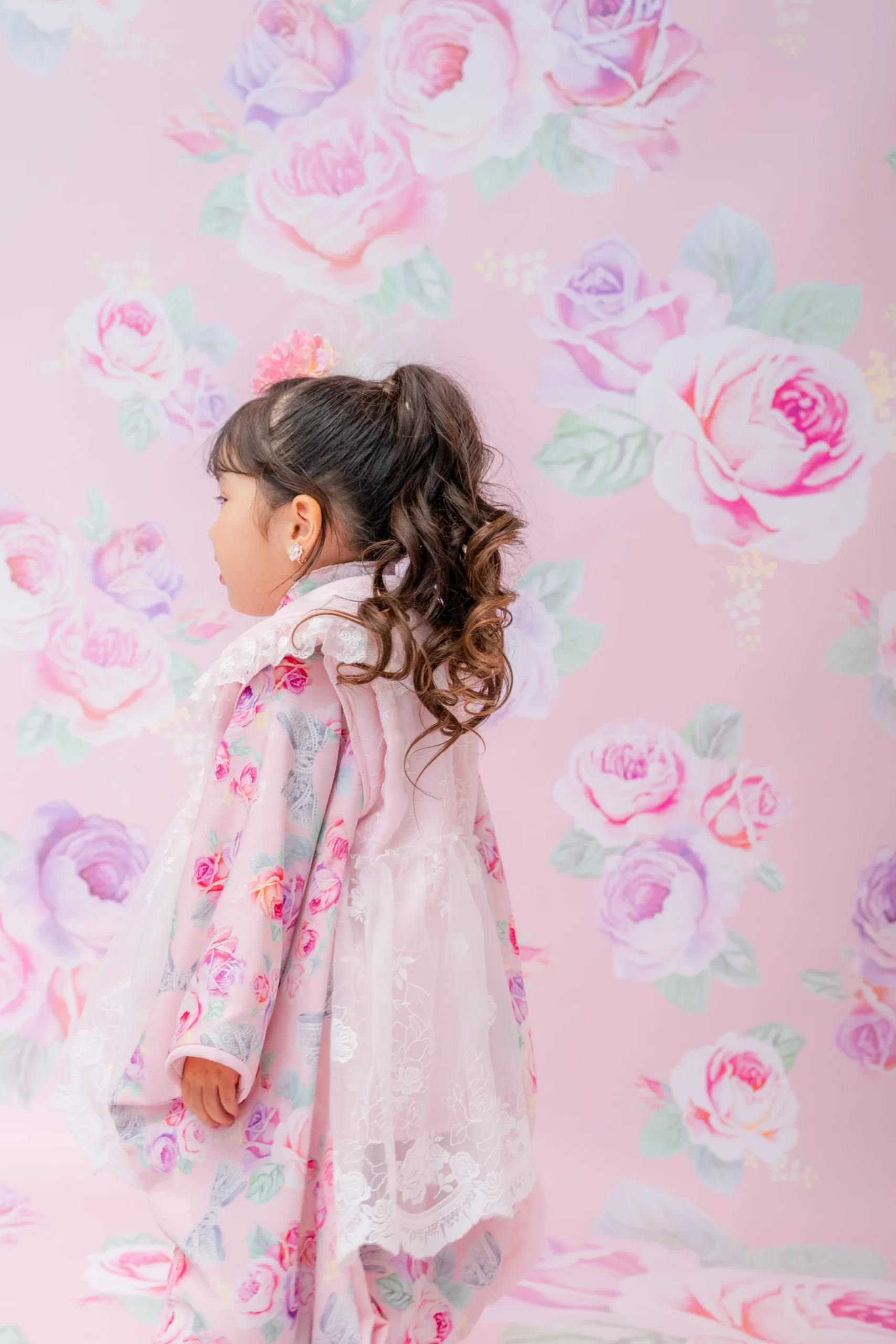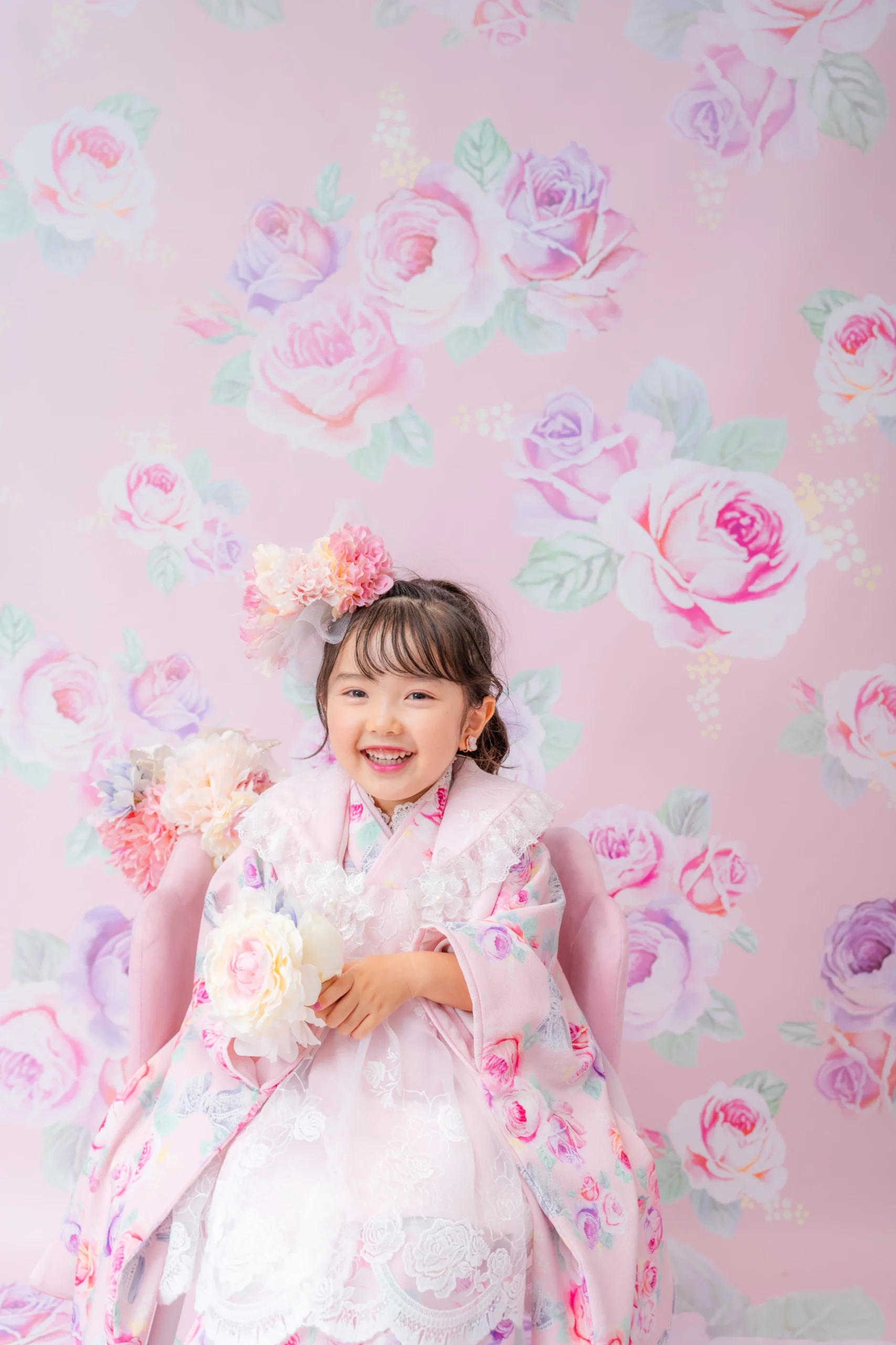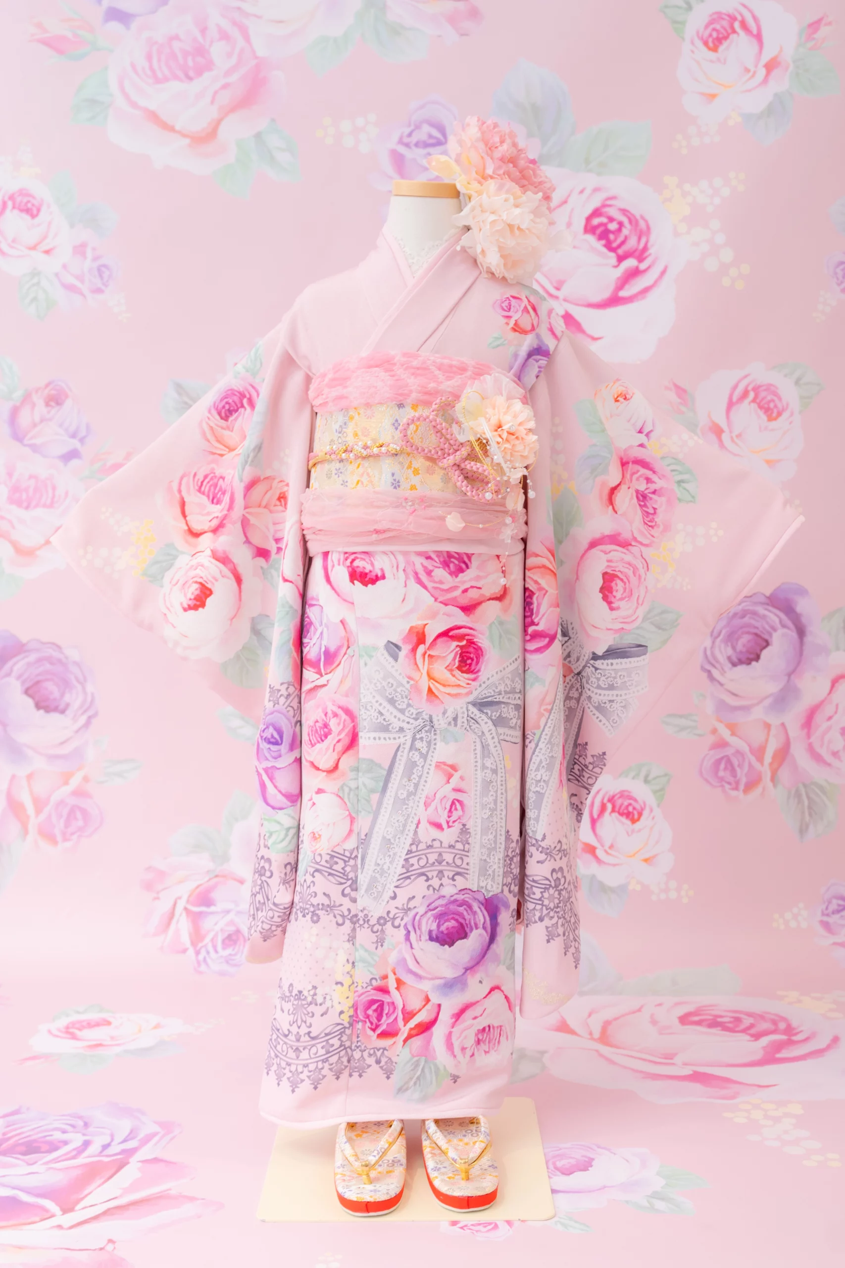 7歳の装いは、メゾ ピアノを象徴する花「薔薇」を