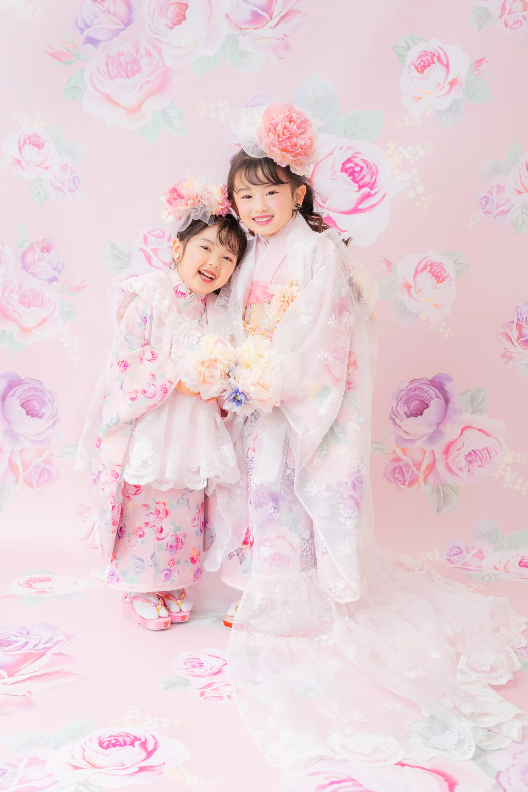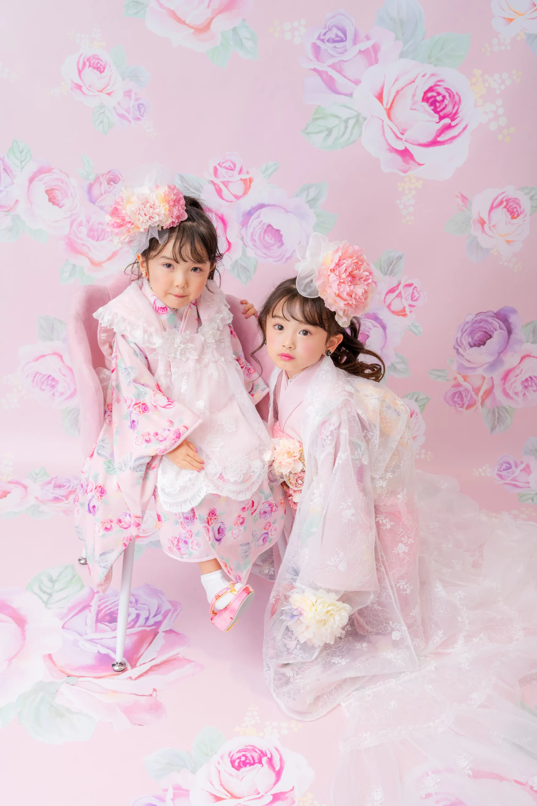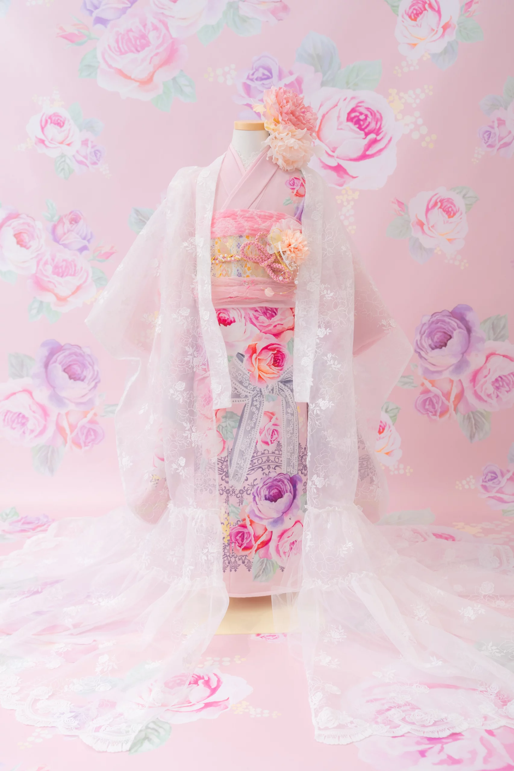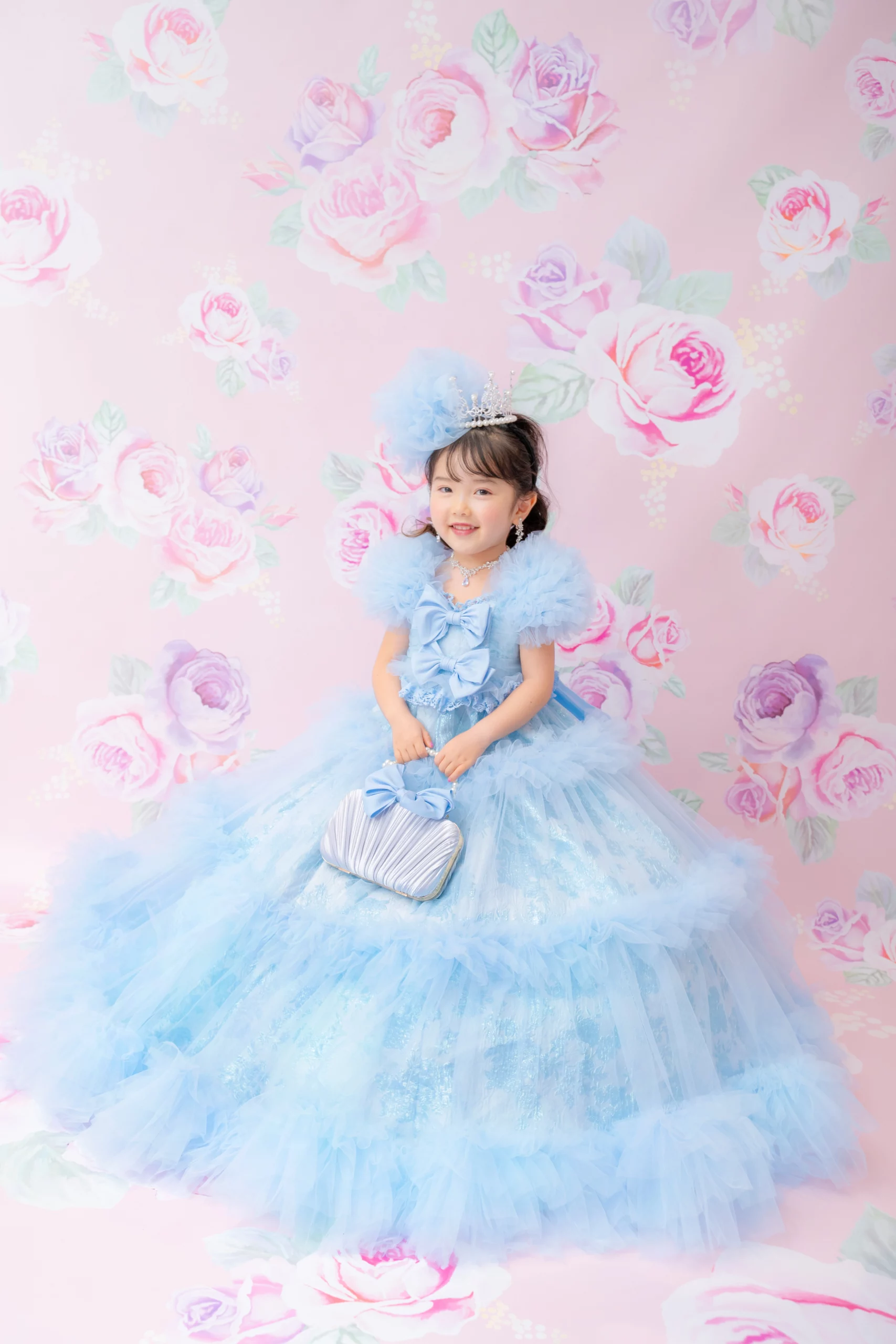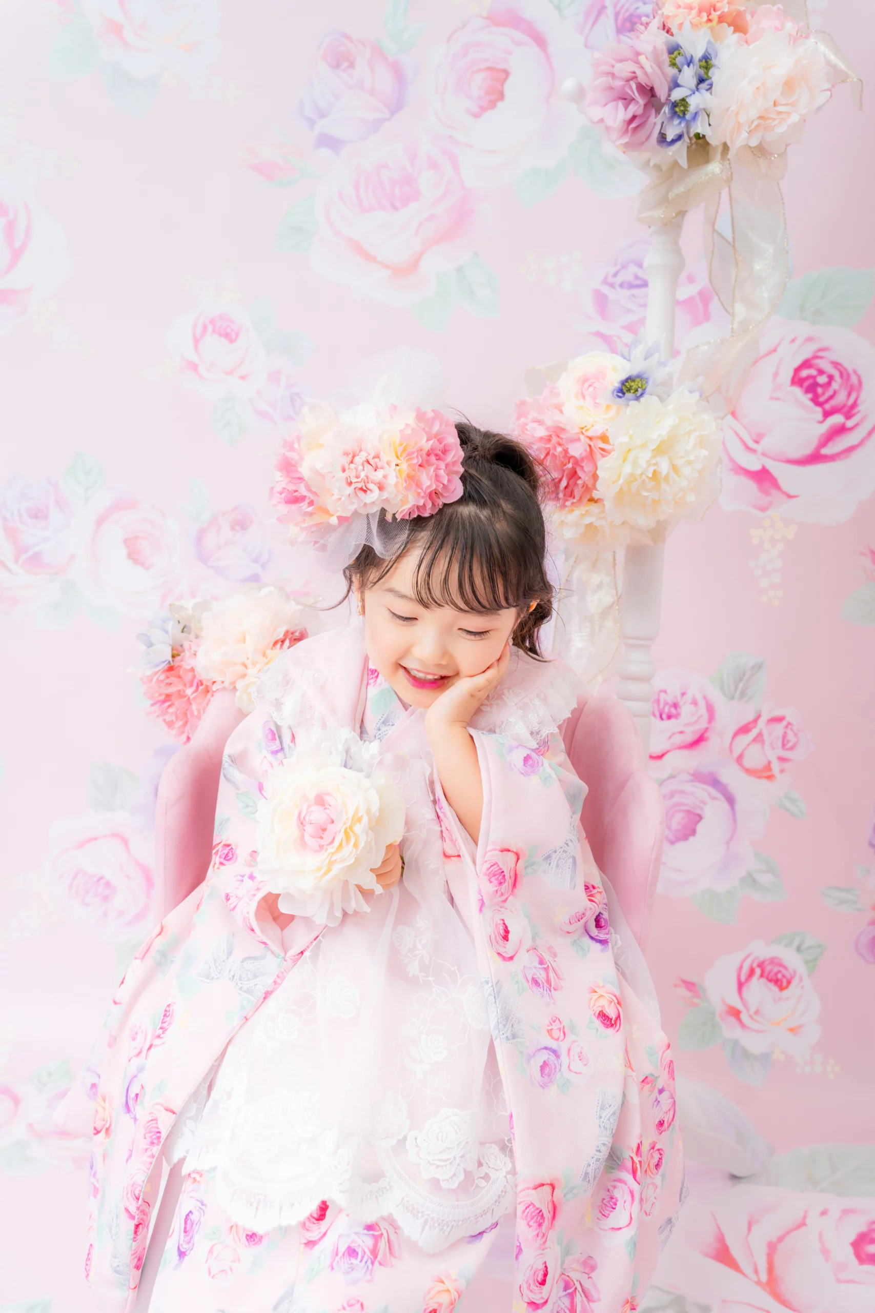 7歳の装いは、メゾ ピアノを象徴する花「薔薇」を