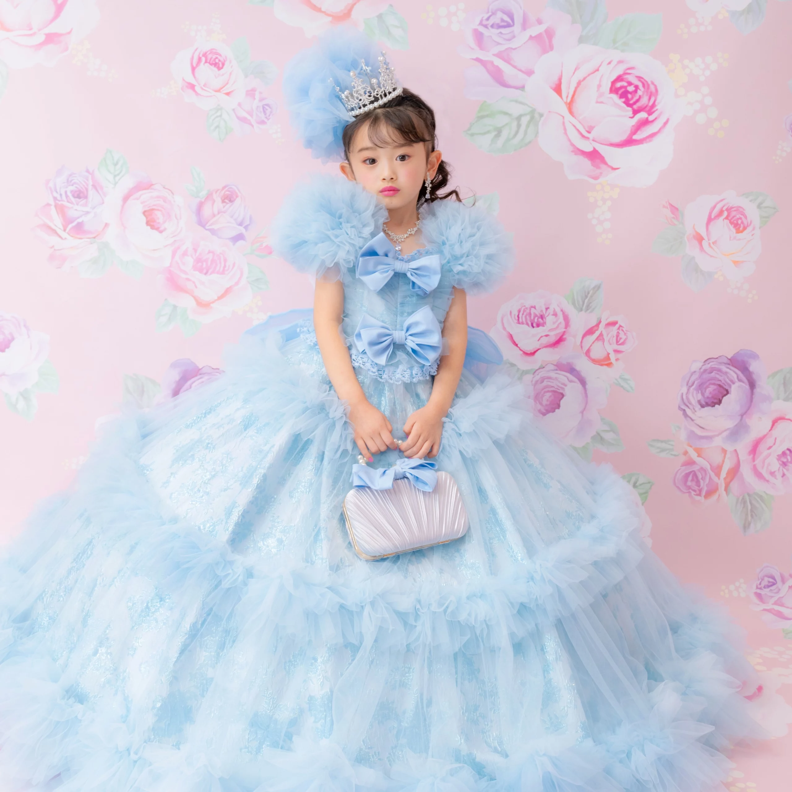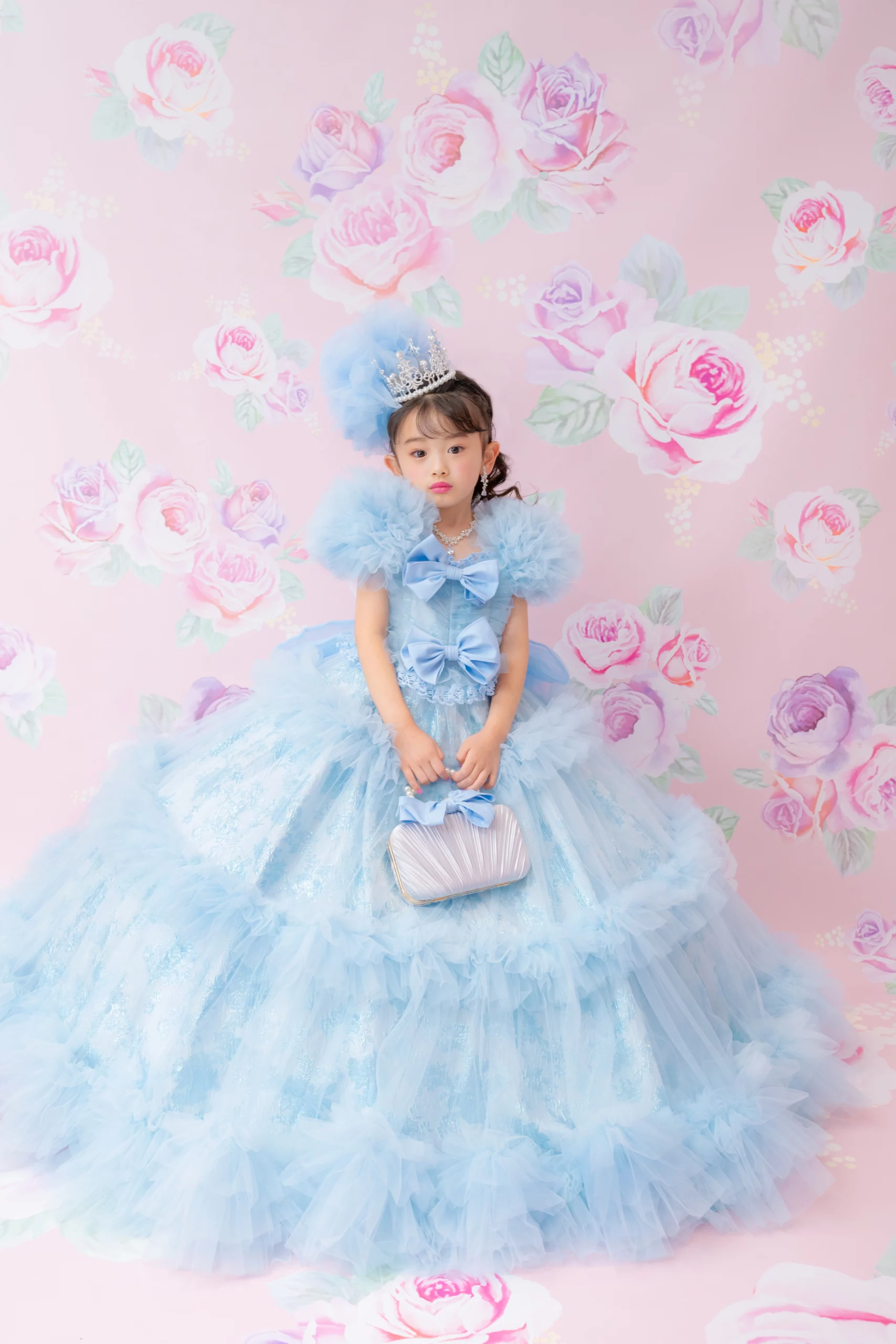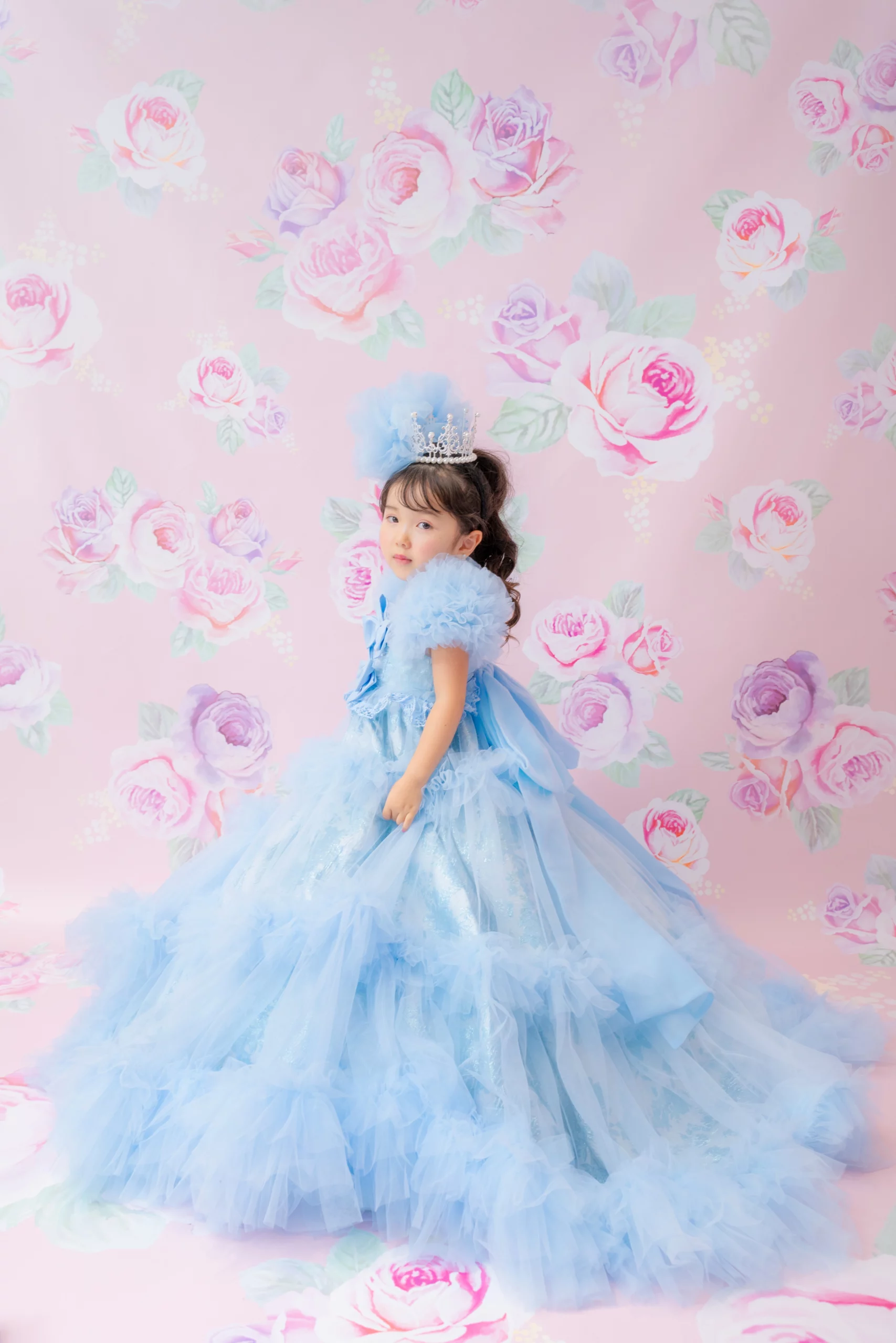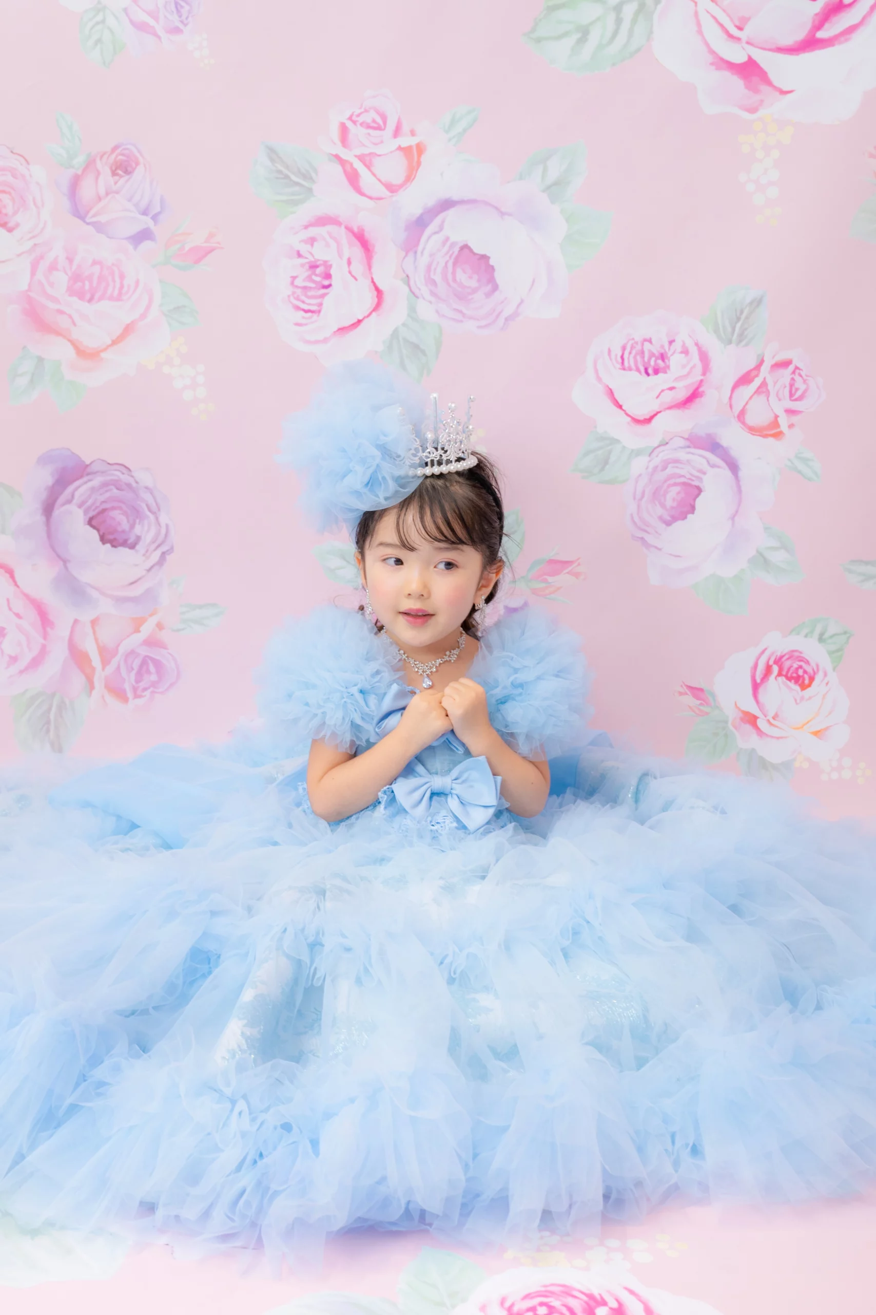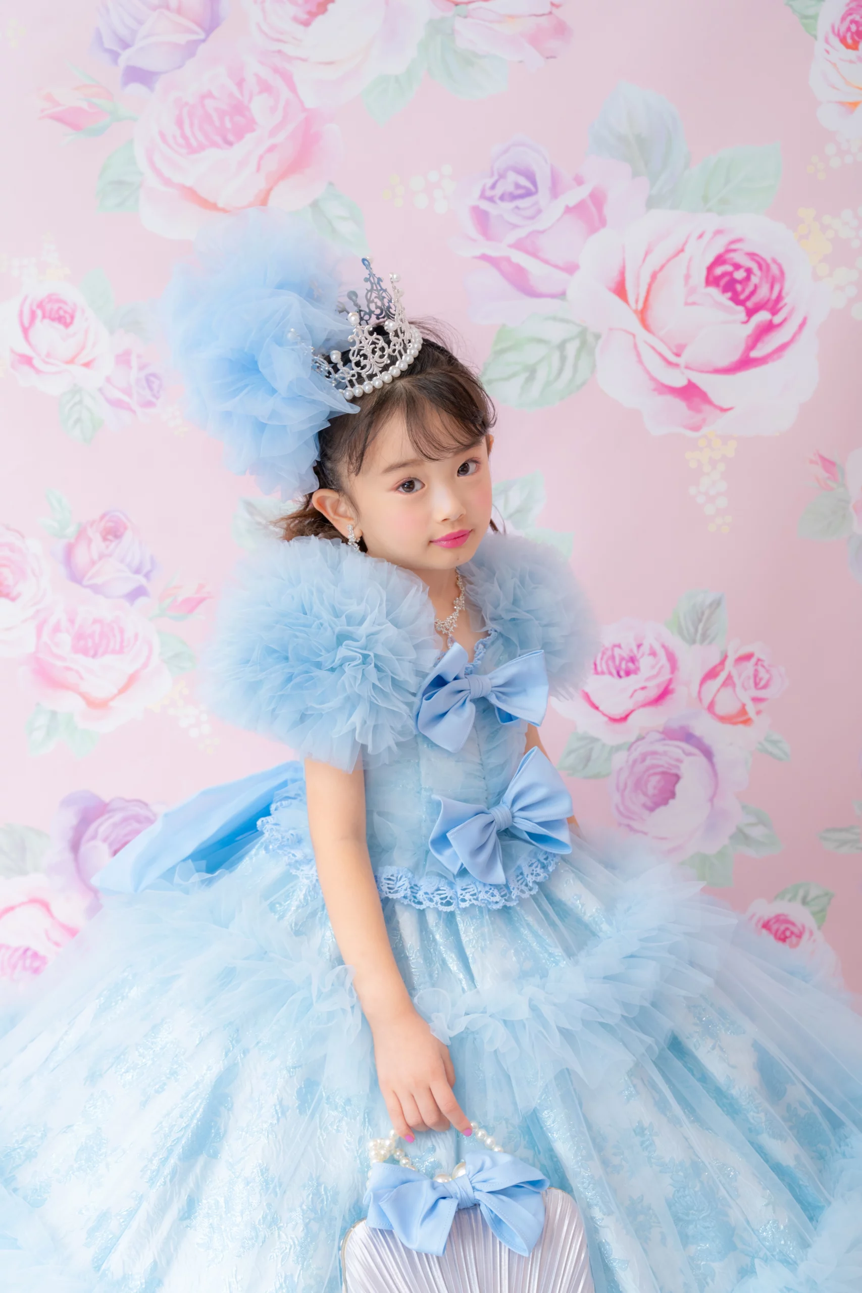 7歳の装いは、メゾ ピアノを象徴する花「薔薇」を