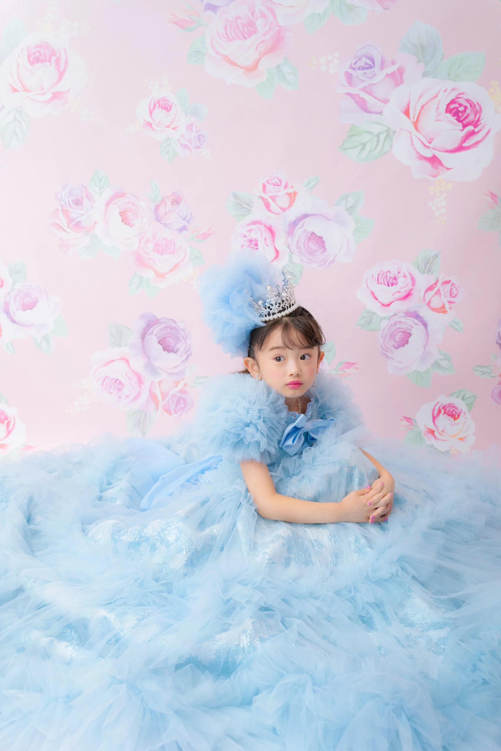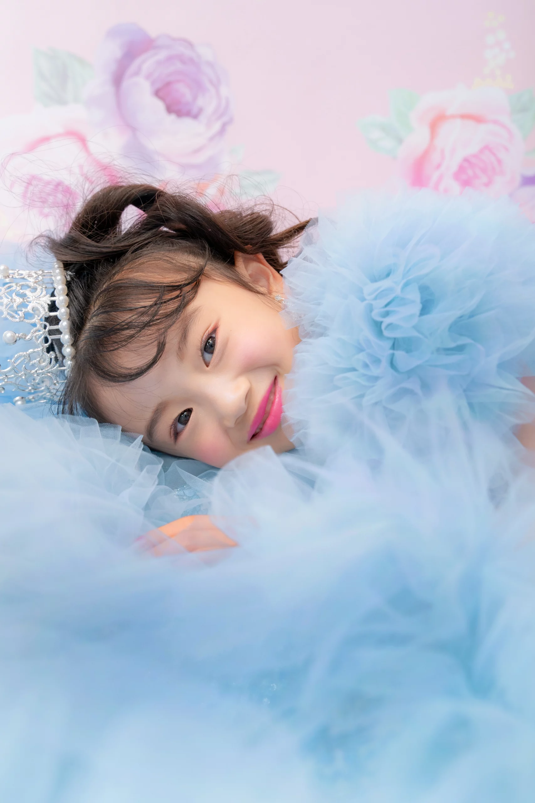 大きな薔薇を束ねた髪飾りでお子さまの表情をより華やかに。