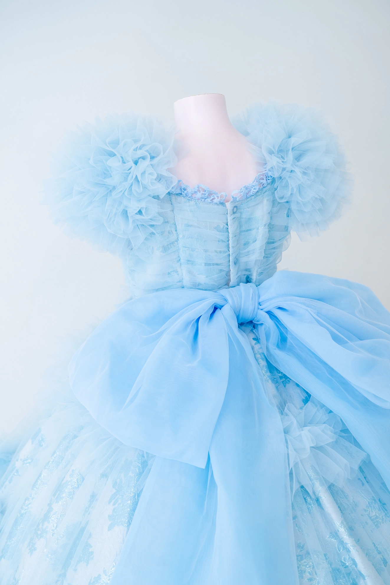 裾にはオーガンジースカラップの薔薇レースを贅沢に用い、
