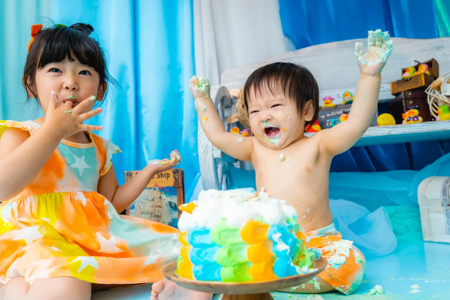 もちろん撮影可能です。追加の料金はございませんが、参加人数により撮影の内容(シーン数・カット数)を調整させていただきます。ご兄弟のソロ撮影は、100カット以上のプランに限り、ご案内可能です。ご希望の場合、税込3,300円頂戴いたします。プラン内の25カットを、ご兄弟のソロ撮影としてご案内いたします。(スマッシュケーキライトプランおよび七五三ライトプランでは、ご兄弟のソロ撮影はできません。)