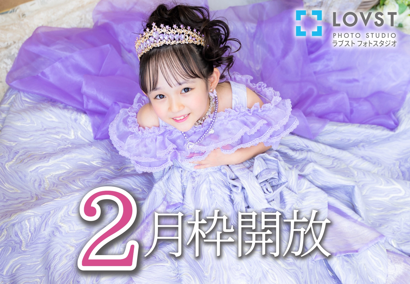 いつもLOVSTフォトスタジオをご愛顧いただき、ありがとうございます。 11月1日(金)より、2月の予約枠を開放いたしました! mezzo pianoやANNA SUI miniの 新作着物やドレスの取り扱いがあるのはLOVSTだけ! 土日祝日の午前枠はかなり人気の時間帯ですので、 お早めのご予約をオススメいたします! 今後も変わらぬご高配を賜りますよう、何卒お願い申し上げます。