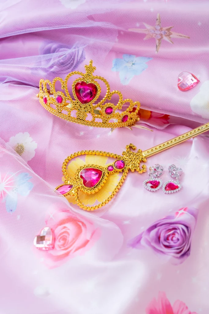 ゴールドのティアラとハートモチーフのステッキも小物として登場!