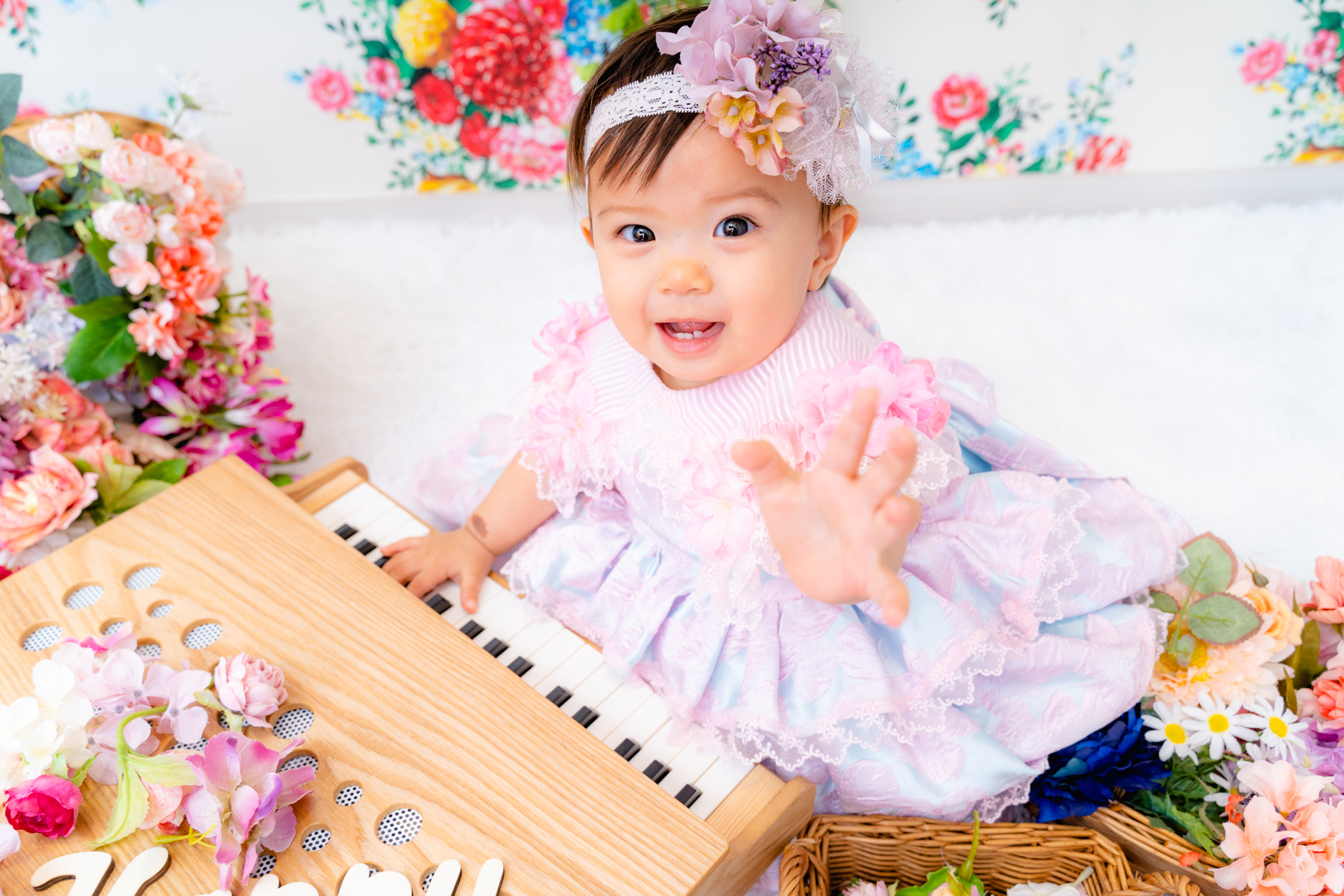 お着替えをして、まずはお誕生日撮影から♪ 最初に2シーン撮影を進めていきます。