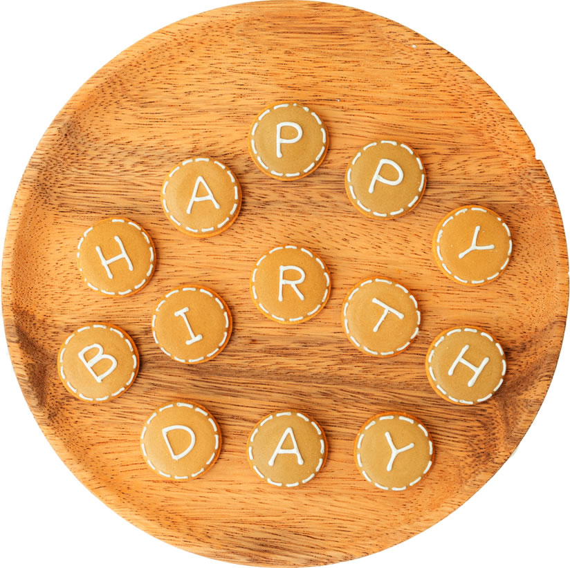 プレゴのケーキには、バースデークッキーをご用意しております。税込2,200円頂戴いたします。