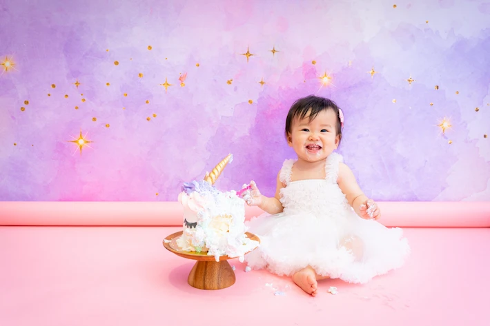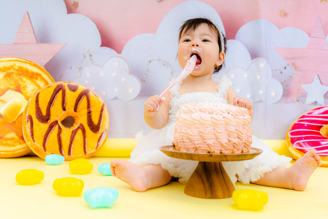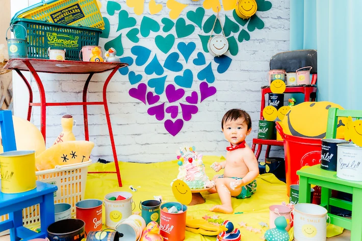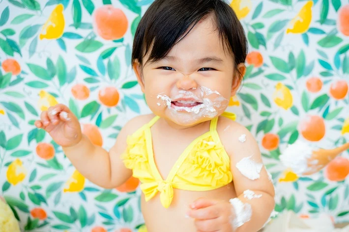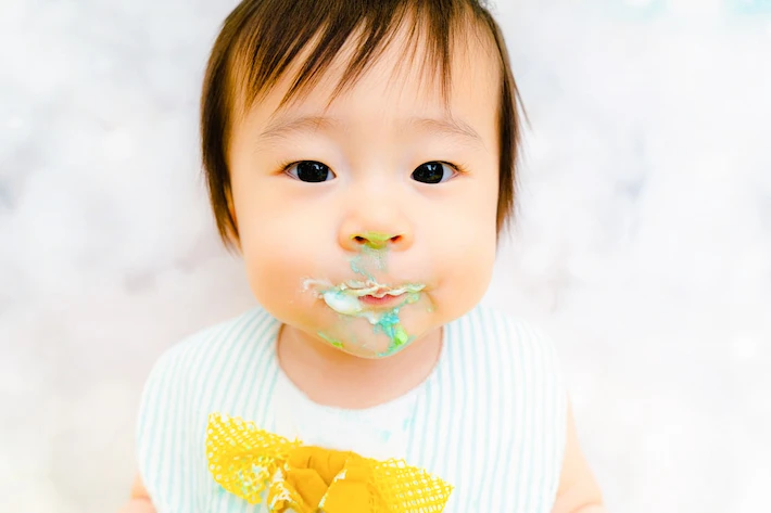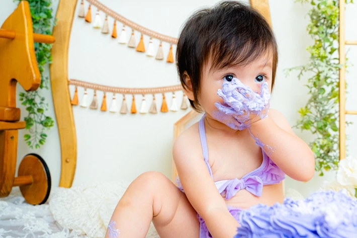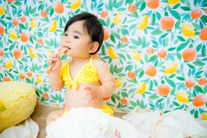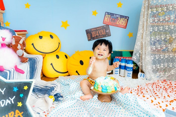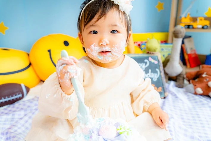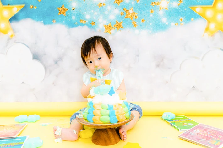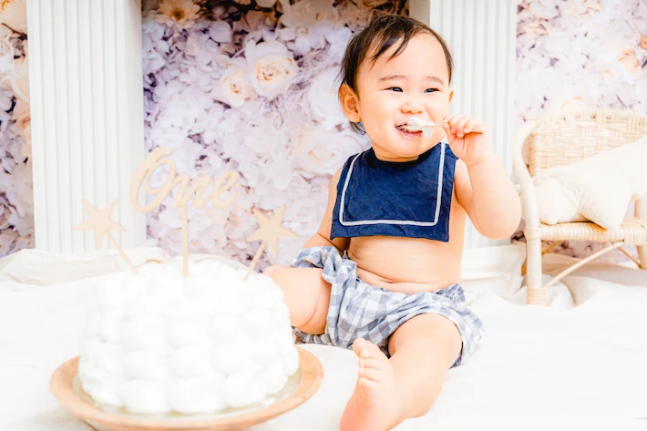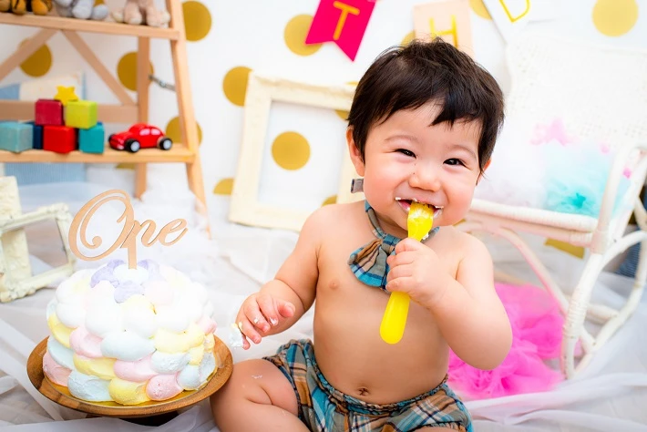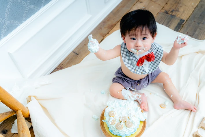 満1歳でのスマッシュケーキ撮影をお勧めしております。離乳食が完了しており、お一人でお食事ができるお子様に限り、満1歳未満でも撮影可能です。