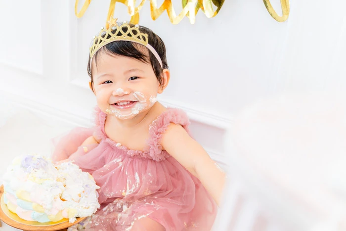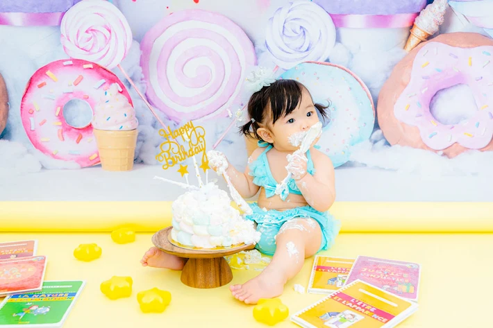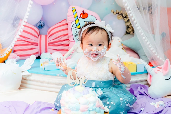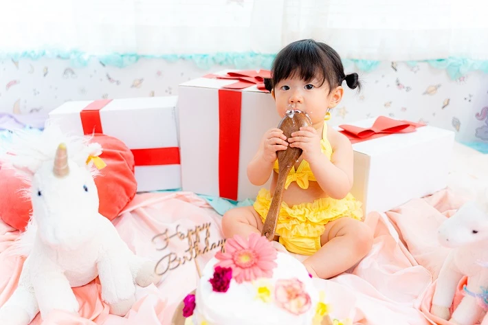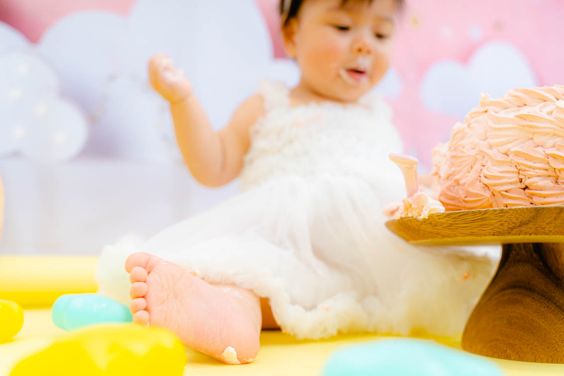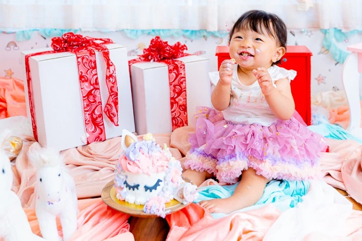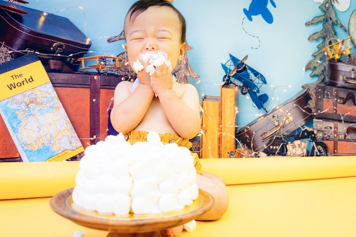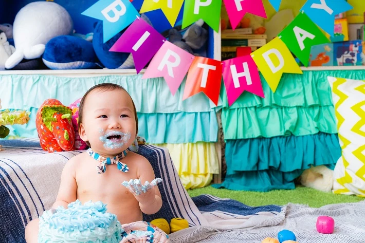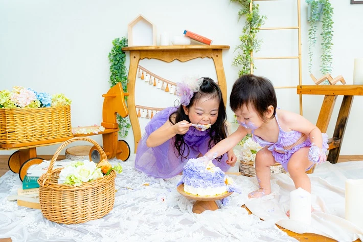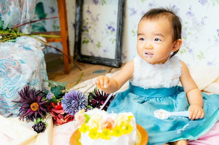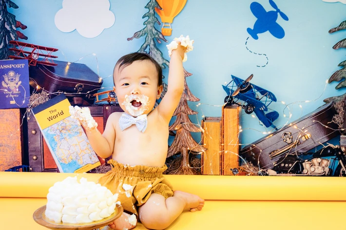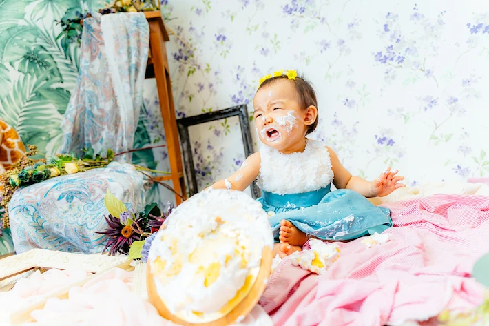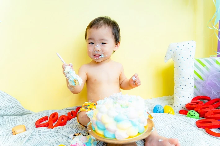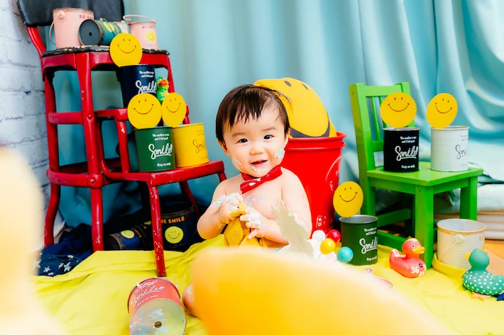 満1歳でのスマッシュケーキ撮影をお勧めしております。離乳食が完了しており、お一人でお食事ができるお子様に限り、満1歳未満でも撮影可能です。