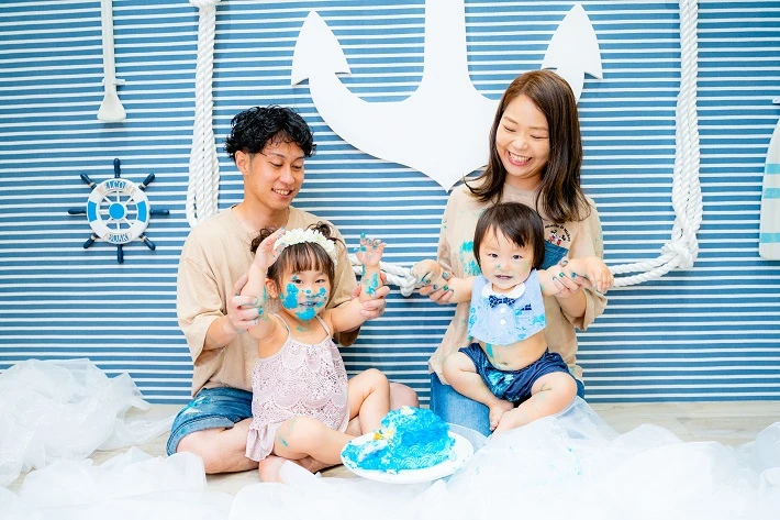 スマッシュケーキ撮影1シーンとなりますので、主にケーキを食べる撮影にご家族様やご兄弟様が加わって、一緒に食べているところや、お子様に食べさせている所などを撮影いたします。数カットカメラ目線のご家族写真撮影のご案内もいたします。ご兄弟様での2ショットやご家族写真をしっかり残されたい場合は、スマッシュケーキプランにてご予約をいただけますと幸いです。