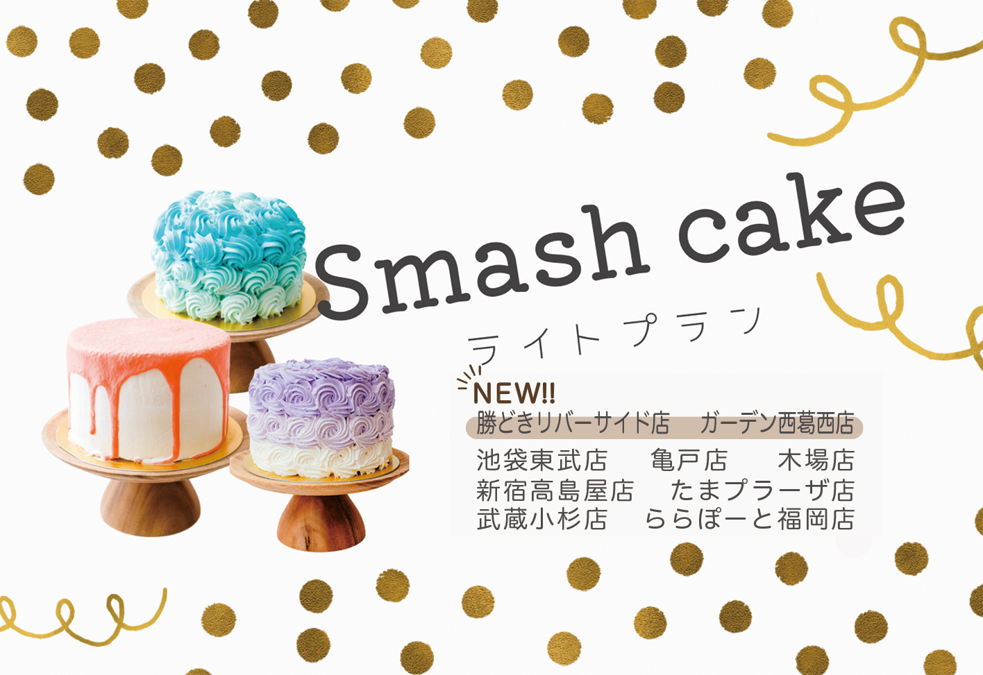 「スマッシュケーキプラン」は、撮影日から14日前(2週間前)の正午までにご予約ください。但し、パティシエさんやスタジオの状況によっては、直前のご予約に対応できない場合がございますので、直前のご予約となる際は店舗にお問い合わせください。予約時点でケーキの種類をお選びいただきます、予約後にケーキの変更はできません。年末年始やお盆の期間は、ケーキ製作日程の都合上、14日前でもご予約に対応できない場合がございますので、この期間の撮影をご希望の際は、お早めにご予約ください。