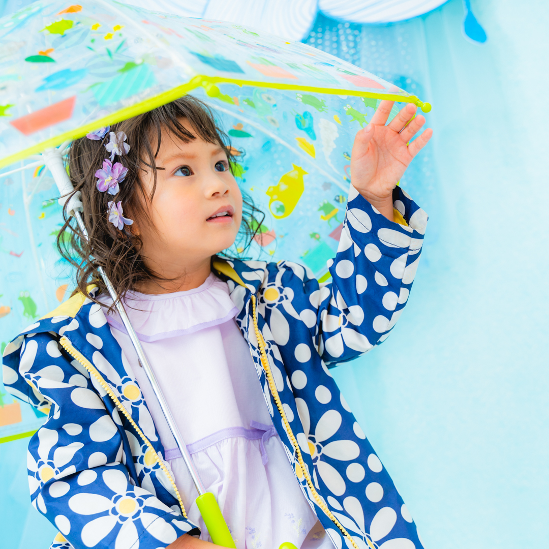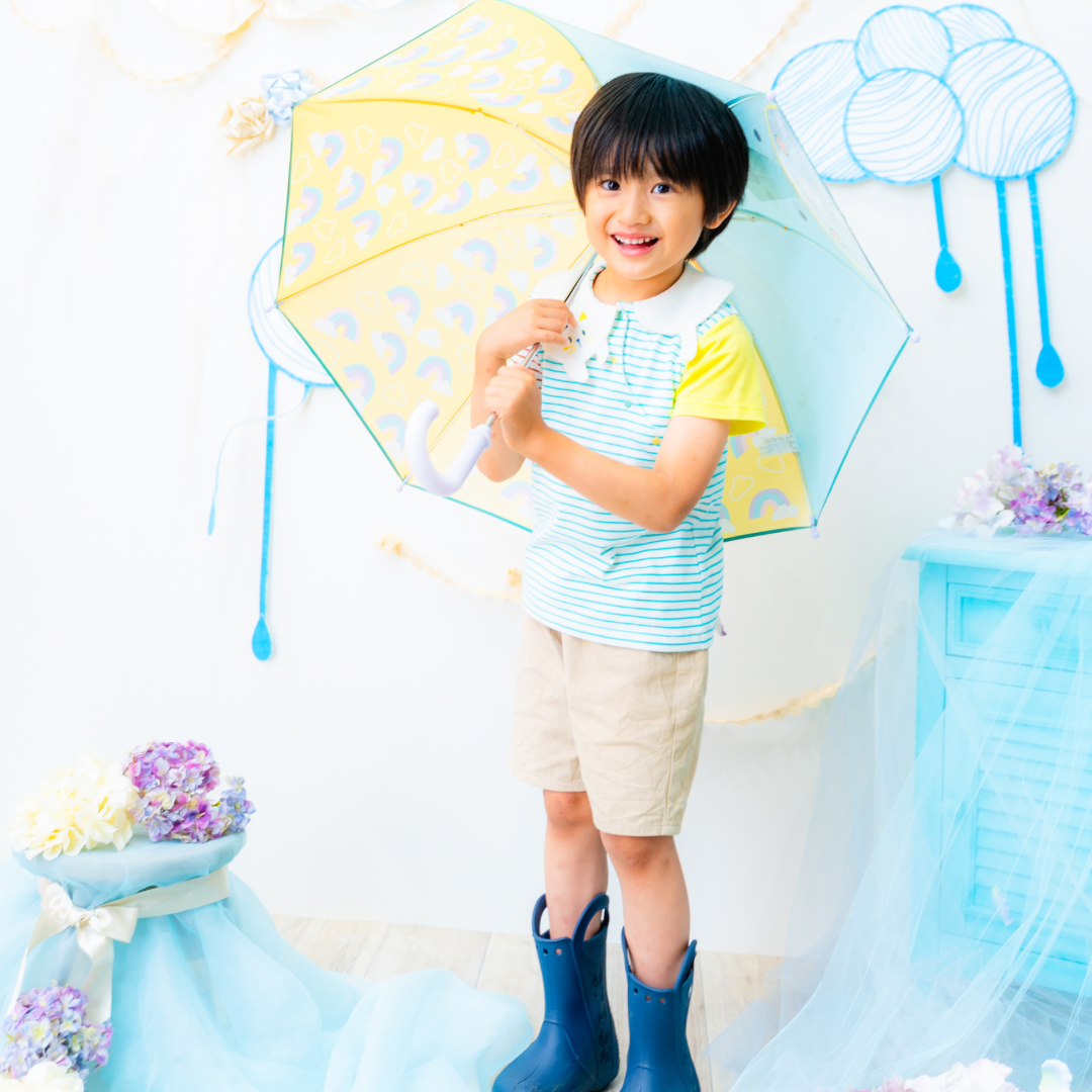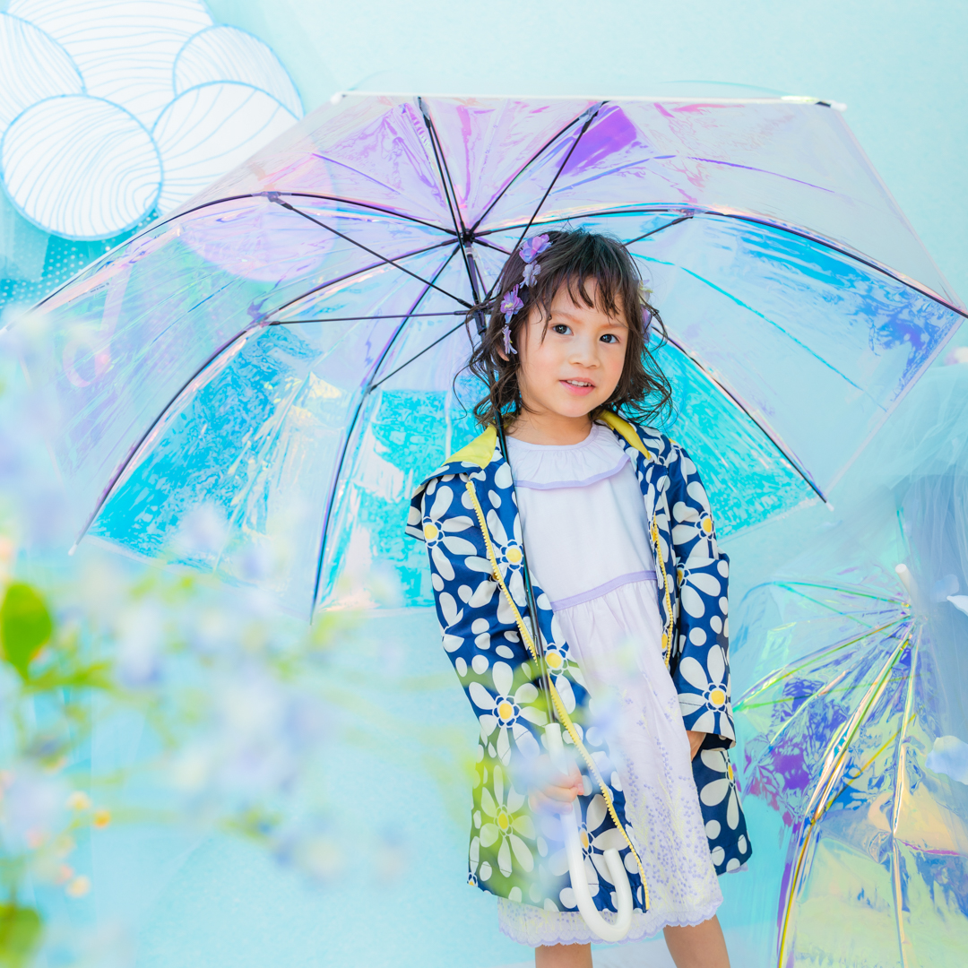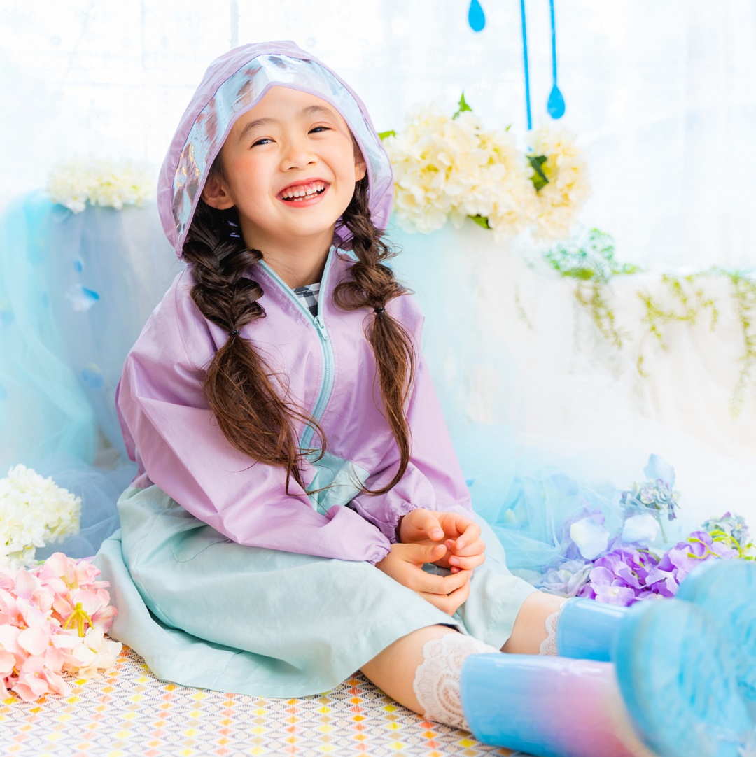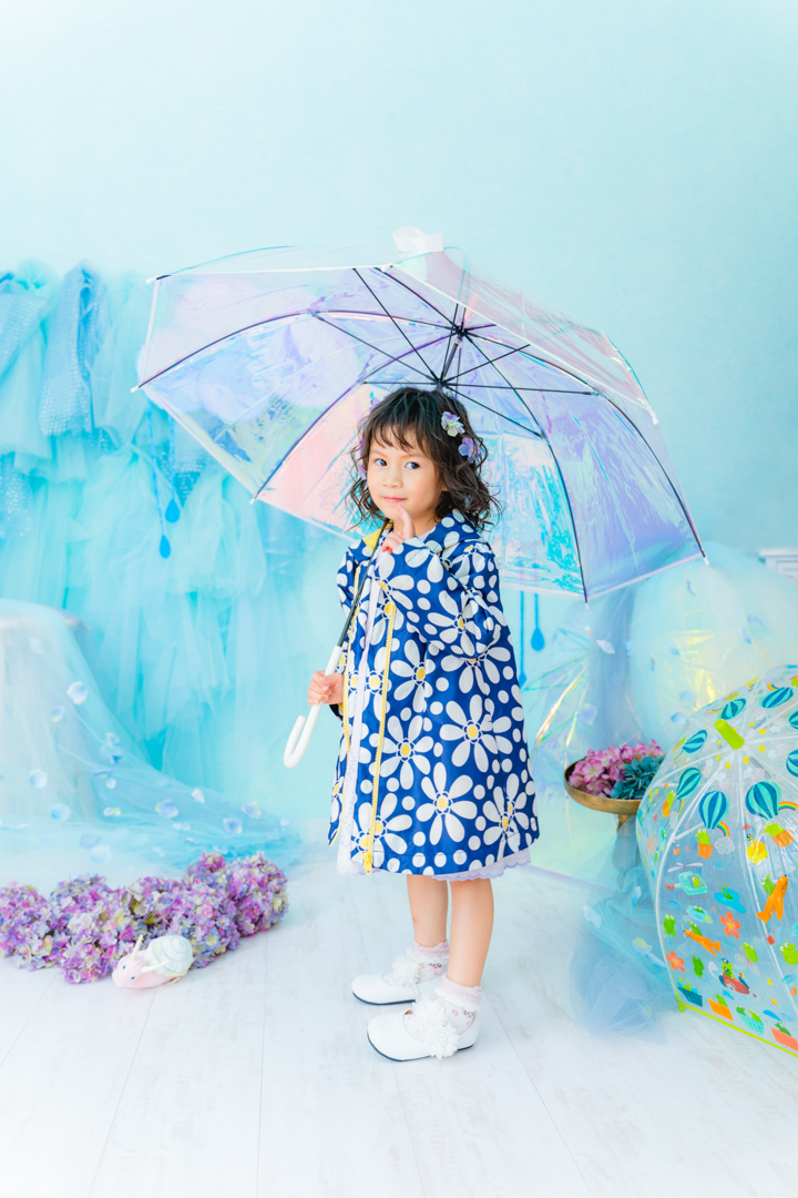 雨具などのお持ち込み衣装での撮影も可能です。お持ち込み衣装も撮影衣装数に含まれます。バースデー等、記念日撮影用衣装・小物のお持ち込みはご遠慮ください。(バースデーボード・ランドセル・着物など)