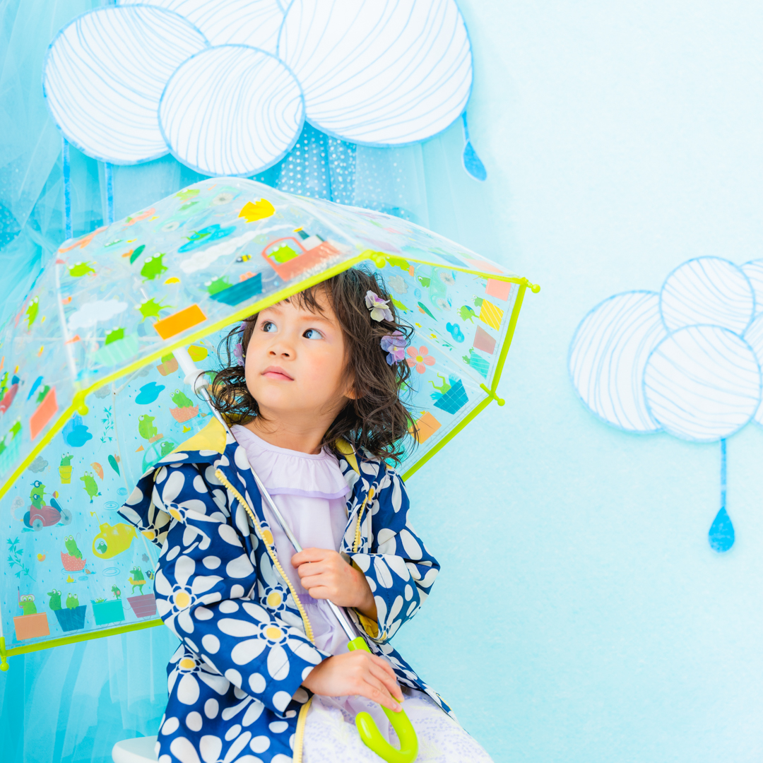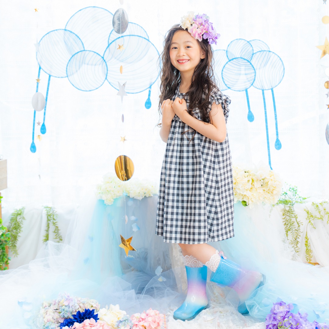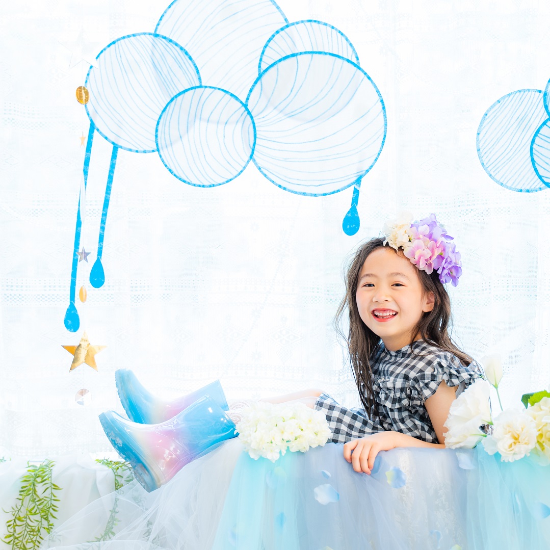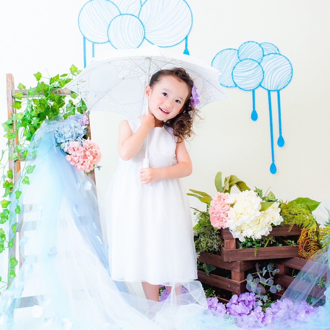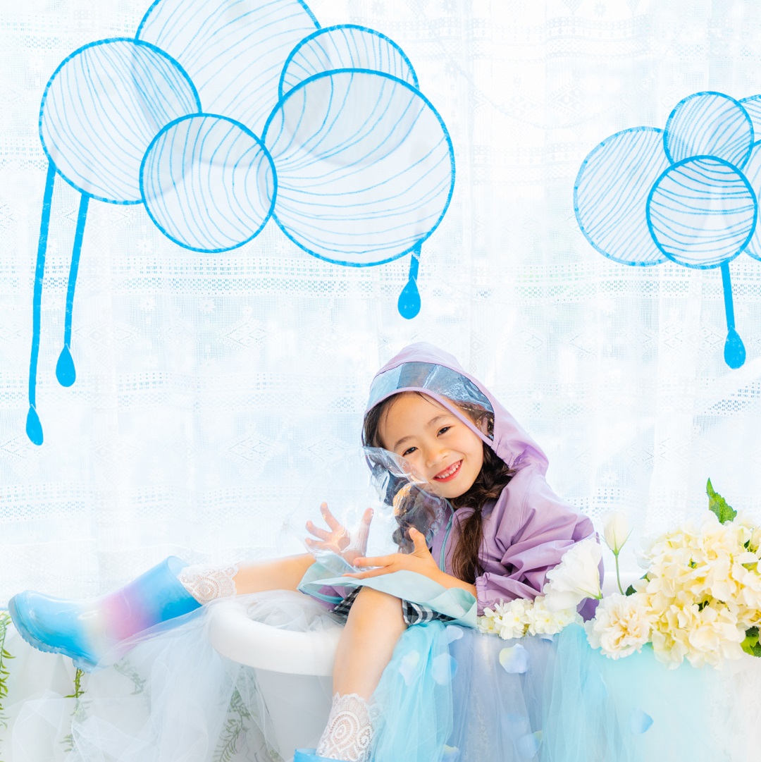 雨具などのお持ち込み衣装での撮影も可能です。お持ち込み衣装も撮影衣装数に含まれます。バースデー等、記念日撮影用衣装・小物のお持ち込みはご遠慮ください。(バースデーボード・ランドセル・着物など)