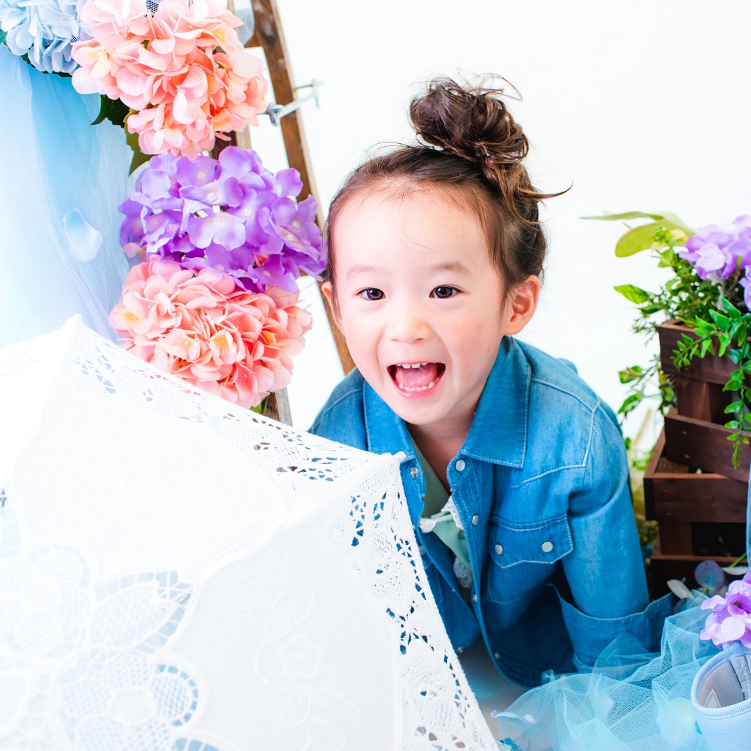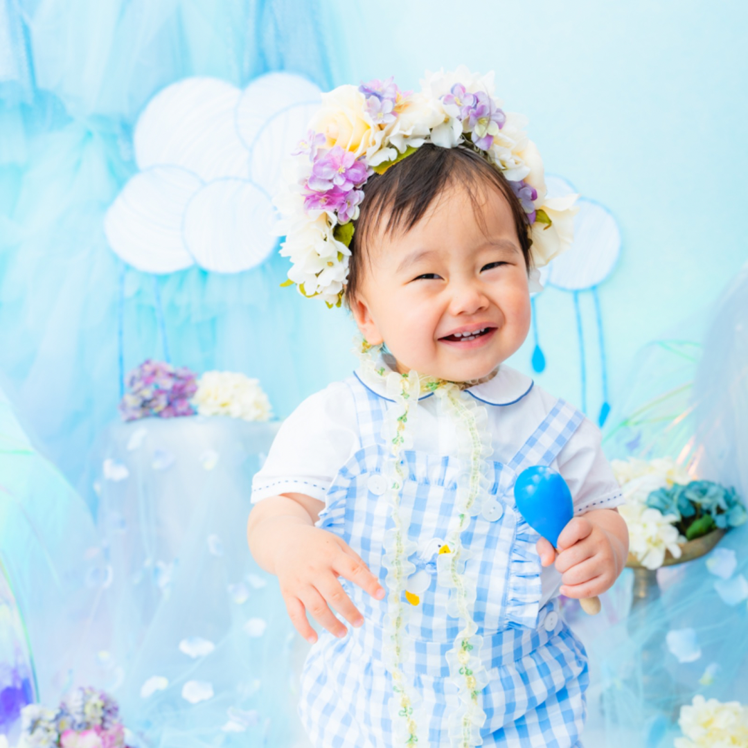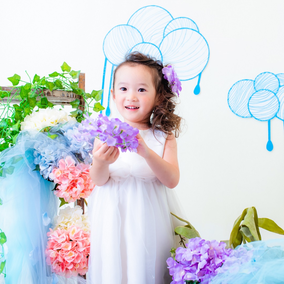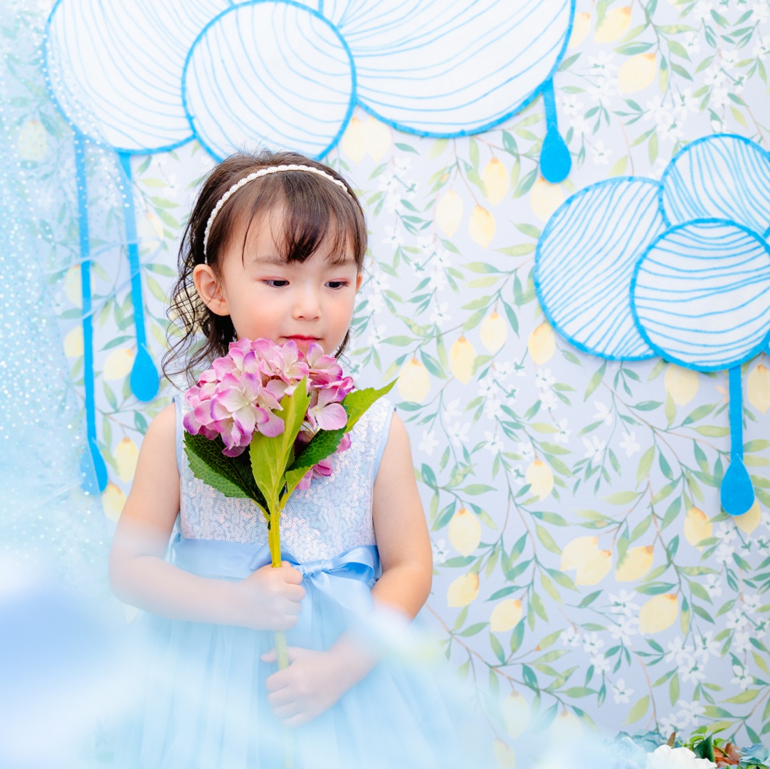 雨具などのお持ち込み衣装での撮影も可能です。お持ち込み衣装も撮影衣装数に含まれます。バースデー等、記念日撮影用衣装・小物のお持ち込みはご遠慮ください。(バースデーボード・ランドセル・着物など)