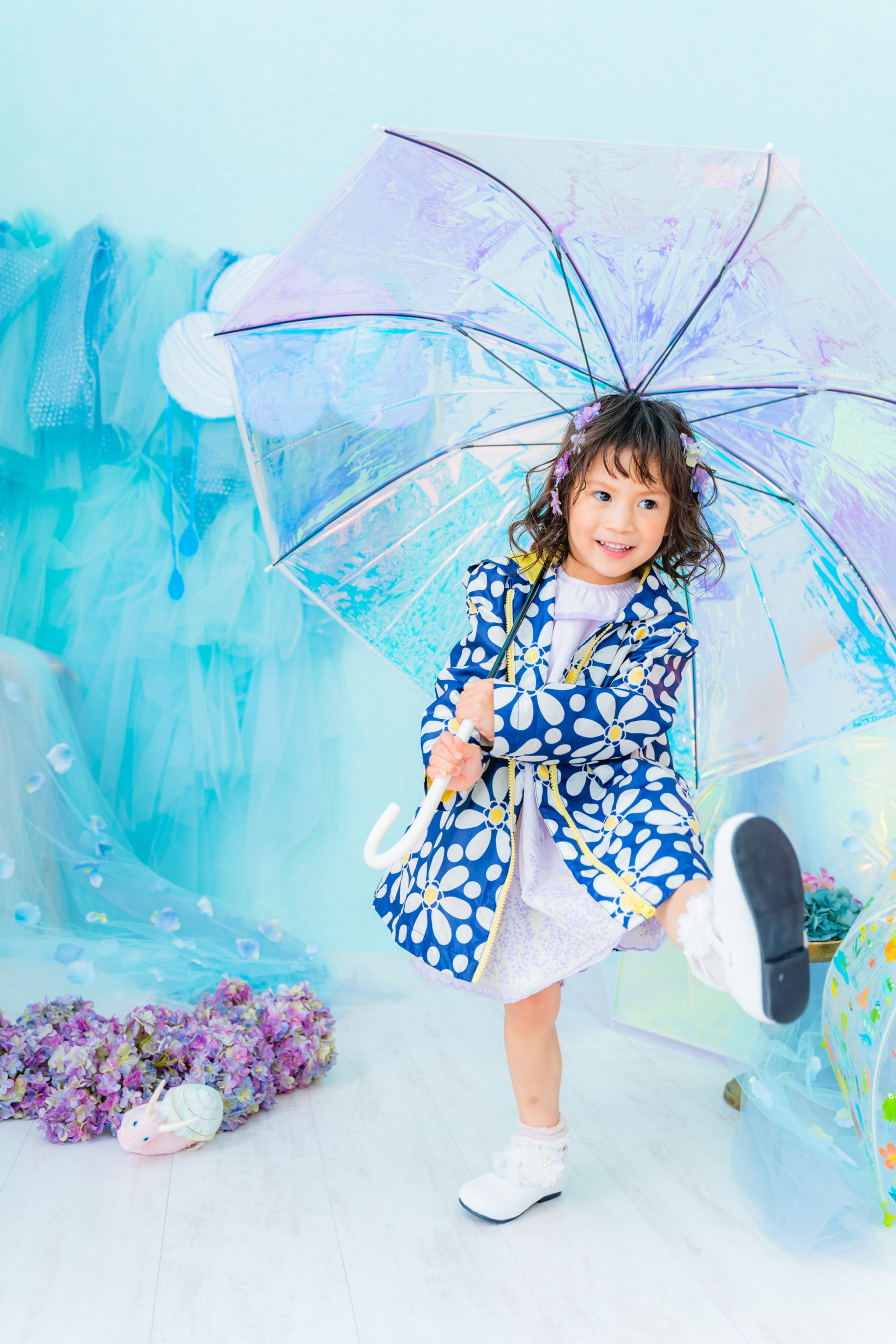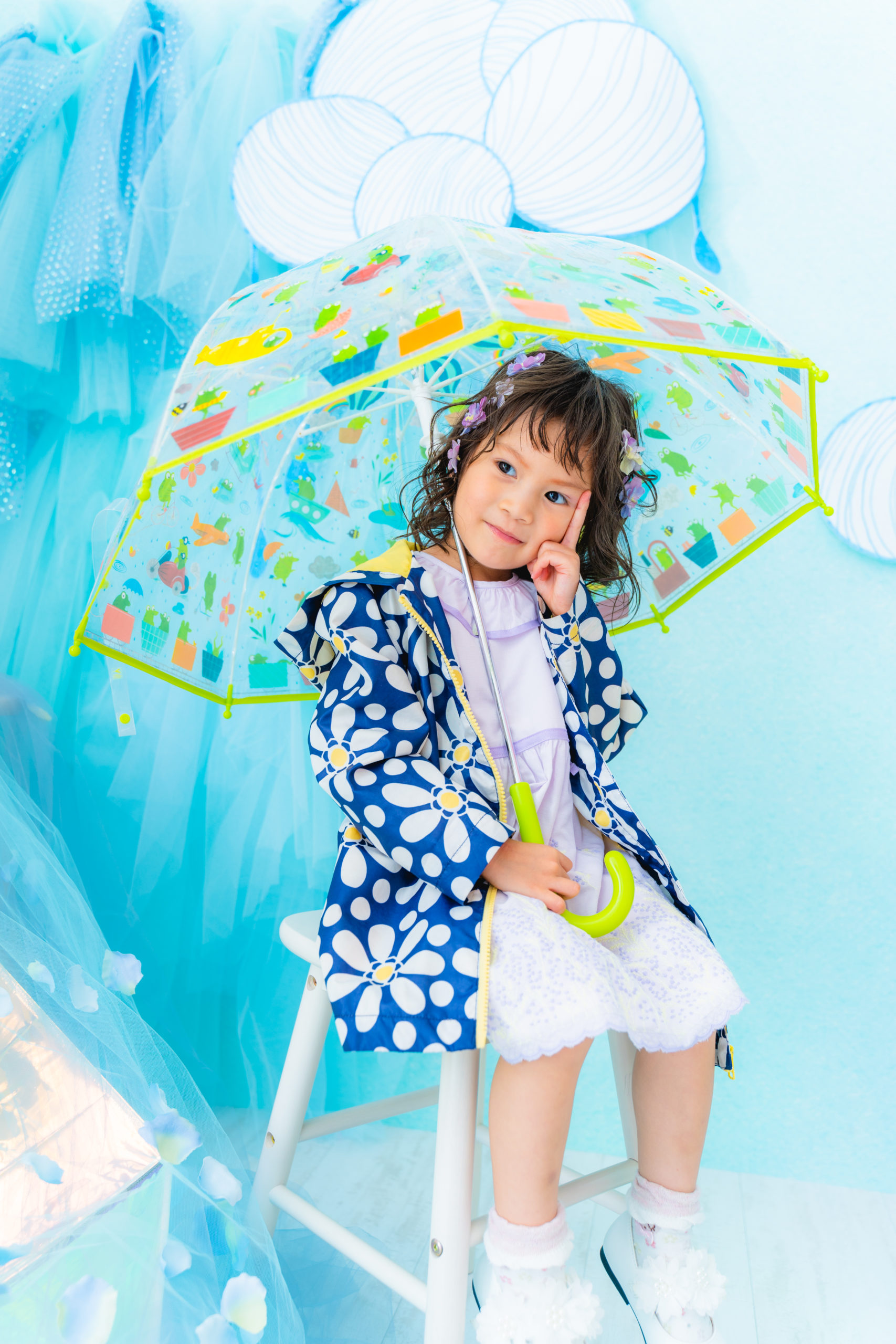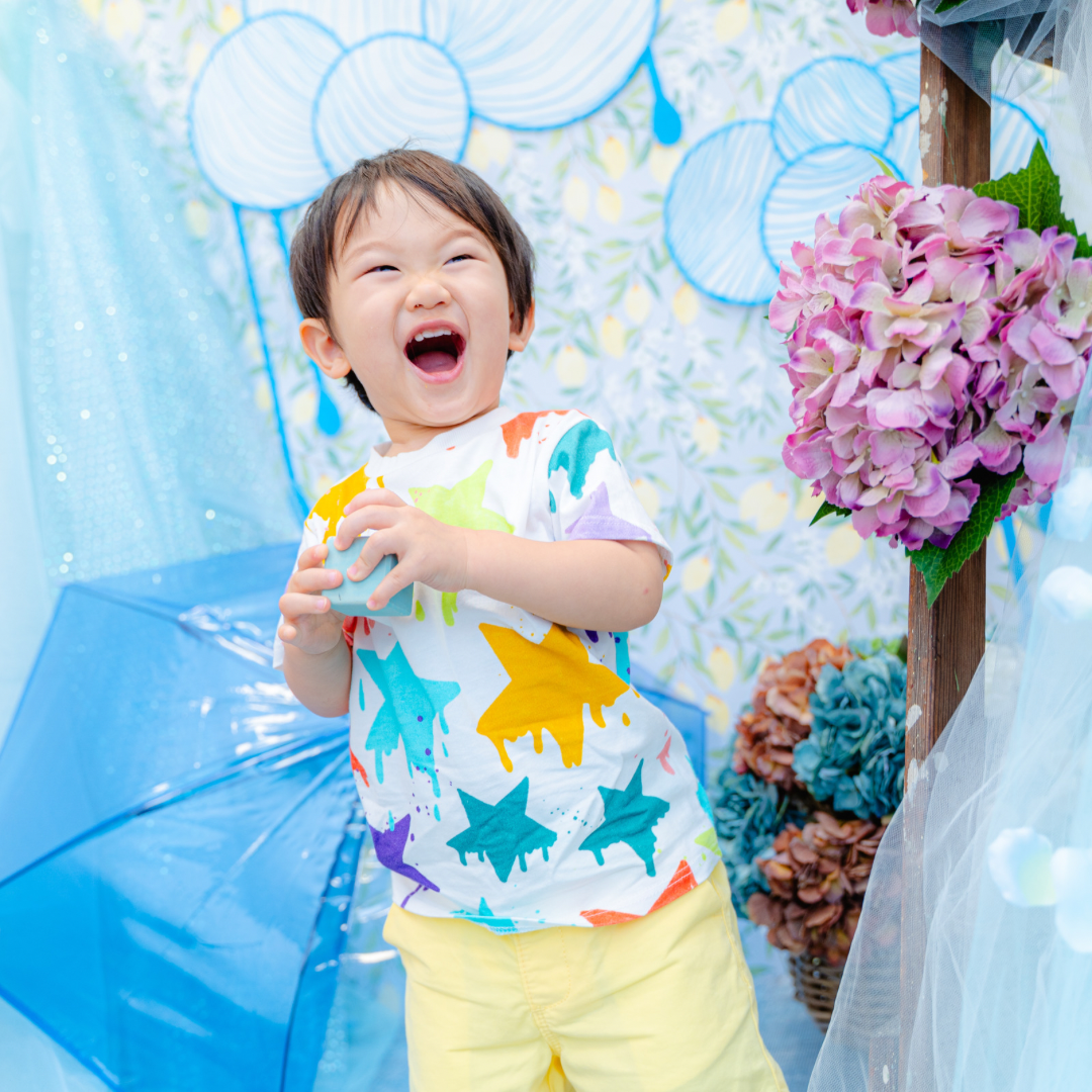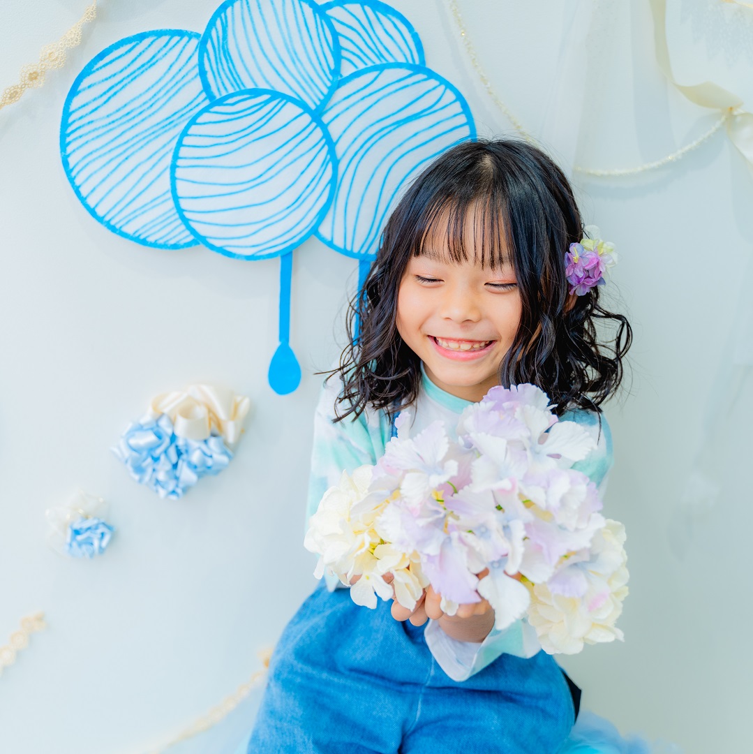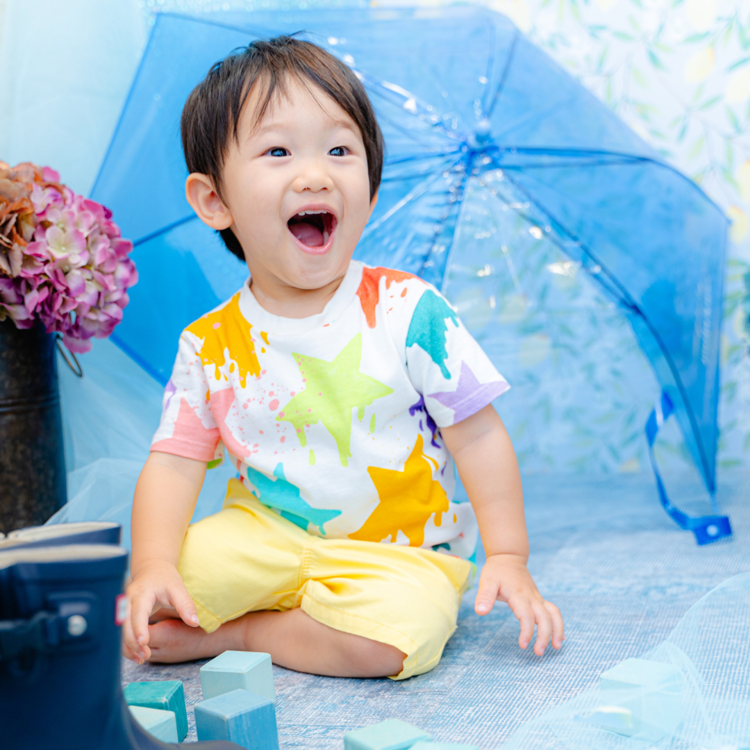 雨具などのお持ち込み衣装での撮影も可能です。お持ち込み衣装も撮影衣装数に含まれます。バースデー等、記念日撮影用衣装・小物のお持ち込みはご遠慮ください。(バースデーボード・ランドセル・着物など)