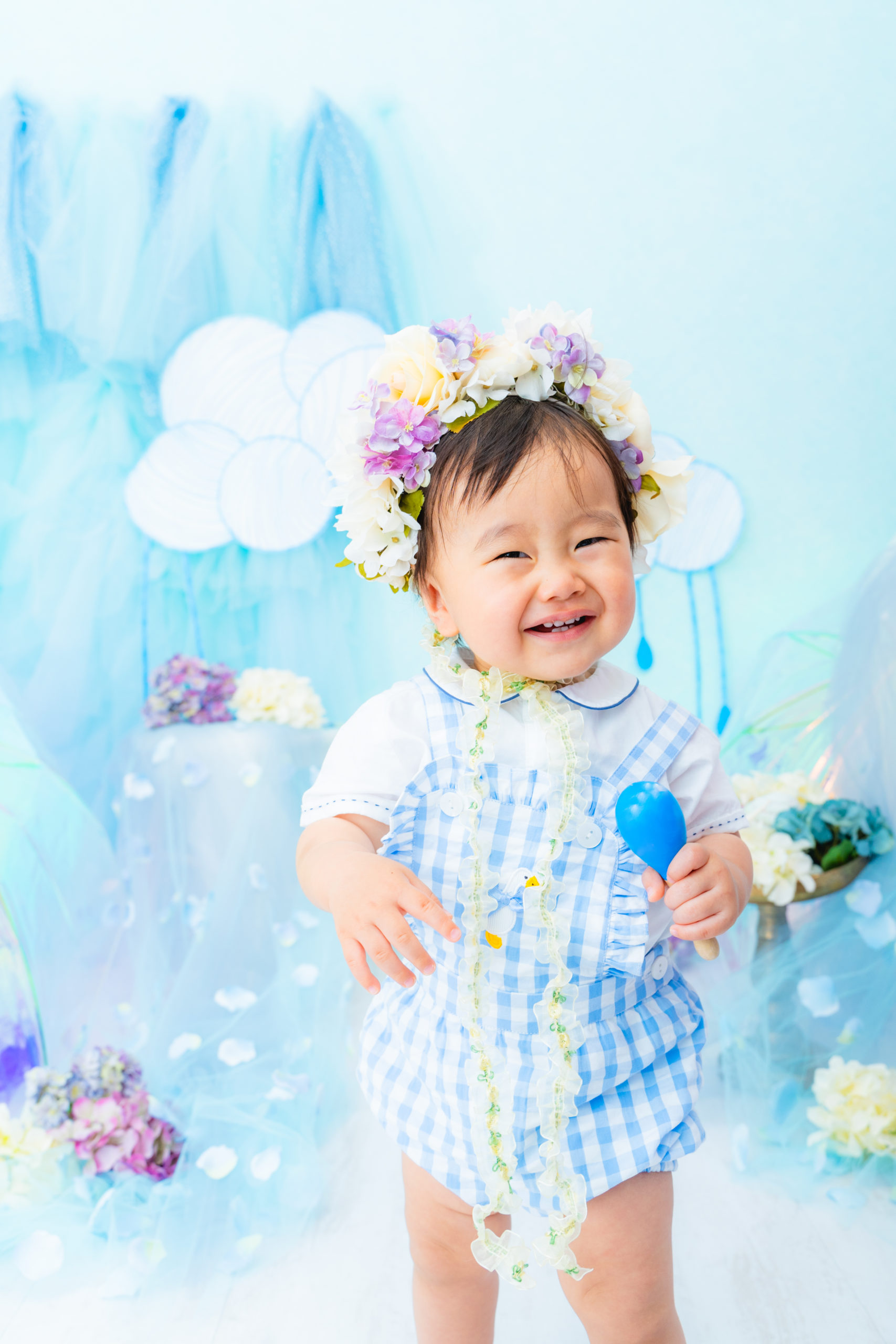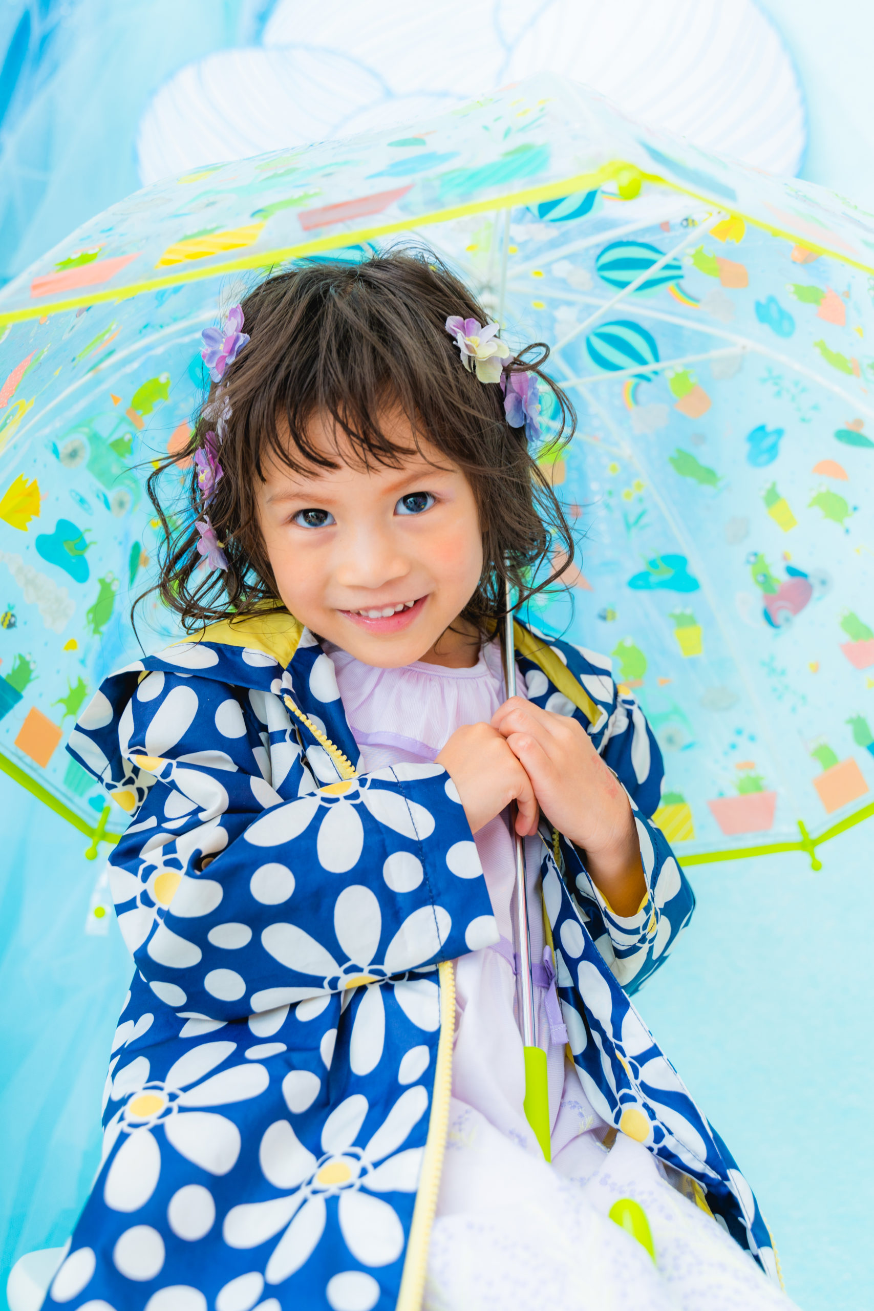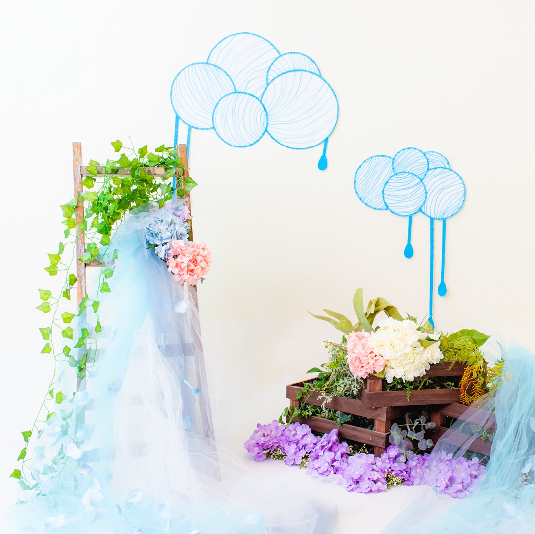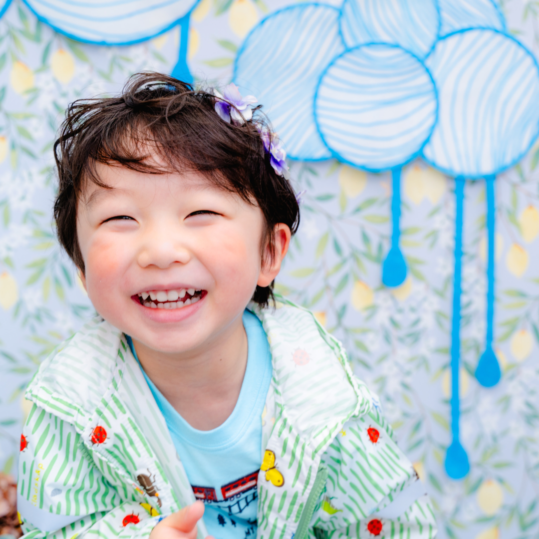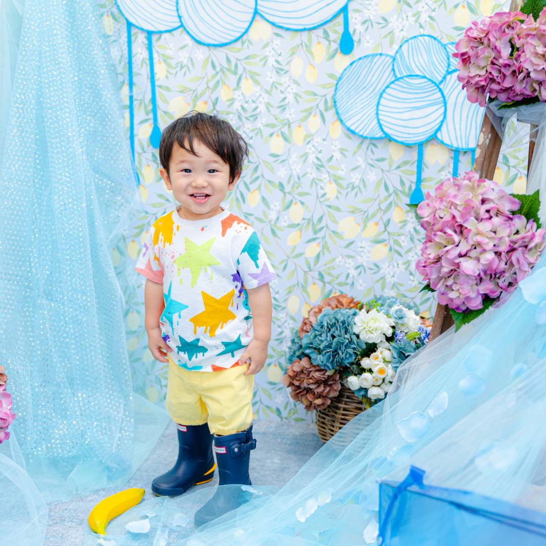 雨具などのお持ち込み衣装での撮影も可能です。お持ち込み衣装も撮影衣装数に含まれます。バースデー等、記念日撮影用衣装・小物のお持ち込みはご遠慮ください。(バースデーボード・ランドセル・着物など)